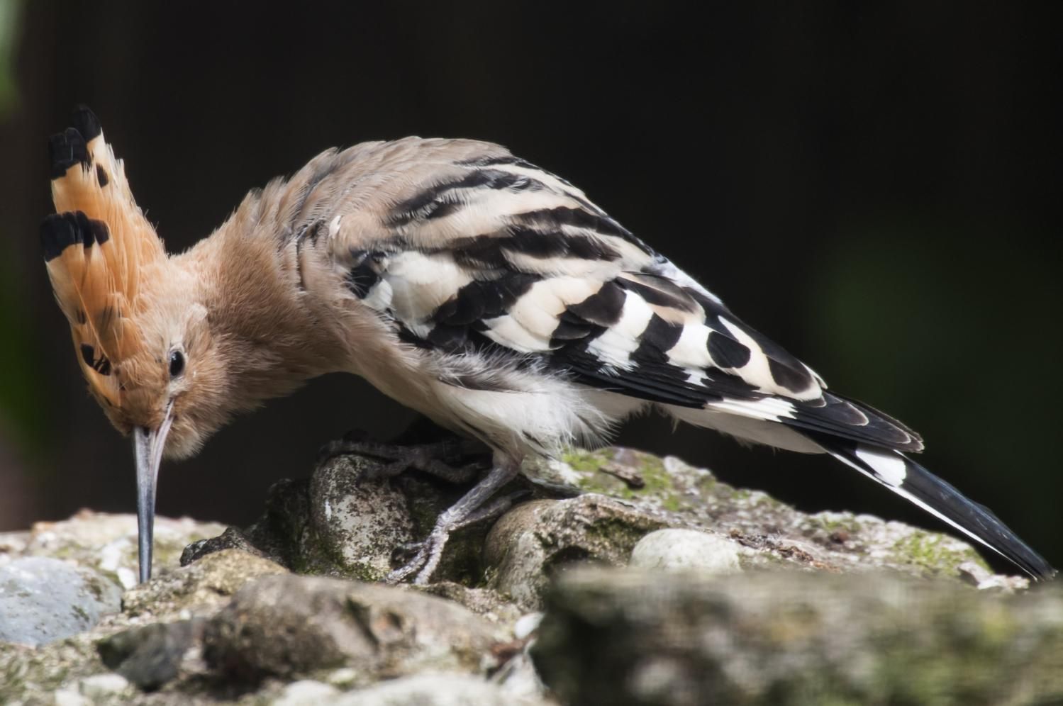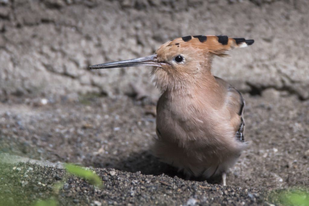 Der etwa amselgrosse Wiedehopf fällt vor allem wegen seinem langen, gekrümmten Schnabel und seiner bis 6cm langen, fuchsroten Federnhaube auf. Diese stellt er auf, wenn er aufgeregt ist oder sich bedroht fühlt. Besonders bei seinem wellenförmigen Flug kommt die Schönheit dieses Vogels mit seinem schwarzweiss gebänderten Gefieder an Rücken und Flügel voll zur Geltung. Der Wiedehopf lebt in weiten Teilen Eurasiens und Afrikas. Nördlich der Alpen gibt es nur noch ein sporadisches Vorkommen. Bevorzugt werden von ihm vorwiegend warme, offene Landschaften mit reichen Buschbeständen. Früher war der Wiedehopf auch in der Schweiz weit verbreitet. Vor allem in den Streuobstwiesen mit Hochstammbäumen war er häufig anzutreffen. Durch den Verlust dieser Lebensräume und der Intensivierung der Landwirtschaft droht der Wiedehopf allmählich auszusterben. Im Wallis, dem Genferseegebiet und im Zürcher Unterland lässt sich der Wiedehopf noch mit etwas Glück beobachten. Als Zugvogel verlässt der Wiedehopf im Winter sein Brutgebiet, um in wärmeren Regionen zu überwintern. Da er sich vorwiegend von grossen Insekten, Larven und Würmern ernährt, welche im Winter nicht zugänglich sind, findet er dort ein reichhaltiges Nahrungsangebot vor. Vielleicht kennen Sie die Redewendung: „Du stinkst wie ein Wiedehopf“, welche früher in der Schweiz noch geläufig war. Junge Vögel vertreiben mit einem stark riechenden Sekret ihre Feinde – für menschliche wie tierische Nasen unangenehm! Im Tierpark Goldau finden Sie den Wiedehopf direkt rechts beim Eingang. Zur Brutzeit im Frühling hören Sie sein lautes „up-up-up“, welches ihm auch zu dem wissenschaftlichen Namen Upupa epops verholfen hat.