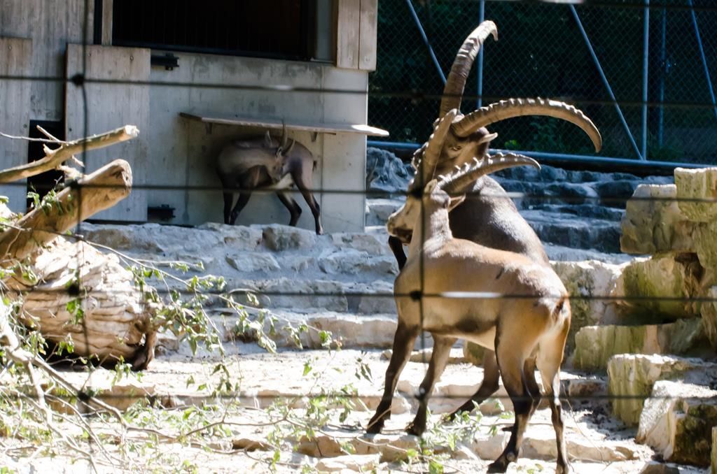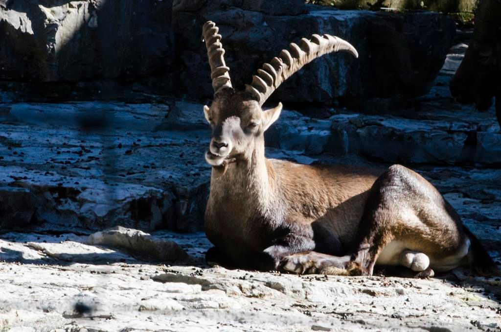 Beide Geschlechter leben im Sommer in getrennten Rudeln. Im Spätherbst gesellen sie sich zueinander und bleiben über den Winter zusammen. Steinböcke sind ausgezeichnete Kletterer mit speziell angepassten Hufen. Bei Gefahr ziehen sie sich in steilste Felsen zurück. |