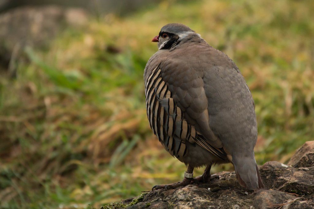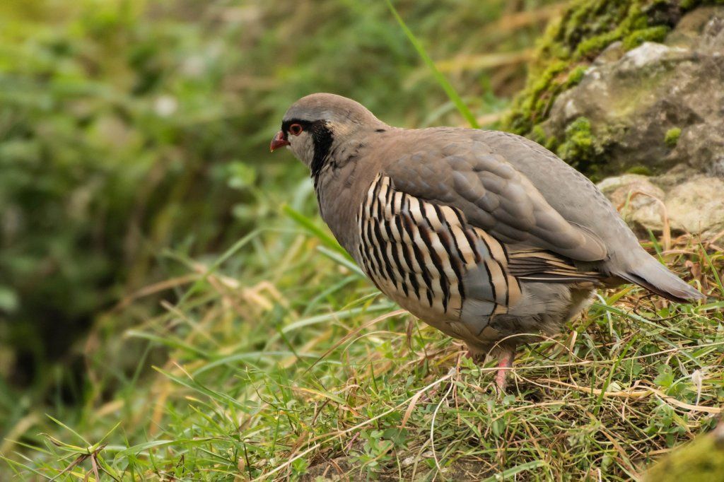 Das kleine Alpensteinhuhn (rund 500-700g Gewicht und knapp 30cm Länge) gehört zu der Ordnung der Hühnervögel und ist nahe mit den Fasanen verwandt. Sein Verbreitungsgebiet beschränkt sich eher auf das südliche Europa. In der Schweiz selber kommt es nur in den Alpen vor, wo es Höhenlagen von 700-2’700m besiedelt. Dabei bevorzugt das Alpensteinhuhn steile Südlagen mit Zwergsträuchern, alpine Weiden und Blockfelder. Gerne hält es sich in unübersichtlichen Steilhängen auf, wo es durch das felsenfarbige Gefieder hervorragend getarnt ist. In der Roten Liste ist das Alpensteinhuhn unter den potenziell gefährdeten Arten aufgeführt. Zur Brutzeit April-Juni trifft man die Tiere paarweise an. Zu dieser Zeit sind Alpensteinhühner auch besonders ruffreudig. Die Territorien von ca. 10ha Grösse werden von den Hähnen durch einen eigentümlichen „Gesang“ markiert. Das Weibchen brütet die 10-15 Eier alleine aus. Im Herbst schliessen sich manchmal mehrere Familien zu so genannten Wintergruppen zusammen, die sich aber im nächsten Frühling wieder auflösen. Vermutlich dient dieses Verhalten dem Schutz vor Feinden. Eine besondere Verhaltenseigenart des Alpensteinhuhns ist es, über weite Strecken laufend fliehen zu können, um sich dann in einer unzugänglichen Spalte zu verkriechen. Das Alpensteinhuhn ernährt sich ganzjährig von Krautpflanzen wie z.B. Wacholder, Preiselbeere, Heidekraut und Bärentraube. Im Winter, wenn sich die Schneedecke schliesst, weicht es in tiefere Lagen aus und taucht auch in Siedlungsgebieten von Bergdörfern auf. Die kalten Winternächte verbringt es in selbst gegrabenen Schneehöhlen wie das Schneehuhn.