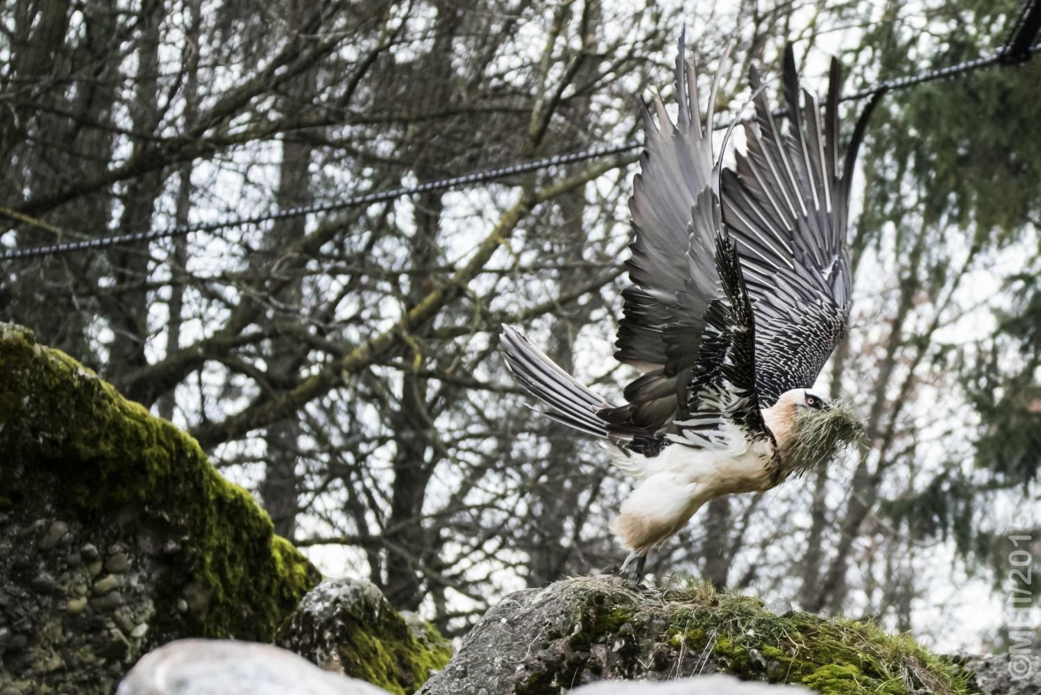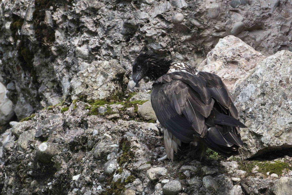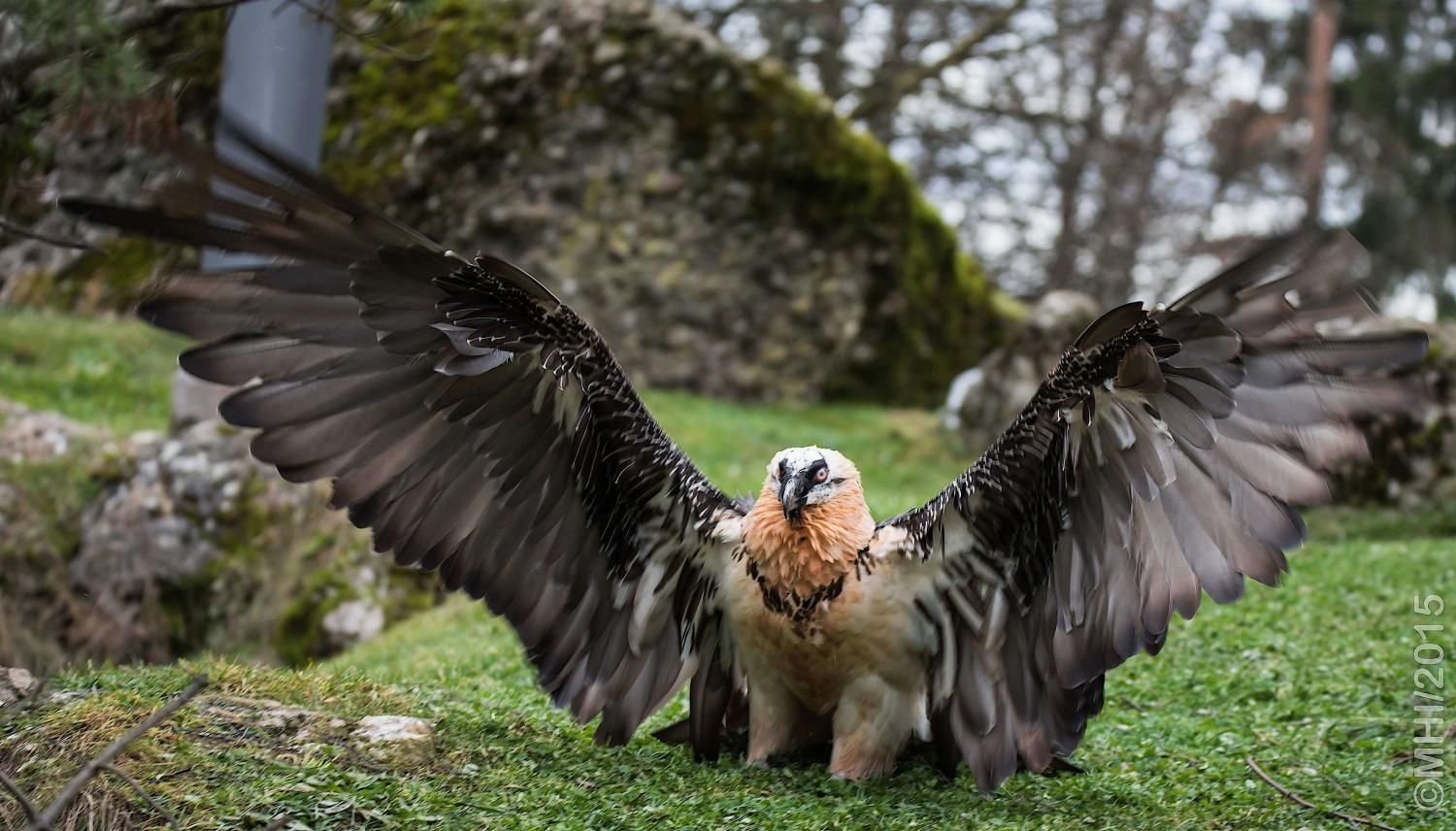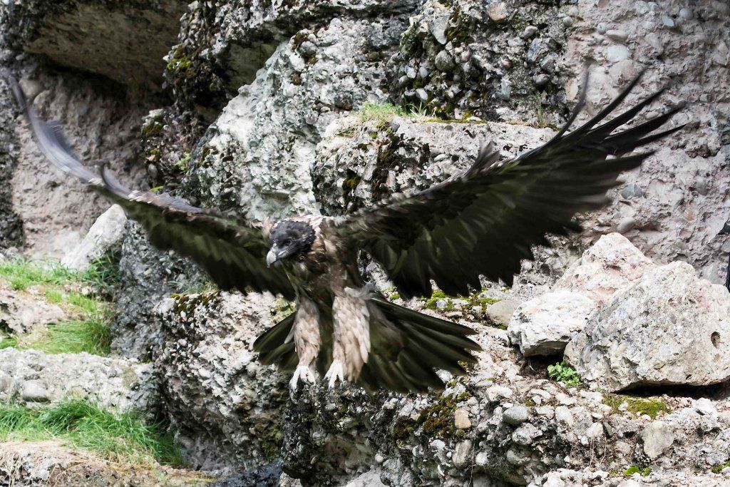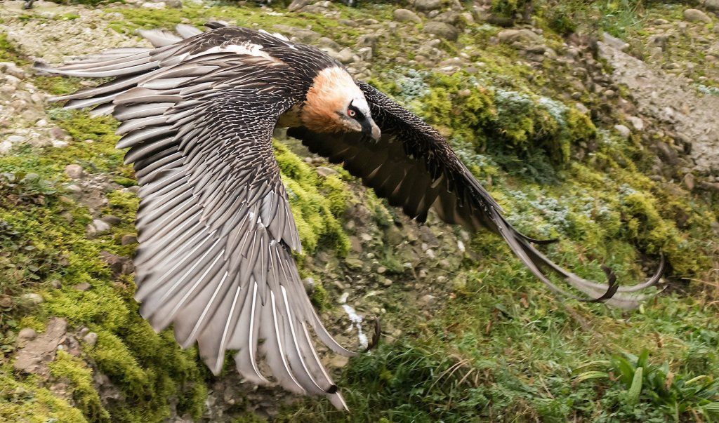 Mit einer beeindruckenden Spannweite bis zu drei Metern übertrifft der Bartgeier in der Grösse sogar den Steinadler. Der grösste einheimische Vogel ist aber ganz harmlos. Wie alle Geier ernährt er sich ausschliesslich von Aas. Zudem ist er auf Knochen spezialisiert, die etwa 80% seiner Nahrung ausmachen. Jungvögel benötigen allerdings zu Beginn ihres Lebens Fleisch, sie können erst später Knochen verdauen. In Anpassung an diesen Umstand brüten Bartgeier im Winter. Die Jungvögel schlüpfen ab Ende Februar – eine Zeit, in welcher in den Alpen viele Wildtiere an Hunger oder in Lawinen verenden und daher auch für einen Aasfresser, der nicht jagt, genügend Nahrung für den Nachwuchs zu finden ist. Ursprünglich in Europa weit verbreitet wurde der Bartgeier anfangs des 20. Jahrhunderts in den Alpen ausgerottet. Er galt fälschlicherweise als gefährlich, so dass er intensiv bejagt und mit ausgelegten Ködern vergiftet wurde. Im Volksglauben wurde diesem majestätischen Vogel unter anderem sogar Kindsraub angedichtet. Namen wie „Kindstöter“ oder „Lämmergeier“ zeugten davon. Ein Nahrungsmangel (es gab zu jener Zeit deutlich weniger Wild als heute) machte ihm ebenfalls zu schaffen. In den 80er Jahren wurde ein Wiederansiedlungsprojekt gestartet. Der Natur- und Tierpark Goldau ist an diesem sehr anspruchsvollen und auch finanziell aufwändigen Projekt federführend beteiligt. Seither sind schon über 180 junge, in Zoos geschlüpfte Bartgeier ausgesetzt worden, davon 12 vom Natur- und Tierpark Goldau (Stand Juni 2012). Zu den Wiederansiedlungsgebieten im Alpenraum gehören Österreich, die Schweiz, Italien und Frankreich. Seit 1997 können Freilandbruten beobachtet werden, seit 2007 auch in der Schweiz. Das Projekt Wiederansiedlung Bartgeier gilt denn auch als eines der erfolgreichsten Auswilderungsprojekte weltweit. Aktuelle Angaben und Informationen finden Sie jeweils unter www.bartgeier.ch.