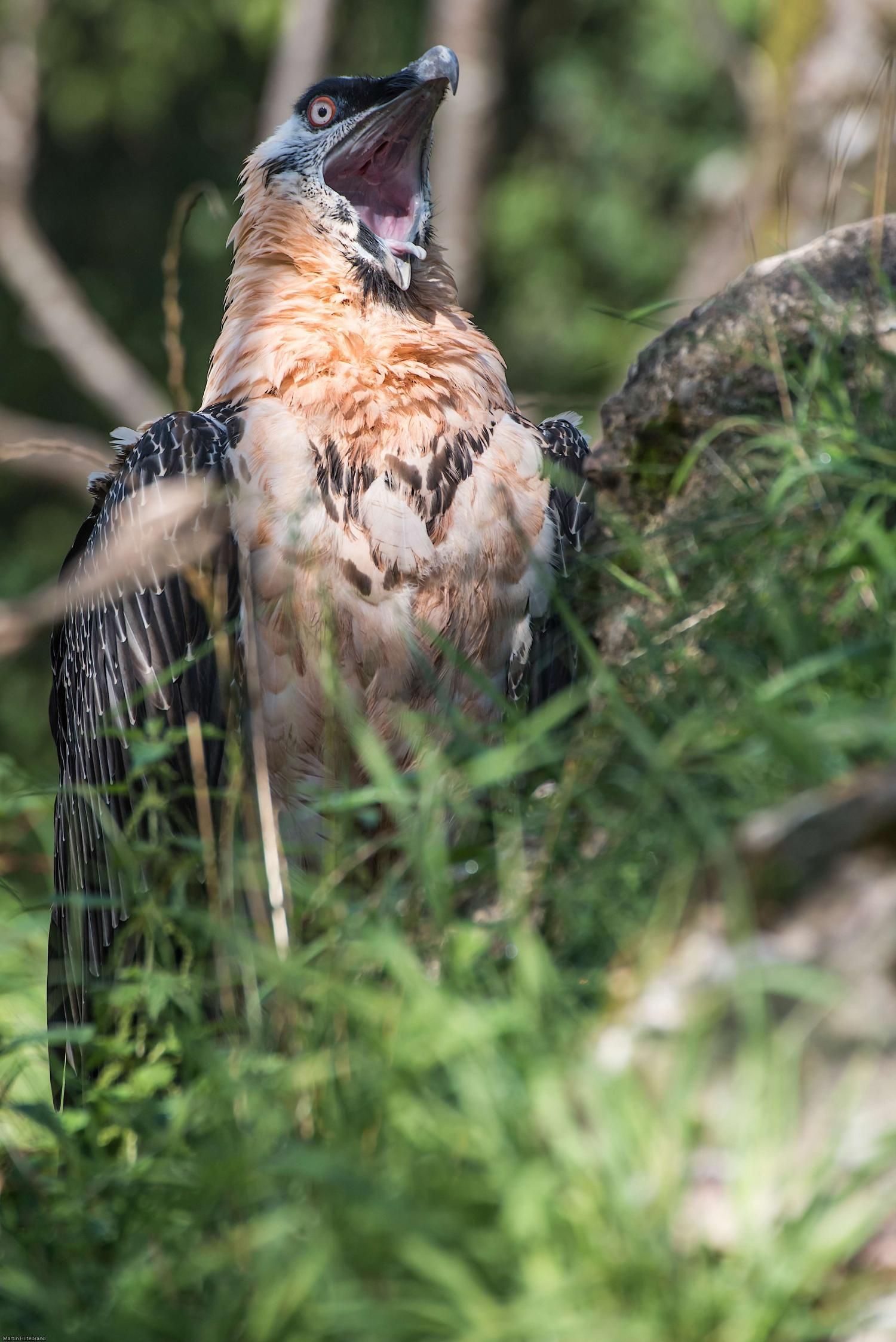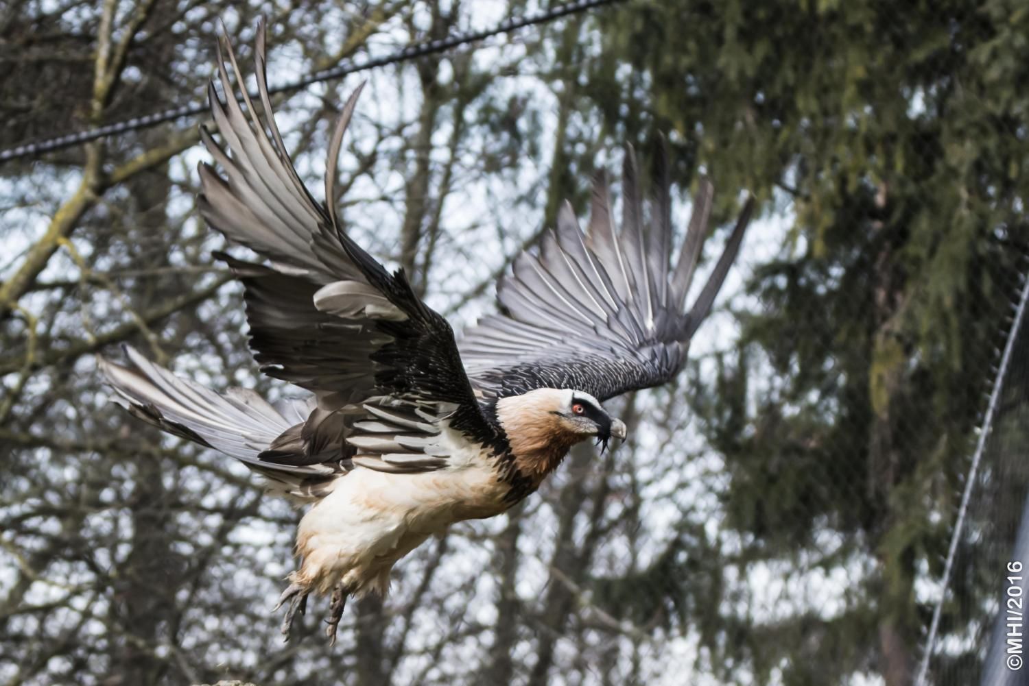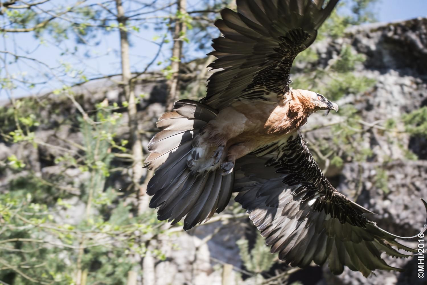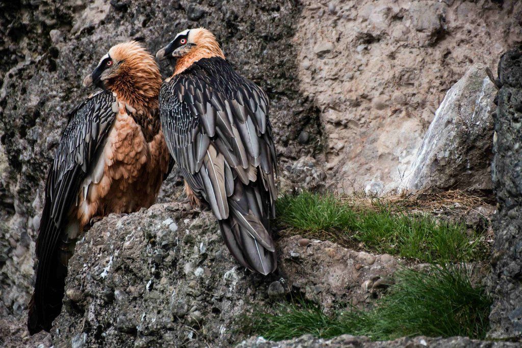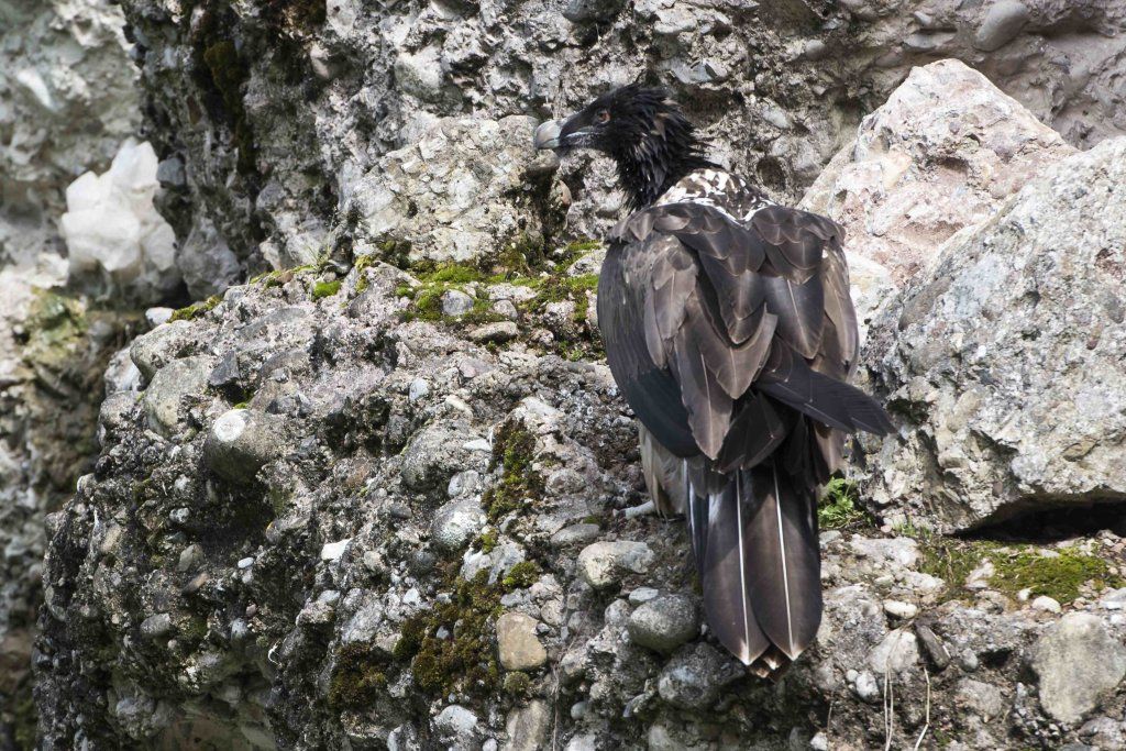 Mit einer beeindruckenden Spannweite bis zu drei Metern übertrifft der Bartgeier in der Grösse sogar den Steinadler. Der grösste einheimische Vogel ist aber ganz harmlos. Wie alle Geier ernährt er sich ausschliesslich von Aas. Zudem ist er auf Knochen spezialisiert, die etwa 80% seiner Nahrung ausmachen. Jungvögel benötigen allerdings zu Beginn ihres Lebens Fleisch, sie können erst später Knochen verdauen. In Anpassung an diesen Umstand brüten Bartgeier im Winter. Die Jungvögel schlüpfen ab Ende Februar – eine Zeit, in welcher in den Alpen viele Wildtiere an Hunger oder in Lawinen verenden und daher auch für einen Aasfresser, der nicht jagt, genügend Nahrung für den Nachwuchs zu finden ist. Ursprünglich in Europa weit verbreitet wurde der Bartgeier anfangs des 20. Jahrhunderts in den Alpen ausgerottet. Er galt fälschlicherweise als gefährlich, so dass er intensiv bejagt und mit ausgelegten Ködern vergiftet wurde. Im Volksglauben wurde diesem majestätischen Vogel unter anderem sogar Kindsraub angedichtet. Namen wie „Kindstöter“ oder „Lämmergeier“ zeugten davon. Ein Nahrungsmangel (es gab zu jener Zeit deutlich weniger Wild als heute) machte ihm ebenfalls zu schaffen. In den 80er Jahren wurde ein Wiederansiedlungsprojekt gestartet. Der Natur- und Tierpark Goldau ist an diesem sehr anspruchsvollen und auch finanziell aufwändigen Projekt federführend beteiligt. Seither sind schon über 180 junge, in Zoos geschlüpfte Bartgeier ausgesetzt worden, davon 12 vom Natur- und Tierpark Goldau (Stand Juni 2012). Zu den Wiederansiedlungsgebieten im Alpenraum gehören Österreich, die Schweiz, Italien und Frankreich. Seit 1997 können Freilandbruten beobachtet werden, seit 2007 auch in der Schweiz. Das Projekt Wiederansiedlung Bartgeier gilt denn auch als eines der erfolgreichsten Auswilderungsprojekte weltweit. Aktuelle Angaben und Informationen finden Sie jeweils unter www.bartgeier.ch.