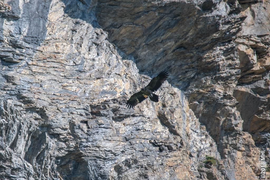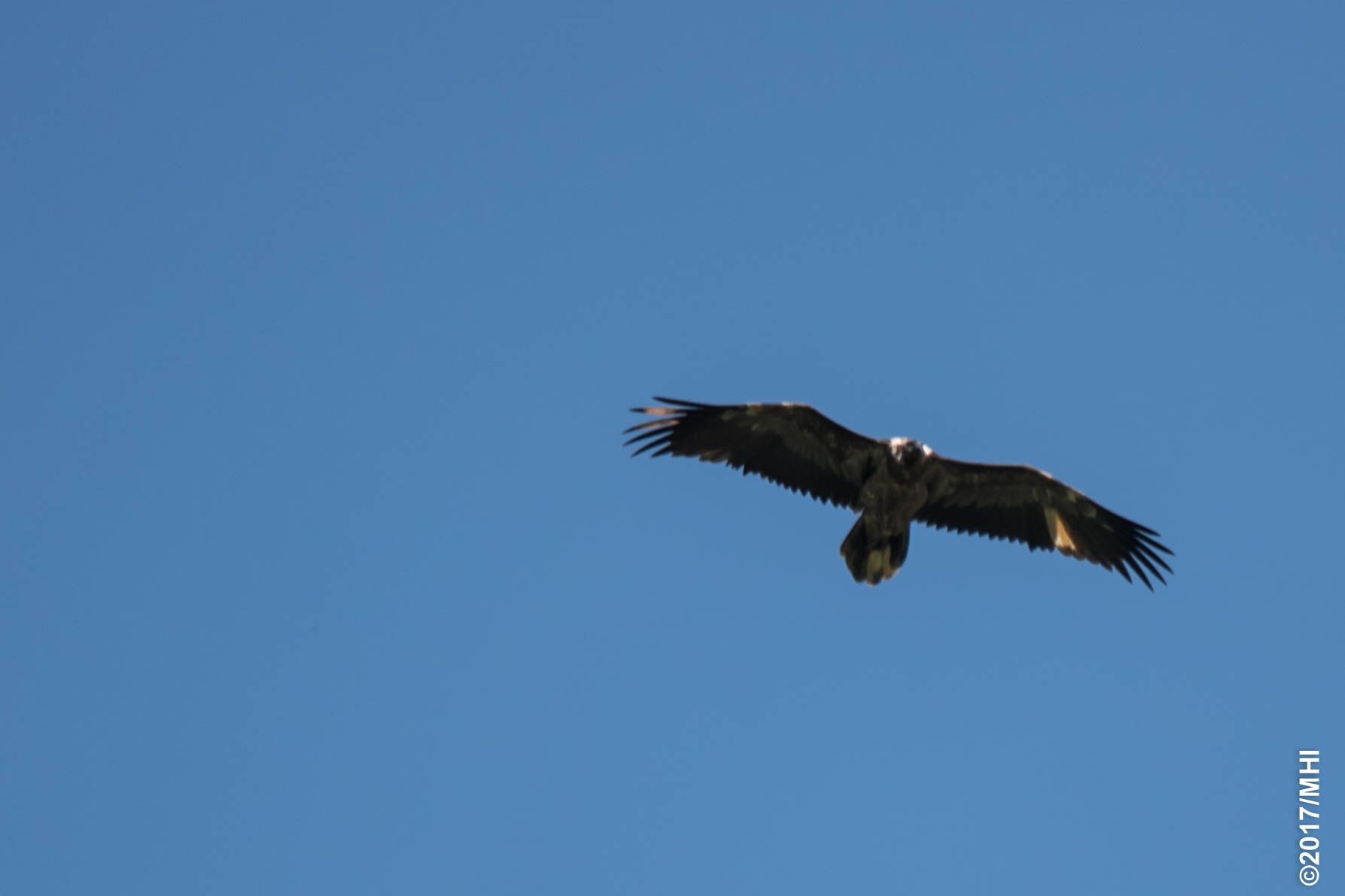 Mit einer beeindruckenden Spannweite bis zu drei Metern übertrifft der Bartgeier in der Grösse sogar den Steinadler. Der grösste einheimische Vogel ist aber ganz harmlos. Wie alle Geier ernährt er sich ausschliesslich von Aas. Zudem ist er auf Knochen spezialisiert, die etwa 80% seiner Nahrung ausmachen. Jungvögel benötigen allerdings zu Beginn ihres Lebens Fleisch, sie können erst später Knochen verdauen. In Anpassung an diesen Umstand brüten Bartgeier im Winter. Die Jungvögel schlüpfen ab Ende Februar – eine Zeit, in welcher in den Alpen viele Wildtiere an Hunger oder in Lawinen verenden und daher auch für einen Aasfresser, der nicht jagt, genügend Nahrung für den Nachwuchs zu finden ist. Ursprünglich in Europa weit verbreitet wurde der Bartgeier anfangs des 20. Jahrhunderts in den Alpen ausgerottet. Er galt fälschlicherweise als gefährlich, so dass er intensiv bejagt und mit ausgelegten Ködern vergiftet wurde. Im Volksglauben wurde diesem majestätischen Vogel unter anderem sogar Kindsraub angedichtet. Namen wie „Kindstöter“ oder „Lämmergeier“ zeugten davon. Ein Nahrungsmangel (es gab zu jener Zeit deutlich weniger Wild als heute) machte ihm ebenfalls zu schaffen. In den 80er Jahren wurde ein Wiederansiedlungsprojekt gestartet. Der Natur- und Tierpark Goldau ist an diesem sehr anspruchsvollen und auch finanziell aufwändigen Projekt federführend beteiligt. Seither sind schon über 180 junge, in Zoos geschlüpfte Bartgeier ausgesetzt worden, davon 12 vom Natur- und Tierpark Goldau (Stand Juni 2012). Zu den Wiederansiedlungsgebieten im Alpenraum gehören Österreich, die Schweiz, Italien und Frankreich. Seit 1997 können Freilandbruten beobachtet werden, seit 2007 auch in der Schweiz. Das Projekt Wiederansiedlung Bartgeier gilt denn auch als eines der erfolgreichsten Auswilderungsprojekte weltweit. Aktuelle Angaben und Informationen finden Sie jeweils unter www.bartgeier.ch. Im Tierpark finden Sie die Bartgeier gegenüber dem Wildschweingehege, wo die Vögel zusammen mit den Schneehasen eine Voliere bewohnen. Da sie aber nur Aas und Knochen fressen, stellen sie für die Schneehasen keine Gefahr dar.