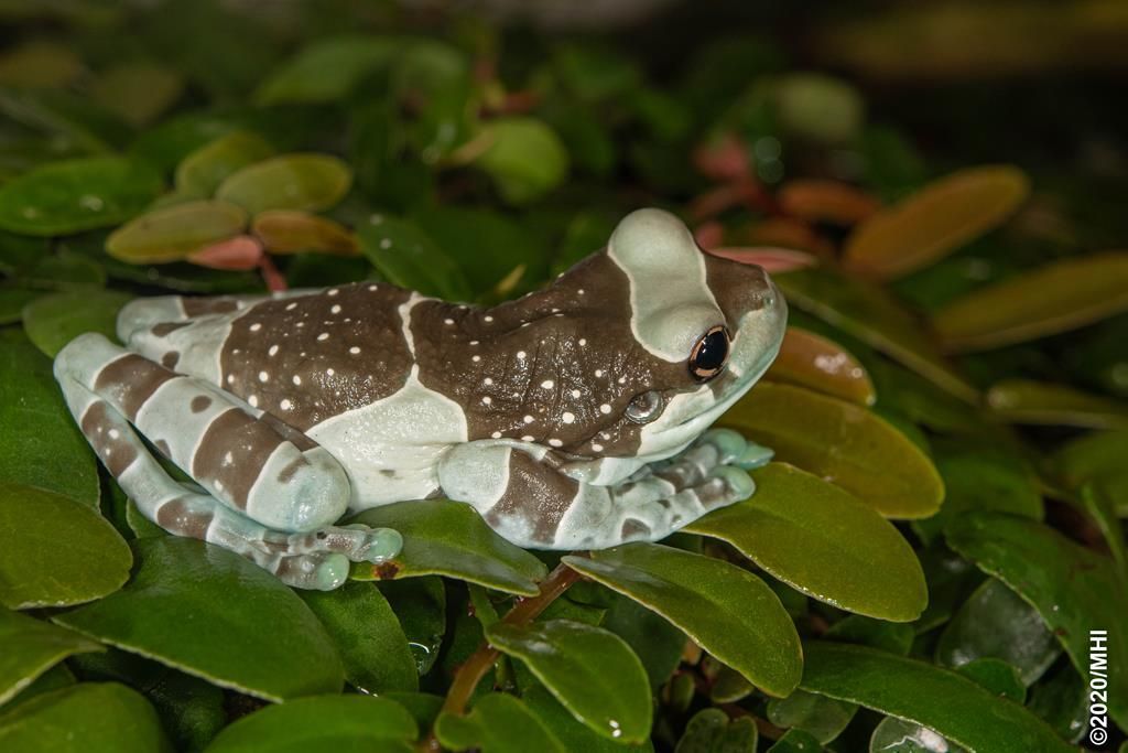 Ein typischer Ruf eines Baumhöhlen-Krötenlaubfrosches besteht aus drei Tönen, welche über weite Strecken gehört werden können