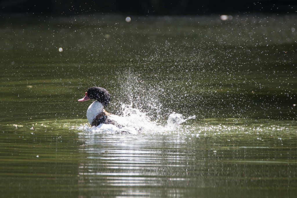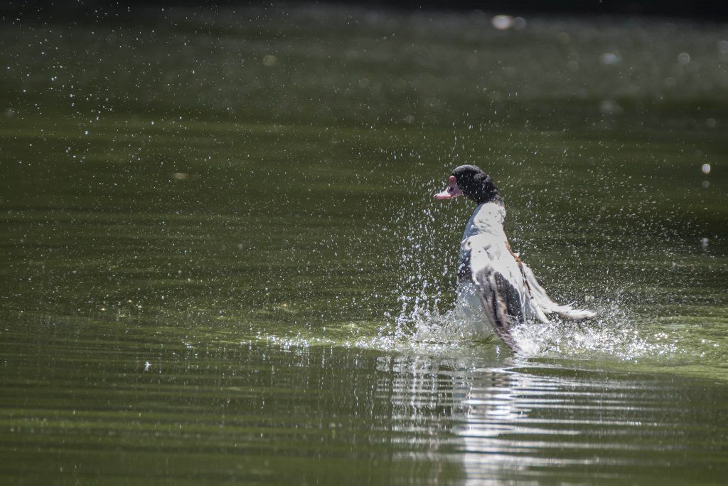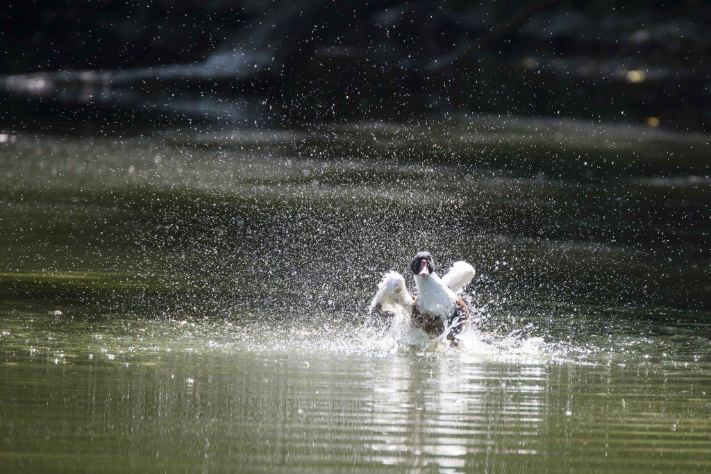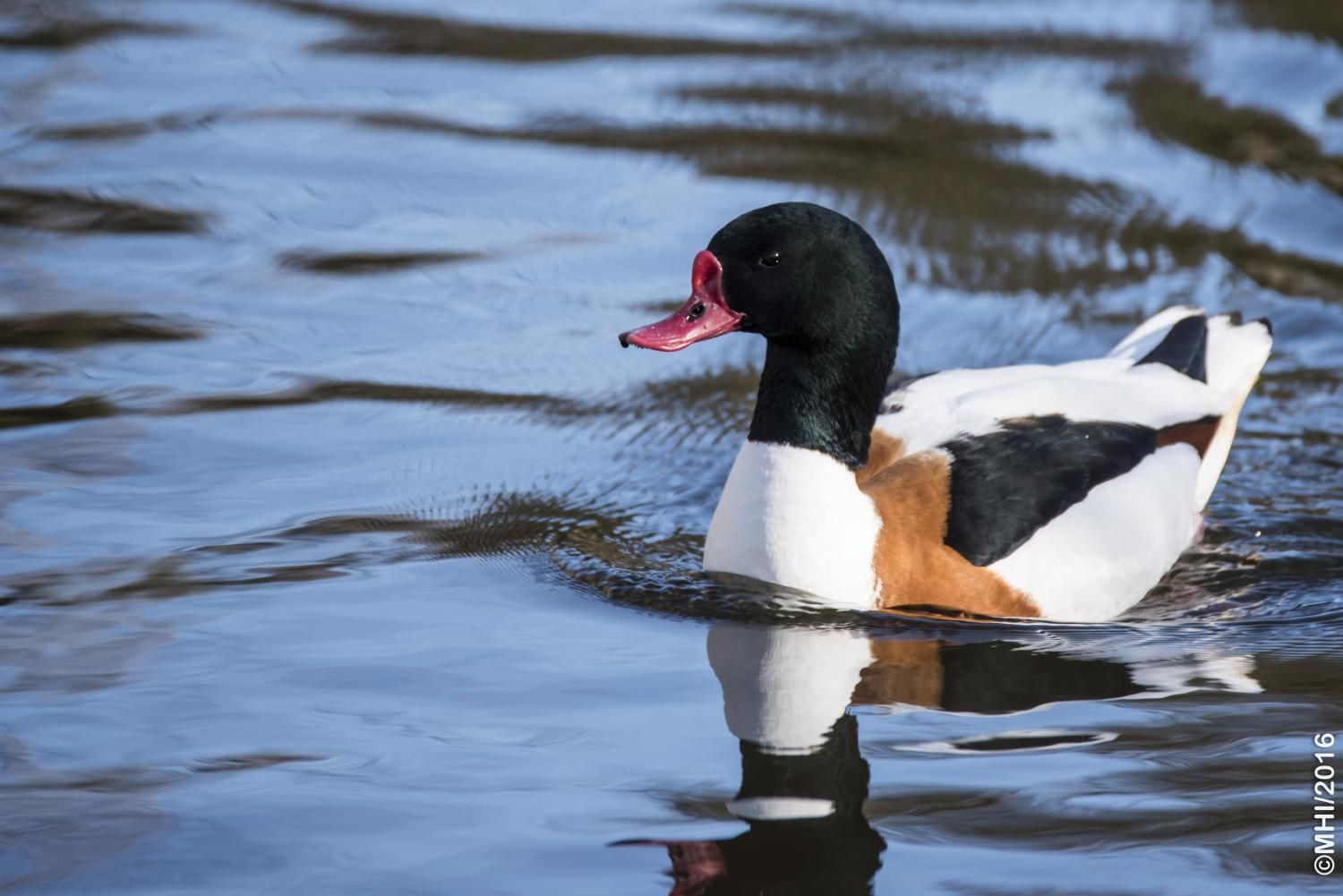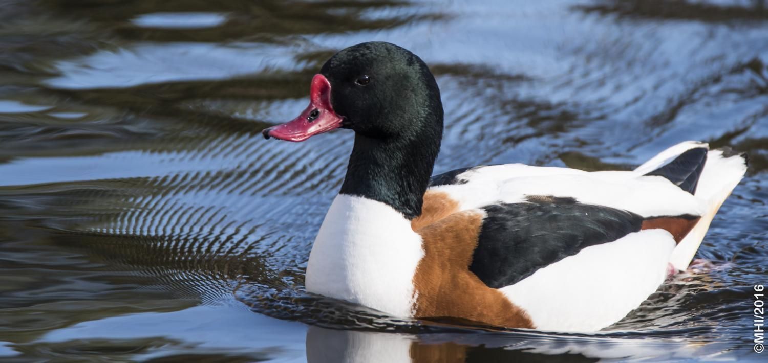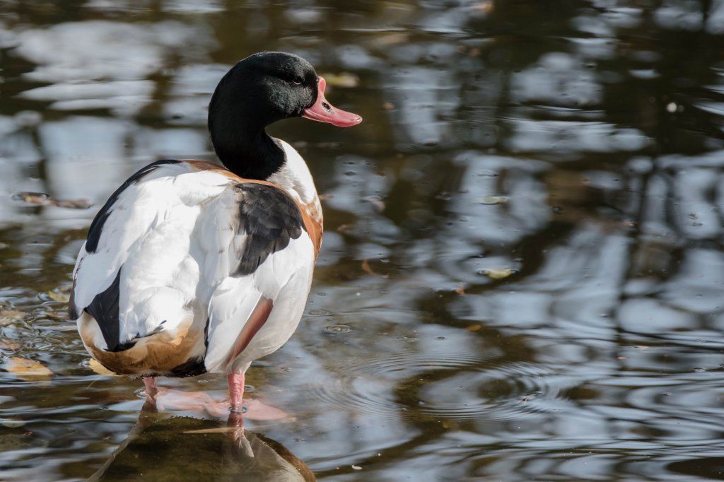 Die schön gefärbte Brandgans gehört zu den so genannten Halbgänsen. In der englischen Bezeichnung „Shelduck“ ist das Wort „Ente“ enthalten, ein Zeichen dafür, dass Halbgänse zwischen Enten und Gänse einzuordnen sind. Merkmale von Halbgänsen sind nebst der mittleren Grösse und einer Ernährungsweise, die zu gleichen Teilen an Land und im Wasser stattfindet, die ähnliche Färbung beider Geschlechter. So kann man das Männchen (Ganter) der Brandgans nur anhand des kleinen Stirnhöckers auf dem Schnabel vom Weibchen unterscheiden. Brandgänse sind Zugvögel, die jedes Jahr zwischen ihren Brutgebieten im Norden und den Winterplätzen im Süden hin und her pendeln. Den Winter verbringen sie im warmen Mittel- und Südeuropa, Nordafrika und teils auch in Asien. Wenn die Brandgänse Ende Februar in ihre Brutgebiete in den Küstengebieten der Nord- und Ostsee zurückkehren, haben sie sich meist schon gepaart und machen sich gemeinsam auf die Suche nach einer geeigneten Brutstätte. Diese finden sie vor allem in Erdhöhlen, z. B. alten Kaninchen- oder Fuchsbauten, aber auch in Baumhöhlen. Manchmal werden auch Baumhöhlen in bis zu 10m Höhe bezogen. Wie bei den echten Gänsen hilft das Männchen bei der Jungenaufzucht. Während der Brutzeit wacht das Männchen in der Nähe. Danach führen die Elterntiere die Jungen zu einem Aufzuchtplatz, wo sich die Jungtiere vieler Brandgänse zu einem „Kindergarten“ zusammenschliessen. Bis zu 100 flugunfähige Junggänse werden dort von einer Handvoll Altvögel betreut, die selbst nicht brüten. Zum bevorzugten Speiseplan der Brandgänse gehören vor allem Kleintiere des Flachwasserbereiches, aber auch Schnecken, Insekten, Körner und Landpflanzen. Nach der Nahrung wird nicht getaucht, sondern lediglich das gefressen, was gerade noch mit dem Kopf unter Wasser erreicht werden kann. Bei uns im Tierpark Goldau finden sie die Brandgänse rund um den Blauweiher, sowohl an Land wie auch auf dem Wasser.