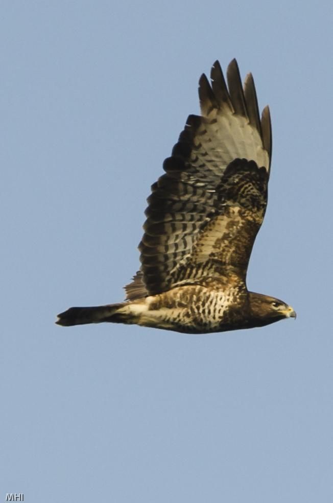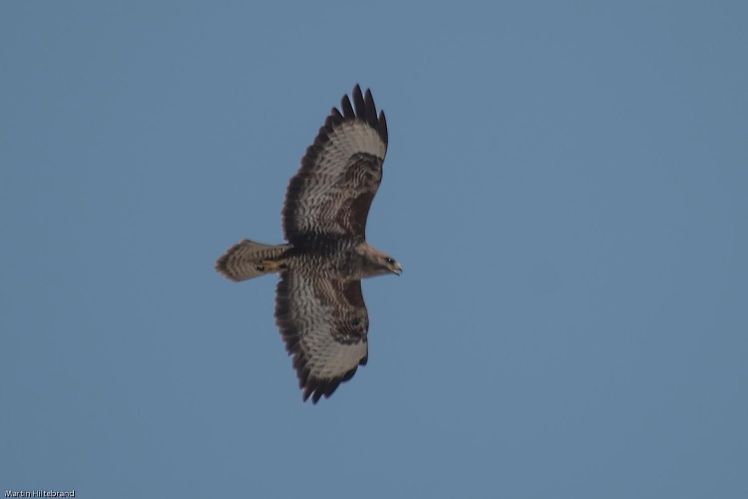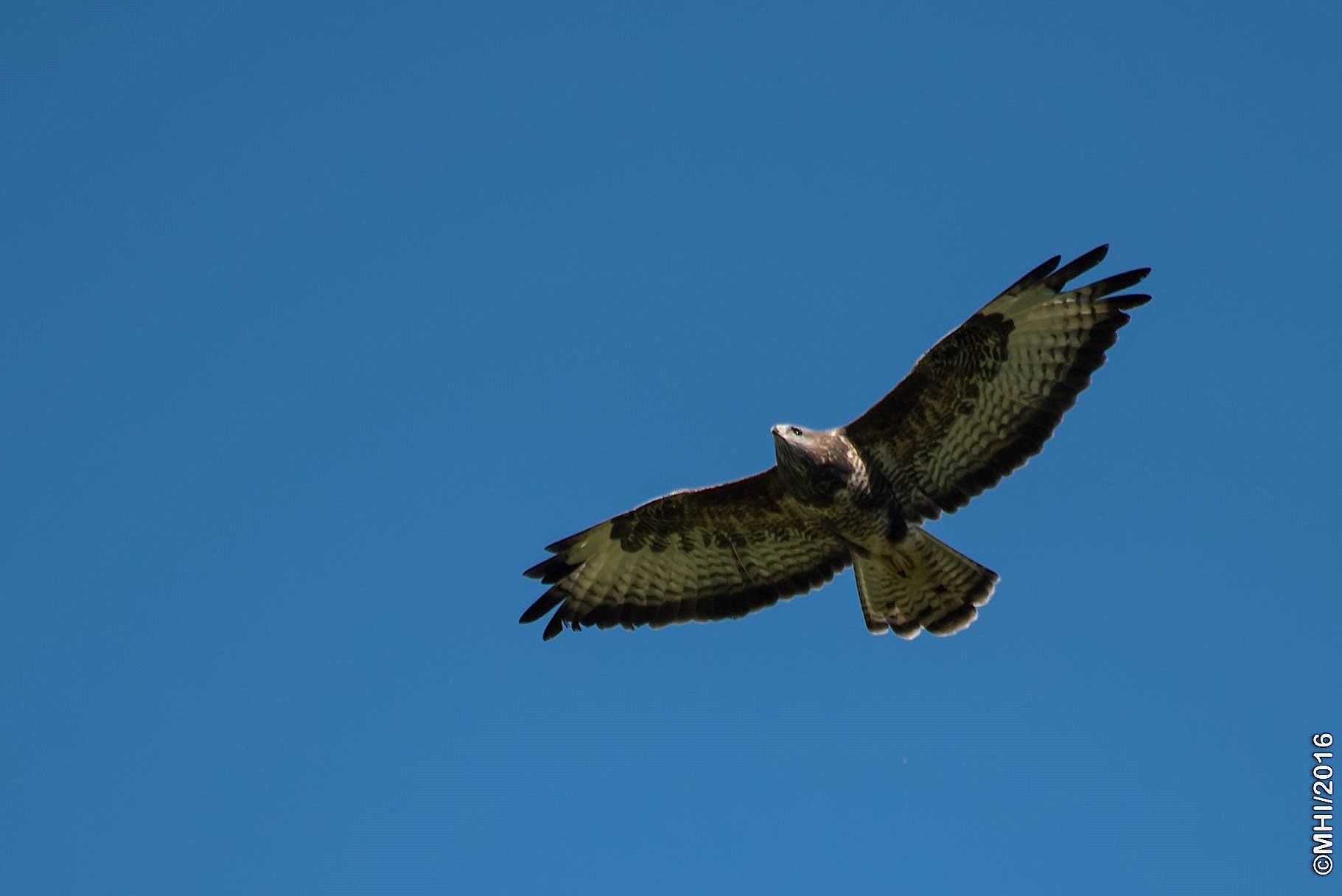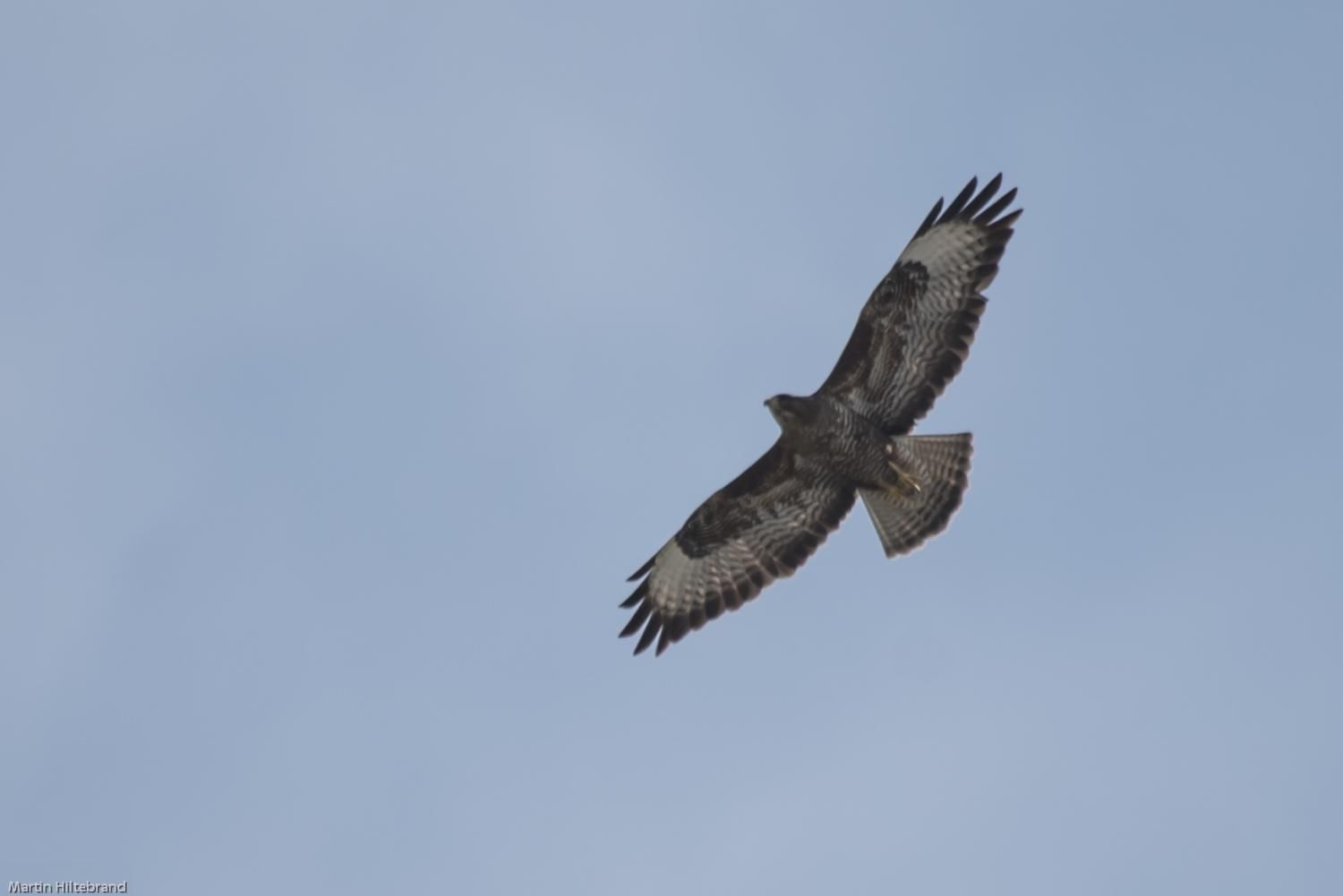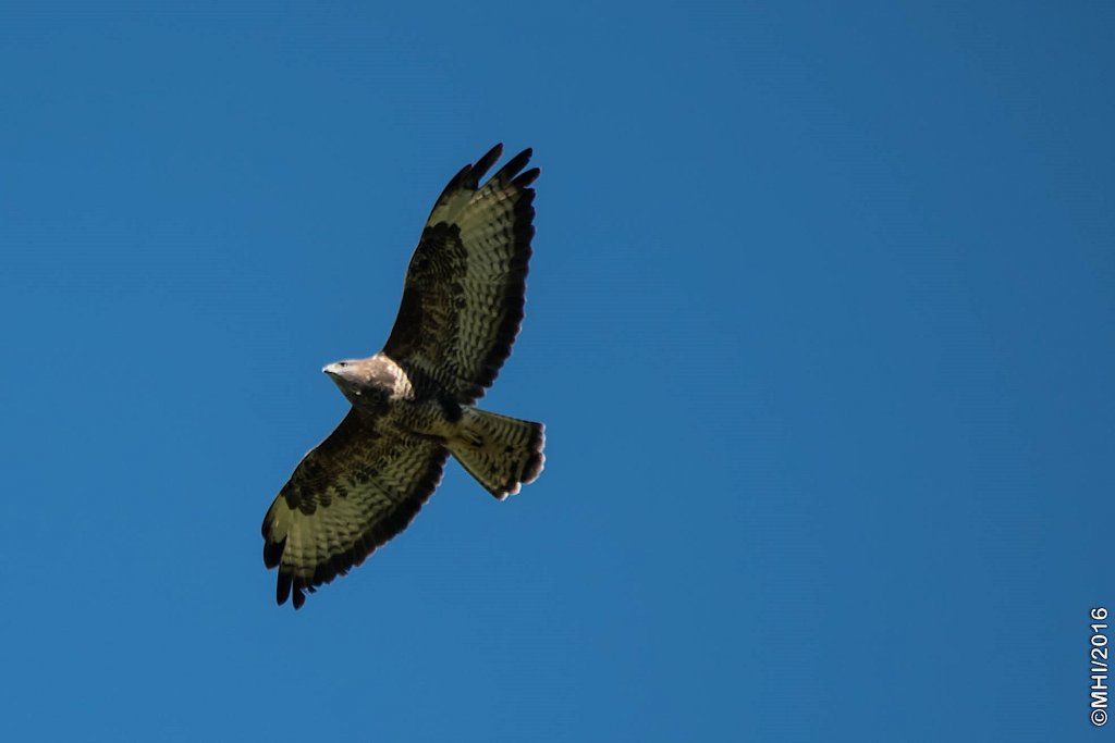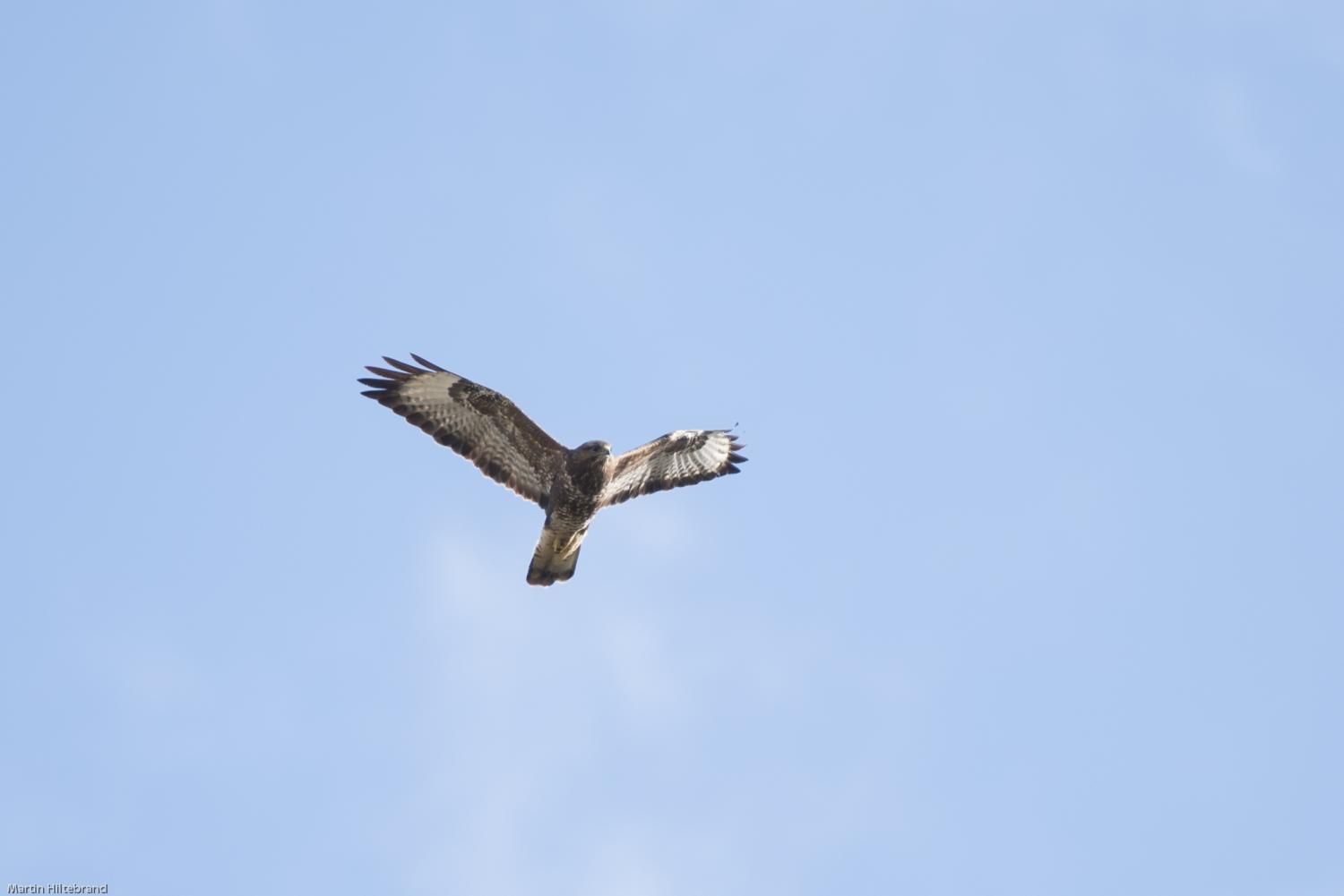 Der Mäusebussard ist ein Greifvogel aus der Familie der Habichtartigen und der häufigste Vertreter dieser Familie in Mitteleuropa. Er ist mittelgroß und kompakt, das Gefieder variiert von Dunkelbraun bis fast Weiß. Er kann oft bei seinen kreisenden Segelflügen oder bei der Ansitzjagd beobachtet werden. Sein Lebensraum sind offene Landschaften wie Wiesen, Äcker und Heide mit angrenzenden Waldgebieten, in denen er sein Nest baut. Sein Verbreitungs-gebiet umfasst ganz Europa mit Ausnahme Islands und des Nordens von Skandinavien. Nach Osten reicht das Areal bis Zentralasien. Kleinsäuger machen den Hauptteil seiner Nahrung aus, es gehören aber auch andere kleine Wirbeltiere, Insekten und Regenwürmer zum Nahrungsspektrum. Mäusebussarde sind überwiegend Teilzieher. Die Überwinterungsgebiete liegen in Mitteleuropa, Nordafrika, dem Nahen Osten und Indien. Der Mäusebussard ist nicht gefährdet, und seine Bestände nehmen, nach starker Verfolgung bis ins 20. Jahrhundert hinein, wieder zu.