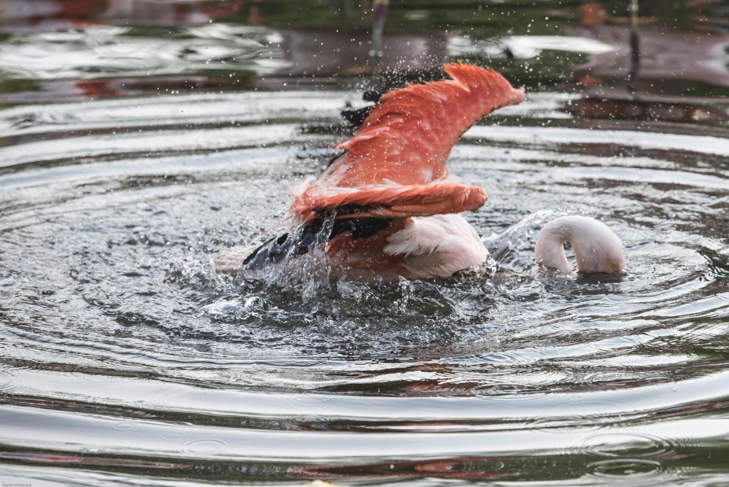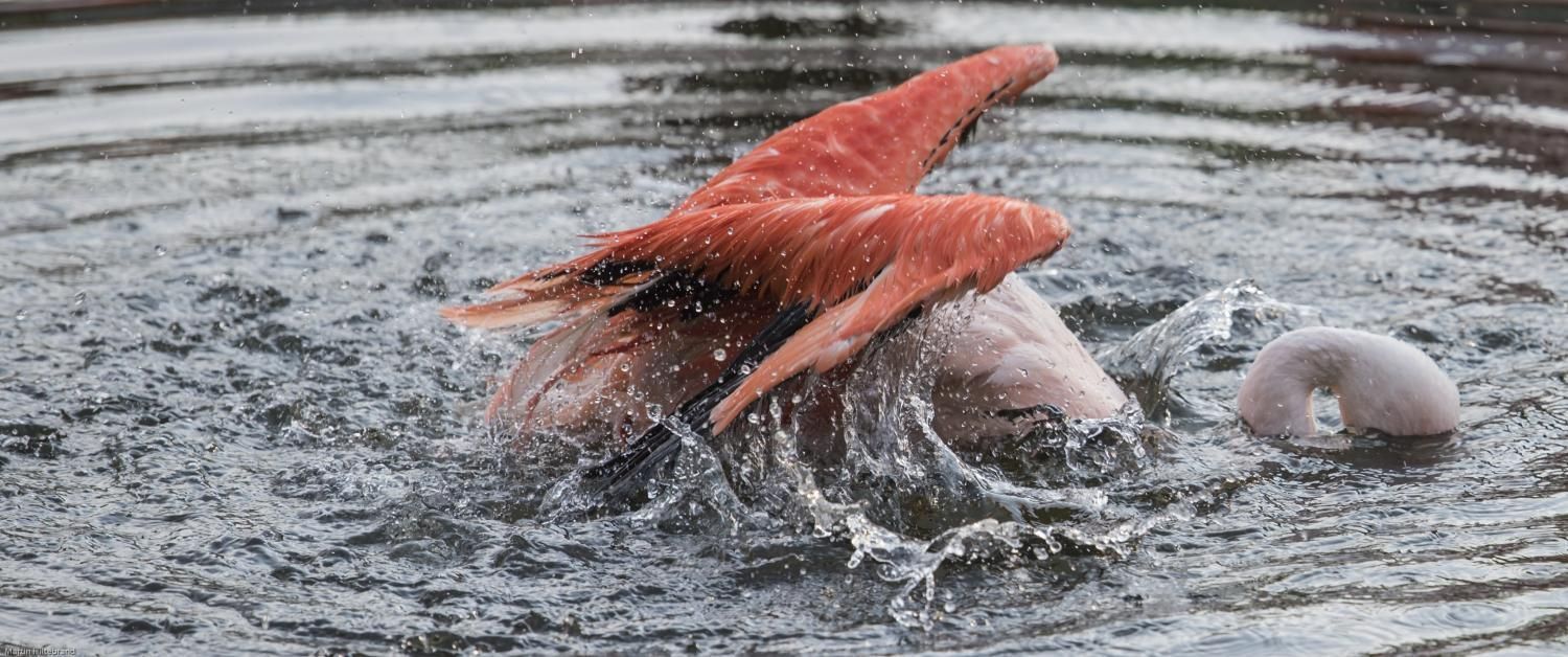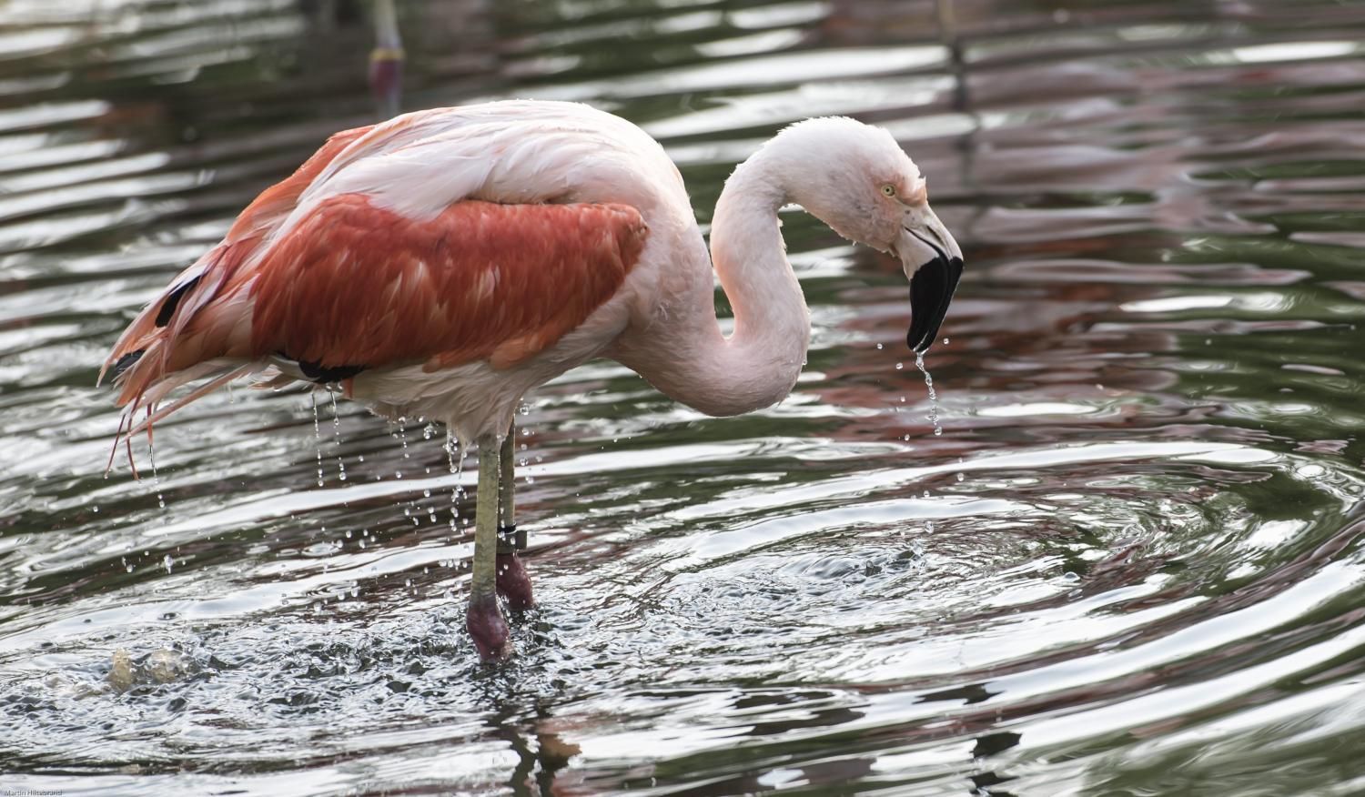 Flamingos leben in grossen Kolonien und können sich nur in grösseren Gruppen fortpflanzen. Trotzdem sind sie Distanztiere. Die Ausstattung der Anlage im Zoo Zürich mit Schlickzonen, fliessendem Wasser, geschützten Lagen sowie Hügeln für den Nestbau erfüllt ihre Ansprüche. Beim Fressen filtern Flamingos unter anderem kleine Krebse aus dem Wasser. Der in den Kleinkrebsen enthaltene Farbstoff gibt den Tieren die schöne rote Färbung.