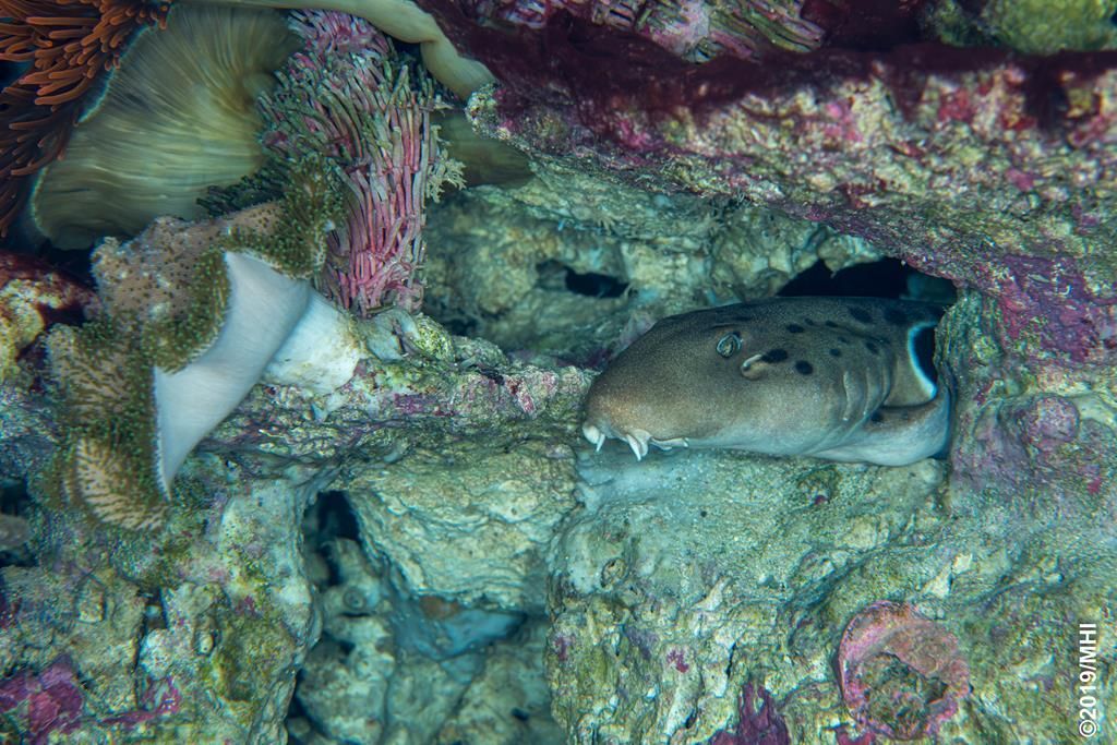 Lebensweise: Meist nachtaktiv. Versteckt sich in Korallenriffen und jagt in seichtem Wasser. Epaulettenhaie schwimmen sehr selten. Normalerweise kriechen sie wie z.B. Salamander und nutzen die Flossen als Füsse. So können sie auch kurze Strecken an Land überbrücken.