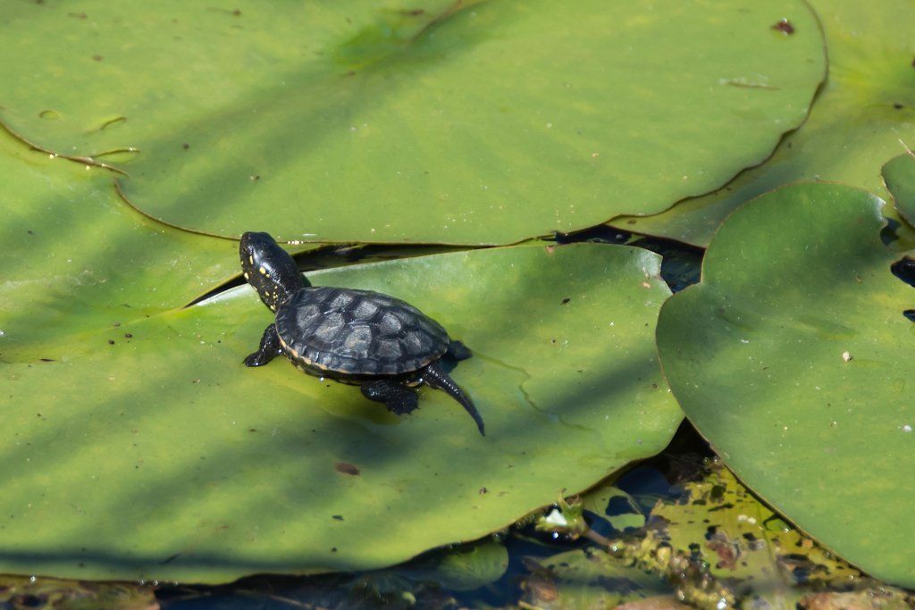 Die Europäische Sumpfschildkröte ist die einzige in der Schweiz einheimische Schildkrötenart und hat unter den Sumpfschildkröten die weiteste Verbreitung. Diese reicht von Litauen bis in den Iran. Trotz ihrer Anpassungsfähigkeit wurden die Bestände in der Schweiz stark dezimiert. Im Mittelalter landeten die Tiere auf dem Teller, da sie von der Kirche als „fischähnliches“ Lebewesen anerkannt während der Fastenzeit verspeist werden durften. Später verschwand ihr Lebensraum. Sumpfgebiete wurden trocken -, Flüsse in enge Korsette gelegt. Bis nur noch wenige Tiere übrig blieben. Die europäischen Sumpfschildkröten paaren sich im Frühling. Die Weibchen legen ihre Eier in eine Grube in der Erde oder im Sand ab. Das Geschlecht der jungen Schildkröten wird durch die Temperatur zwischen dem 30. und 40. Tag nach der Befruchtung bestimmt. Liegt diese über 29 Grad schlüpft im Spätsommer ein Weibchen. Liegt die Temperatur unter 28 Grad entwickelt sich ein Männchen. Bei Temperaturen im Zwischenbereich schlüpfen beide Geschlechter. Ausgewachsene Sumpfschildkröten ernähren sich hauptsächlich von Wasserpflanzen. Daneben steht auch tierisches Eiweiss in Form von Amphibien, Schnecken oder Wasserinsekten sowie Kadaver von Fischen auf dem Speiseplan. Die kalten Temperaturen im Winter überstehen die Schildkröten in einem Gewässer im Schlamm eingegraben. Sauerstoff nehmen sie während dieser Zeit über die Haut auf. Im Natur- und Tierpark Goldau haben die Sumpfschildkröten ihre Anlage in der Nähe der Bären- und Wolfanlage neben dem Amphibienteich am Schuttbach.