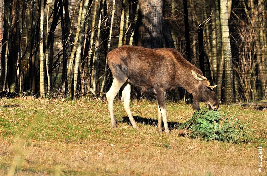 Die Paarungzeit ist im September/Oktober. Elchstiere verhalten sich dabei sehr aggresiv. Wenige Tage vor der Geburt im Mai/Juni vertreibt die Elchkuh das letzjährige. Zwillinge sind häufig. |