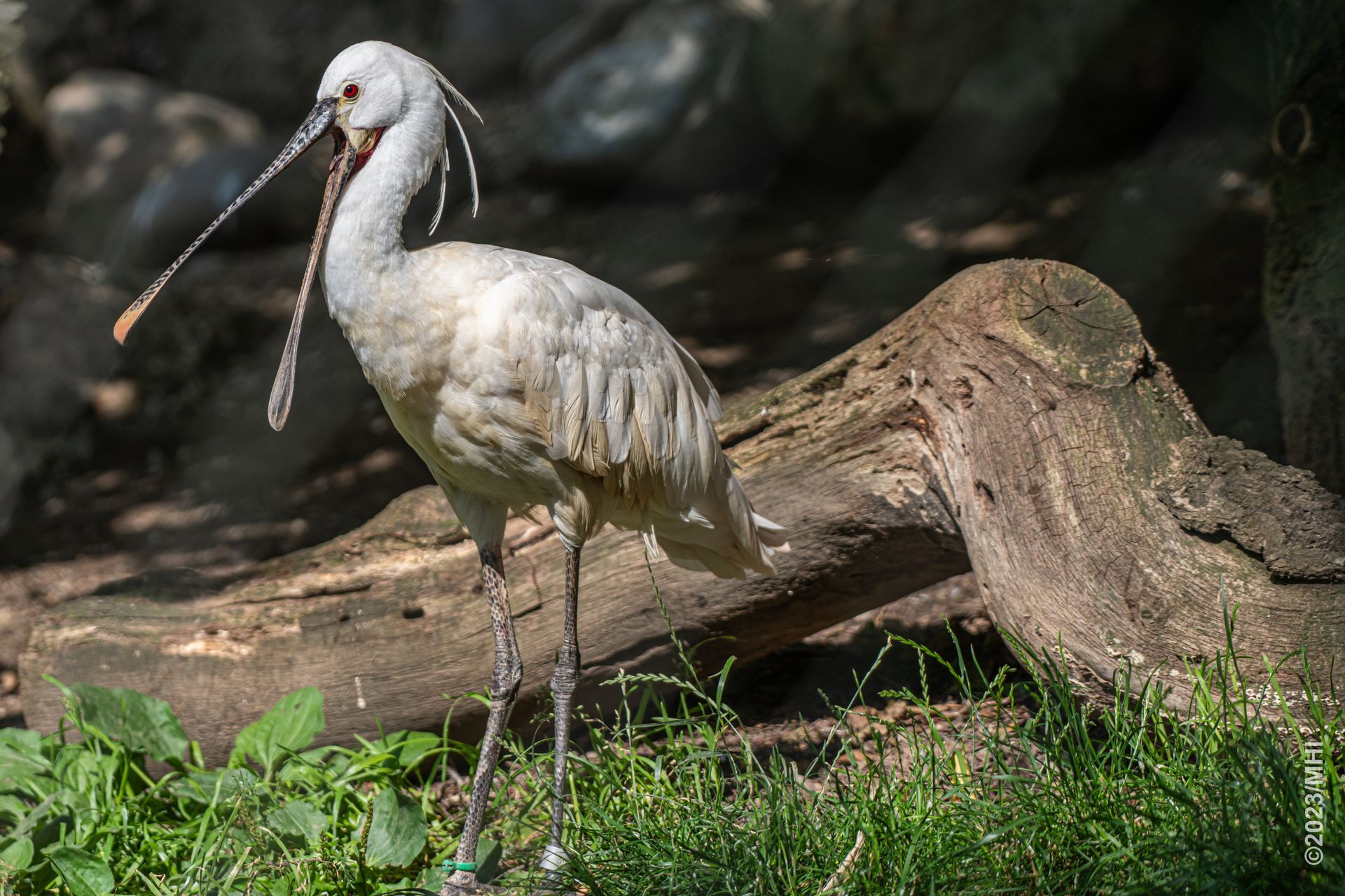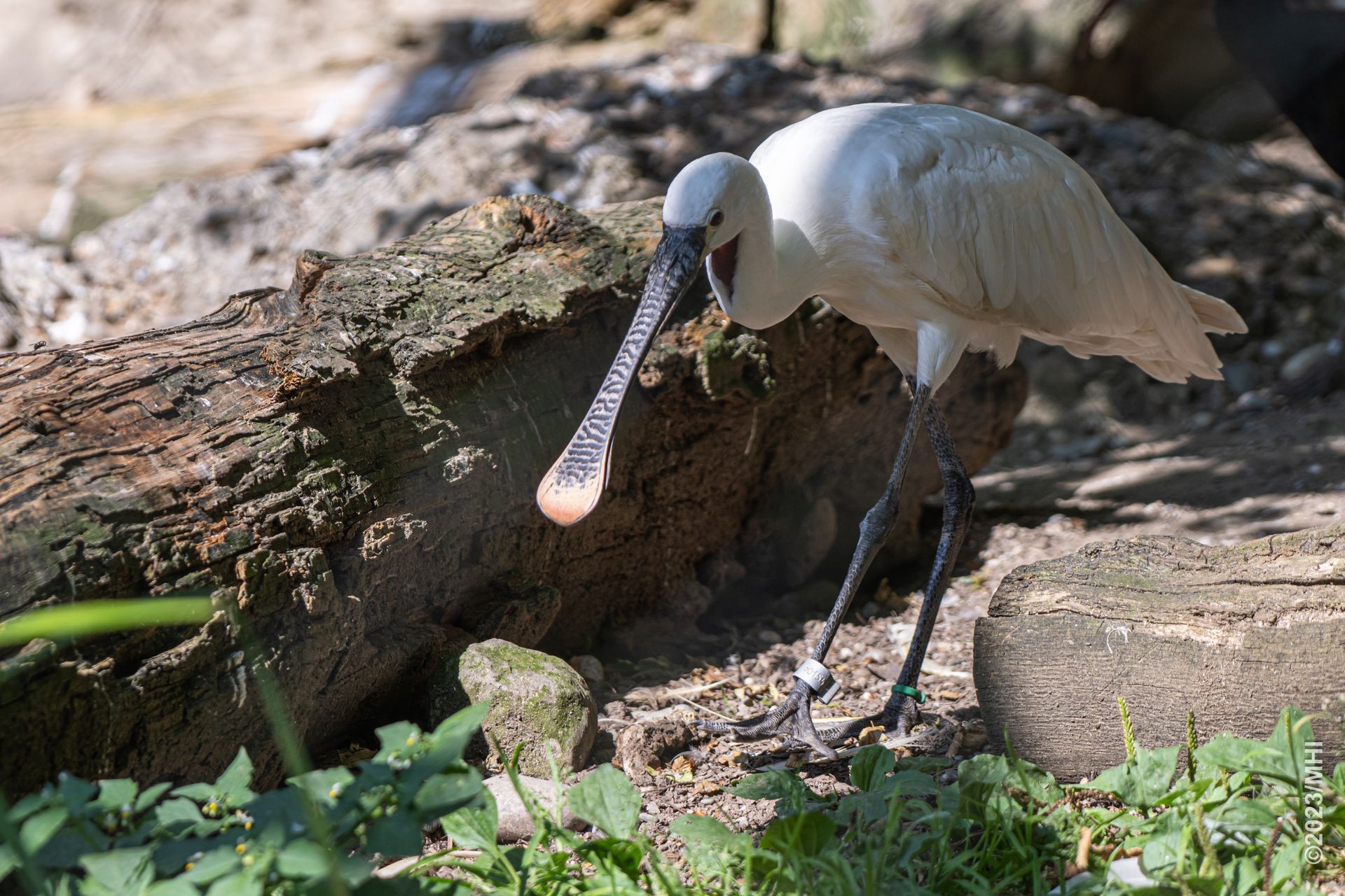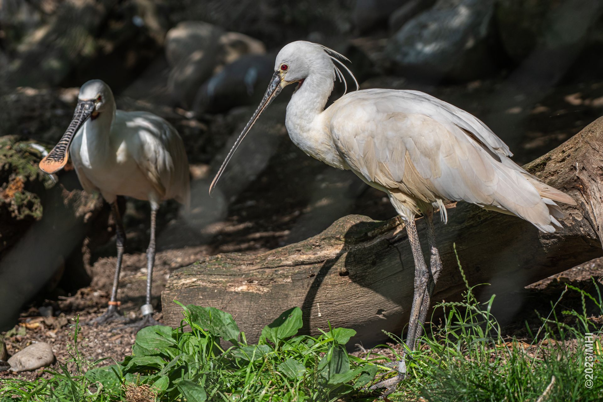 Den Namen "Löffler" haben diese reiherähnlichen Vögel ihrem charakteristisch geformten Schnabel zu verdanken. Zur Nahrungssuche waten sie im seichten Wasser und wenden dabei den halbgeöffneten Schnabel in typischer Weise hin und her. Dabei bleiben kleine Wassertiere und Pflanzenteile an den siebartigen Zähnchen hängen. Das Schnabelklappern der Löffler wird, ähnlich demjenigen der Störche, zur akustischen Verständigung eingesetzt. Im Zoo Zürich sind die Löffler mit drei anderen Vogelarten vergesellschaftet.