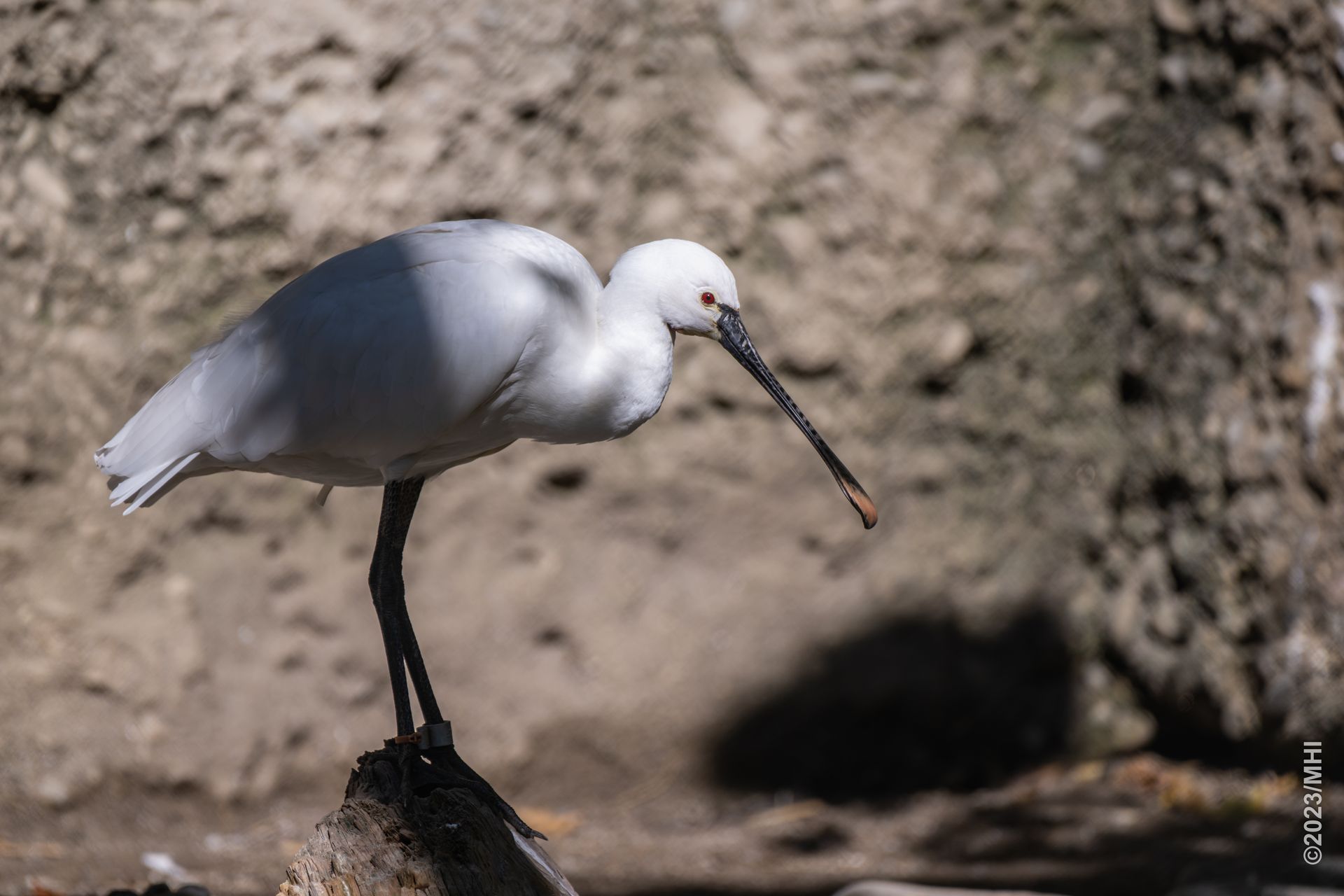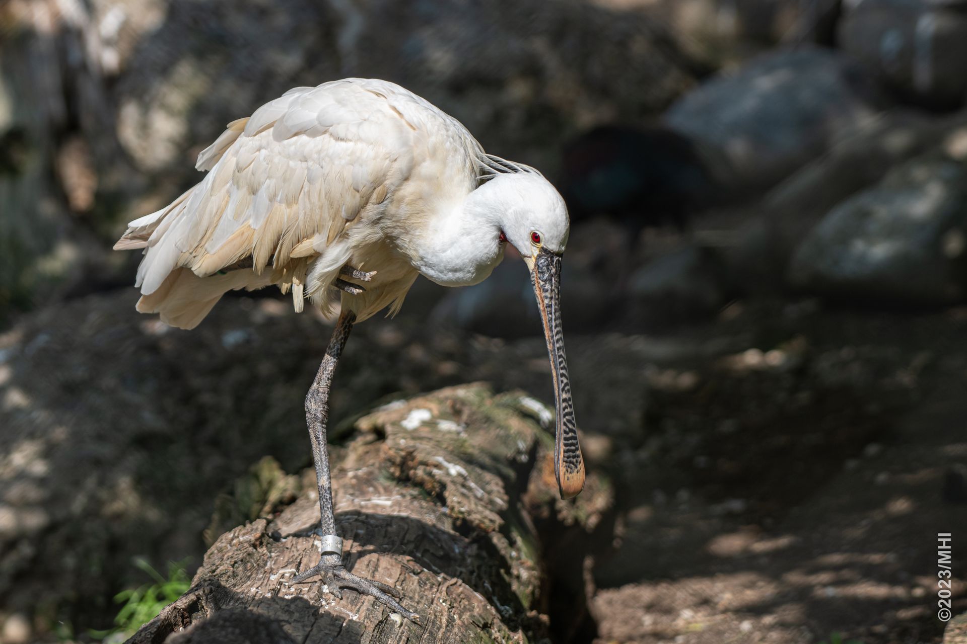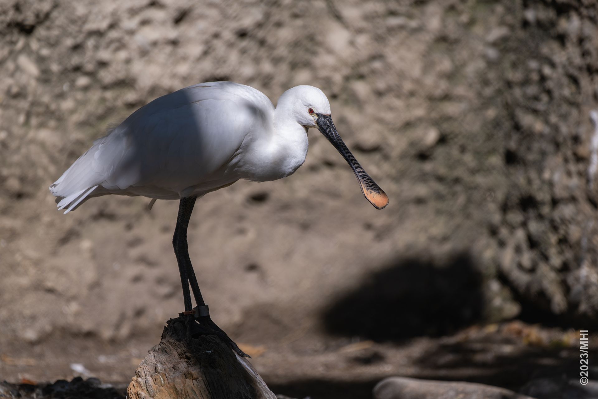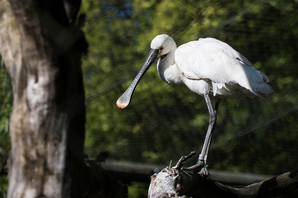 Den Namen "Löffler" haben diese reiherähnlichen Vögel ihrem charakteristisch geformten Schnabel zu verdanken. Zur Nahrungssuche waten sie im seichten Wasser und wenden dabei den halbgeöffneten Schnabel in typischer Weise hin und her. Dabei bleiben kleine Wassertiere und Pflanzenteile an den siebartigen Zähnchen hängen. Das Schnabelklappern der Löffler wird, ähnlich demjenigen der Störche, zur akustischen Verständigung eingesetzt. Im Zoo Zürich sind die Löffler mit drei anderen Vogelarten vergesellschaftet.