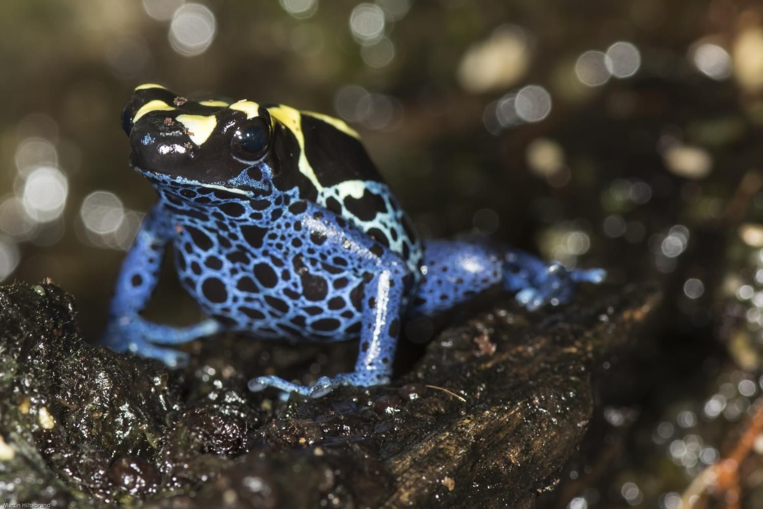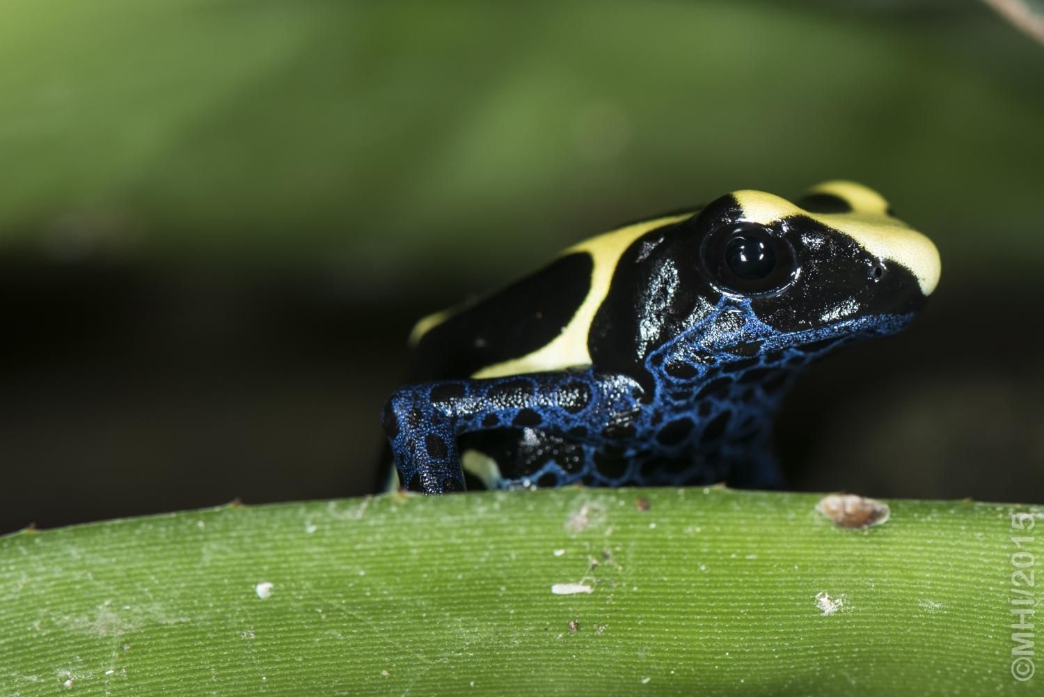 Die Färberfrösche sind trotz ihrer auffälligen Farbgebung im dämmrigen Urwaldlicht kaum zu sehen. Die plakative Farbgebung kommt nicht von ungefähr: Die Warnfarbe soll potentielle Fressfeinde abschrecken, denn das Gift dieser Frösche ist sehr stark und dient unter anderem der Abwehr von Hautparasiten. Der Färberfrosch ist der Wissenschaft schon bald 200 Jahre bekannt. Die Vernichtung seines Lebensgebiets macht ihm allerdings schwer zu schaffen, da er eine hochspezialisierte Brutpflege betreibt.