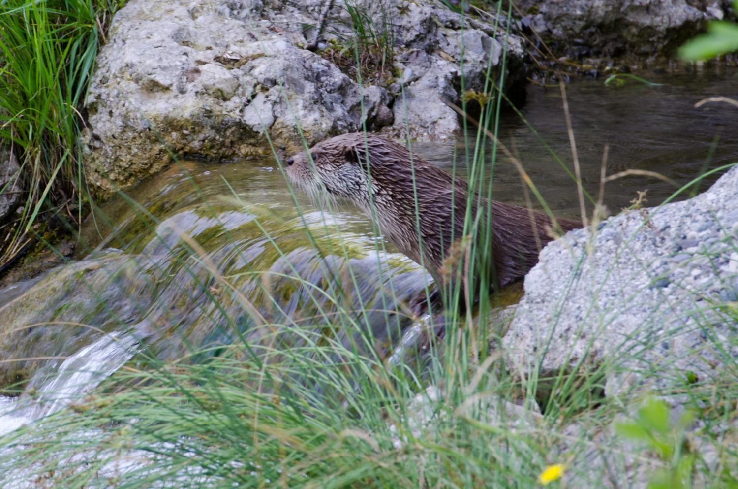Der europäische Fischotter gehört zur Familie der Marder und bevorzugt als Lebensraum Gewässer mit Rückzugsmöglichkeiten in Form von Schilf, Sträuchern oder Gehölz. Man findet ihn an Bächen, Flüssen, Seen bis 1600 Metern über Meer so wie an Meeresküsten. Seine Verbreitung reicht von Westeuropa und Nordafrika bis über weite Teile Asiens. In der Schweiz gilt der Fischotter seit 1989 als ausgestorben. Als fleischfressender Nahrungsopportunist variiert sein Beutespektrum je nach Lebensraum und Jahreszeit. Seine Hauptnahrung besteht aus Fisch. Er ist ein ausgezeichneter Schwimmer und Taucher, der überwiegend in der Dämmerung und Nacht jagt. Neben Fischen ernährt sich der Fischotter auch von Amphibien, Krebsen, Vögeln, Insekten, Mäusen und anderen Kleinsäugern. Sein Nahrungsbedarf beträgt ungefähr 1kg pro Tag. Neben einem guten Geruchs- und Gehörsinn verfügt der Fischotter über einen ausgezeichneten Sehsinn. Seine Augen können sich den gegebenen Lichtverhältnissen anpassen und sehen sowohl über als auch unter Wasser scharf. Sein wichtigster Sinn ist der Tastsinn. Mit seinen Barthaaren, den so genannten Vibrissen, spürt er Beute im trüben Wasser auf und erkennt Hindernisse. Vibrissen sind hochempfindsame Tasthaare, die Bewegungen, Objekte sowie Wärme und Kälte wahrnehmen können. Vom Kopf bis zu seinem völlig behaarten und spitz zulaufenden Schwanz misst der Fischotter bis zu 120cm. Sein dichtes Fell ist wasserdicht und hält den Körper wohlig warm. Lange Zeit wurden Fischotterfelle verarbeitet und teuer gehandelt. Heute ist der Handel verboten.Auf Grund seiner Nahrungspräferenzen galt der Fischotter vielerorts als Schädling. Als Konkurrent der Fischer wurde er stark bejagt. Gar eine komplette Ausrottung wurde im 19. Jahrhundert angestrebt. In der Schweiz ist der Fischotter seit 1952 eine geschützte Art, trotzdem starb er – vermutlich infolge Lebensraumverlustes – gut vierzig Jahre später aus. Inzwischen haben sich die Bedingungen und damit die Bestände vor allem in Osteuropa wieder erholt und man rechnet damit, dass natürliche Zuwanderungen auch in die Schweiz erfolgen werden. Die neue Fischotteranlage wurde im Juni 2012 eröffnet und befindet sich in der Nähe des Eingangs.