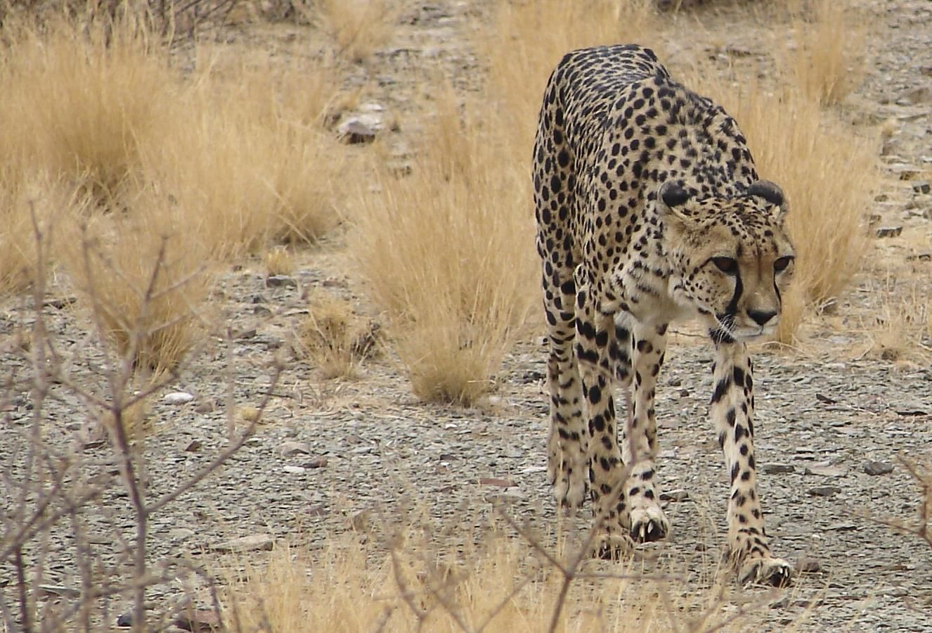 Der Gepard ist eine hauptsächlich in Afrika verbreitete Katze. Die in ihrem Jagdverhalten hoch spezialisierten Geparde gelten als schnellste Landtiere der Welt. Gestalt und Körperbau der Art unterscheiden sich deutlich von anderen Katzen, außerdem weist das Jagdverhalten zahlreiche eher für Caniden typische Merkmale auf. Daher wird der Art traditionell eine Sonderstellung unter den Katzen eingeräumt. Genetische Untersuchungen zeigten jedoch, dass diese entwicklungsgeschichtlich nicht gerechtfertigt ist; die nächsten Verwandten des Gepards sind amerikanische Katzen (Pumas). Das Gepardfell hat eine goldgelbe Grundfarbe, wobei die Bauchseite meist deutlich heller ist. Es ist mit schwarzen Flecken übersät, die deutlich kleiner sind als die eines Leoparden und keine Rosetten bilden. Das Gesicht ist dunkler und ungefleckt, trägt aber zwei schwarze Streifen, die von den Augen zu den Mundwinkeln laufen (Tränenstreifen). In Bezug auf die Fleckung ähnelt der Gepard zwar dem Leoparden, in seiner Gestalt unterscheidet er sich jedoch beträchtlich von diesem wie auch von allen anderen Katzen. Geparde haben extrem lange, dünne Beine und einen sehr schlanken Körper, der dem eines Windhundes sehr ähnelt. Der Kopf ist klein und rund, der Schwanz lang. Die Pfoten tragen dicke, schuppige Sohlen; die Krallen sind nur bedingt einziehbar. Aufgrund seines Körperbaus ist der Gepard das schnellste Landtier der Welt. Er erreicht im Lauf bis zu 93 km/h, kann diese hohe Geschwindigkeit aber nur etwa 400 m durchhalten. Die Anatomie des Gepards ist auch in weiteren Punkten auf Schnelligkeit ausgelegt: seine Nasengänge sind erheblich verbreitert, so dass wenig Platz für das Gebiss bleibt, das gegenüber anderen Katzen stark verkleinert und damit eine relativ schwache Waffe ist. Auch Lungen, Bronchien und Nebennieren sind proportional stark vergrößert. Ein Gepard erreicht eine Kopf-Rumpf-Länge von 150 cm, hinzu kommen 70 cm Schwanz. Die Schulterhöhe beträgt 80 cm. Trotz dieser stattlichen Größe bringt er es nur auf ein Gewicht von 60 kg.