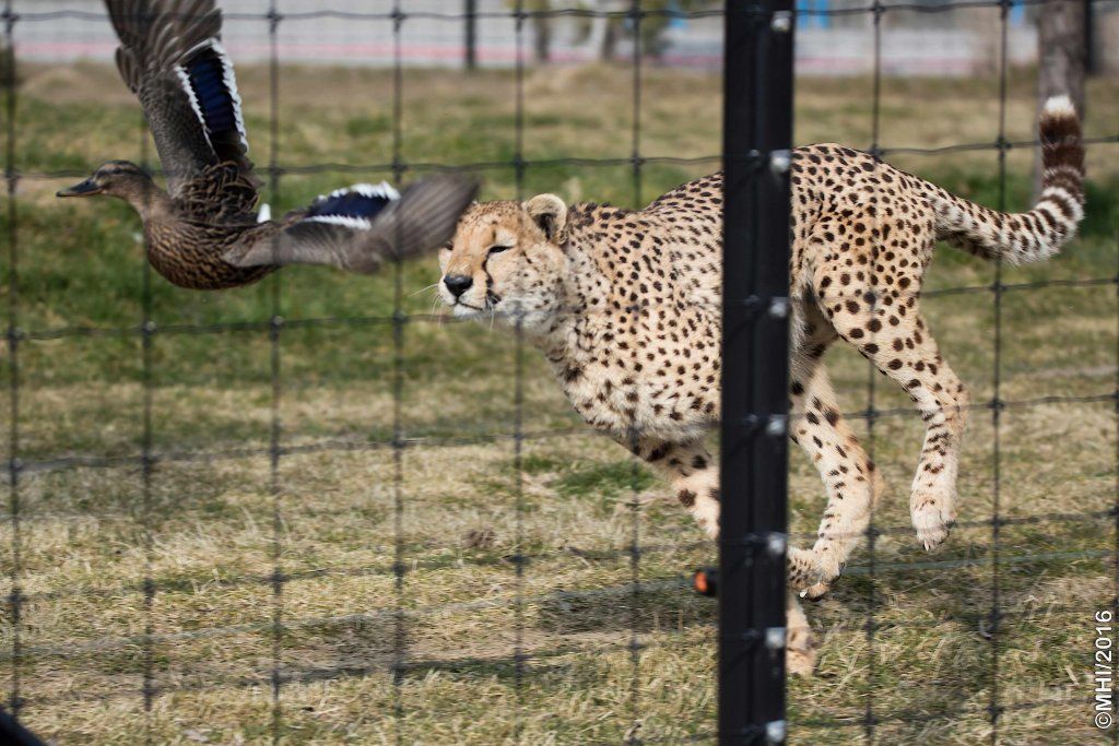 Der Gepard ist eine hauptsächlich in Afrika verbreitete Katze. Die in ihrem Jagdverhalten hoch spezialisierten Geparde gelten als schnellste Landtiere der Welt. Gestalt und Körperbau der Art unterscheiden sich deutlich von anderen Katzen, außerdem weist das Jagdverhalten zahlreiche eher für Caniden typische Merkmale auf. Daher wird der Art traditionell eine Sonderstellung unter den Katzen eingeräumt. Genetische Untersuchungen zeigten jedoch, dass diese entwicklungsgeschichtlich nicht gerechtfertigt ist; die nächsten Verwandten des Gepards sind amerikanische Katzen (Pumas). Das Gepardfell hat eine goldgelbe Grundfarbe, wobei die Bauchseite meist deutlich heller ist. Es ist mit schwarzen Flecken übersät, die deutlich kleiner sind als die eines Leoparden und keine Rosetten bilden. Das Gesicht ist dunkler und ungefleckt, trägt aber zwei schwarze Streifen, die von den Augen zu den Mundwinkeln laufen (Tränenstreifen). In Bezug auf die Fleckung ähnelt der Gepard zwar dem Leoparden, in seiner Gestalt unterscheidet er sich jedoch beträchtlich von diesem wie auch von allen anderen Katzen. Geparde haben extrem lange, dünne Beine und einen sehr schlanken Körper, der dem eines Windhundes sehr ähnelt. Der Kopf ist klein und rund, der Schwanz lang. Die Pfoten tragen dicke, schuppige Sohlen; die Krallen sind nur bedingt einziehbar. Aufgrund seines Körperbaus ist der Gepard das schnellste Landtier der Welt. Er erreicht im Lauf bis zu 93 km/h, kann diese hohe Geschwindigkeit aber nur etwa 400 m durchhalten. Die Anatomie des Gepards ist auch in weiteren Punkten auf Schnelligkeit ausgelegt: seine Nasengänge sind erheblich verbreitert, so dass wenig Platz für das Gebiss bleibt, das gegenüber anderen Katzen stark verkleinert und damit eine relativ schwache Waffe ist. Auch Lungen, Bronchien und Nebennieren sind proportional stark vergrößert. Ein Gepard erreicht eine Kopf-Rumpf-Länge von 150 cm, hinzu kommen 70 cm Schwanz. Die Schulterhöhe beträgt 80 cm. Trotz dieser stattlichen Größe bringt er es nur auf ein Gewicht von 60 kg.