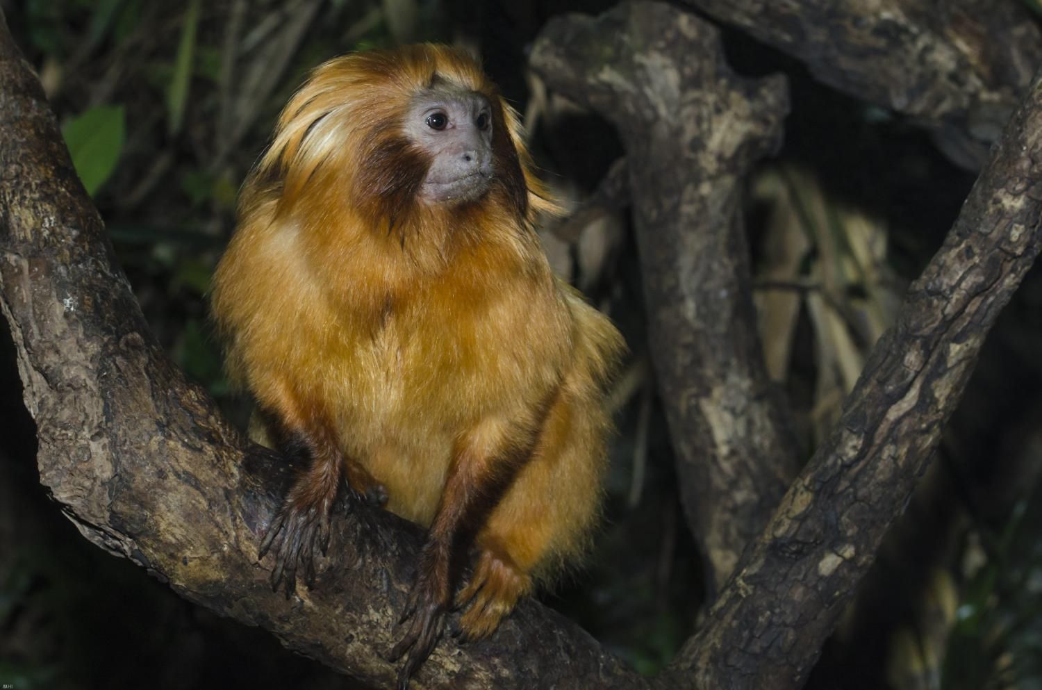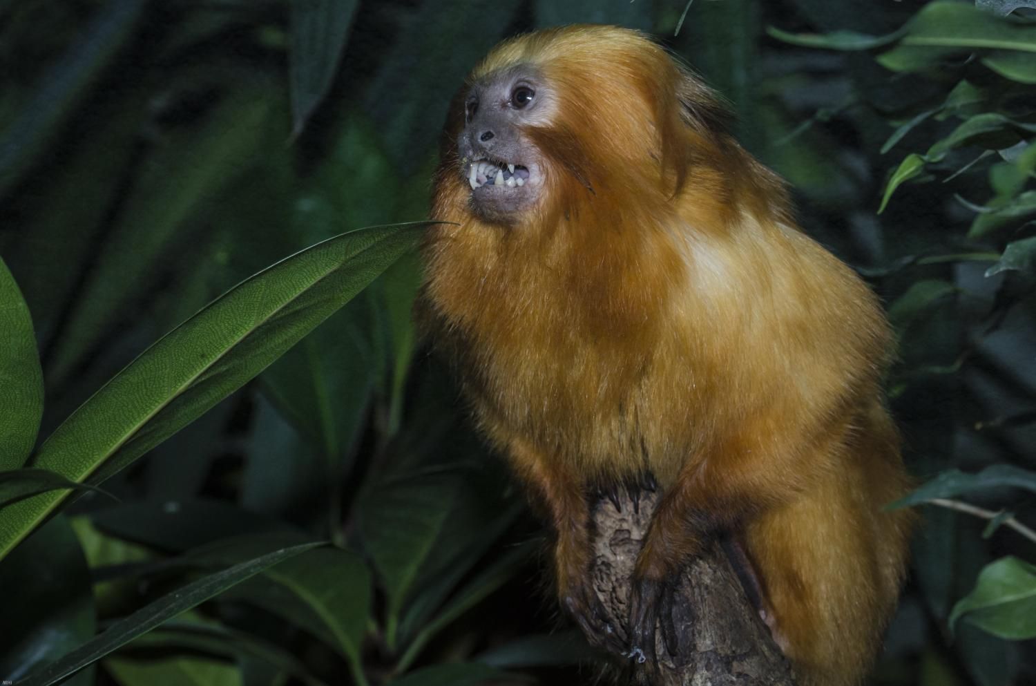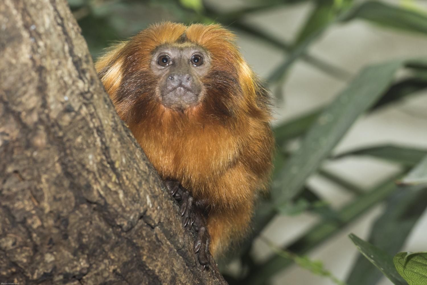 Das Goldgelbe Löwenäffchen ist ein lebhafter Baumbewohner der Regenwälder Südostbrasiliens, das seinen Namen dem mähnenartig verlängerten Fell an Kopf und Schultern verdankt. Speziell ist, dass sich in einer Gruppe nur das ranghöchste Elternpaar fortpflanzt, während die anderen Gruppenmitglieder durch ihre niedrigere Stellung unter einem sozialen Stress stehen, der zu einer sogenannten psychischen Kastration führt. Die Jungen reiten auf dem Rücken des Vaters oder der älteren Geschwister, die so die Aufzucht von Jungtieren erlernen. Das Löwenäffchen ist in seinem natürlichen Lebensraum stark vom aussterben bedroht.