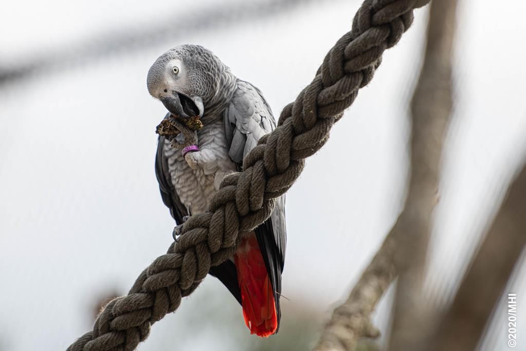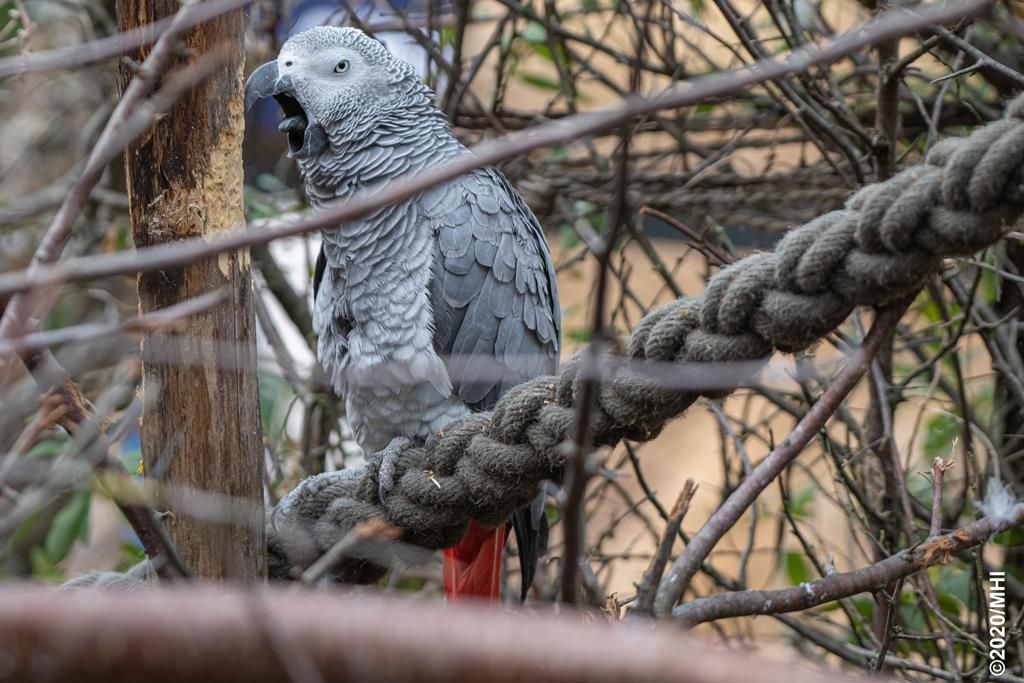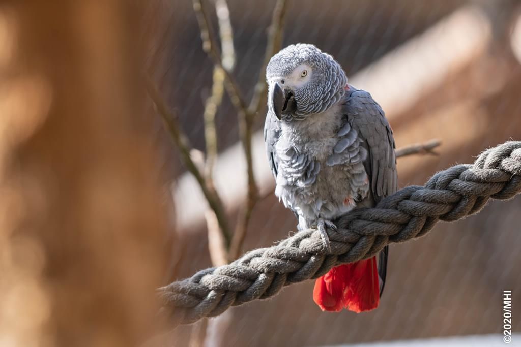 Der Graupapagei ist der grösste Papagei Afrikas und einer der beliebtesten Ziervögel in Europa und Amerika. Bekannt sind sie vor allem für ihre Fähigkeit, Geräusche und Stimmen nachzuahmen, insbesondere die menschliche Sprache. Doch auch wildlebende Graupapageien imitieren Stimmen. So können Forscher zufolge einige Tiere aus der Demokratischen Republik Kongo neun Vogelarten und eine Fledermausart nachahmen. Besonders laut wird die Geräuschkulisse, wenn Gefahr droht oder sie sich für die Nachtruhe auf einem Baum niederlassen. Dann stossen sie oft laute Schreie und Pfiffe aus. Wird ein Feind gesichtet, so fliegen alle Papageien kreischend vom Baum auf und geben einen ohrenbetäubenden Lärm von sich.