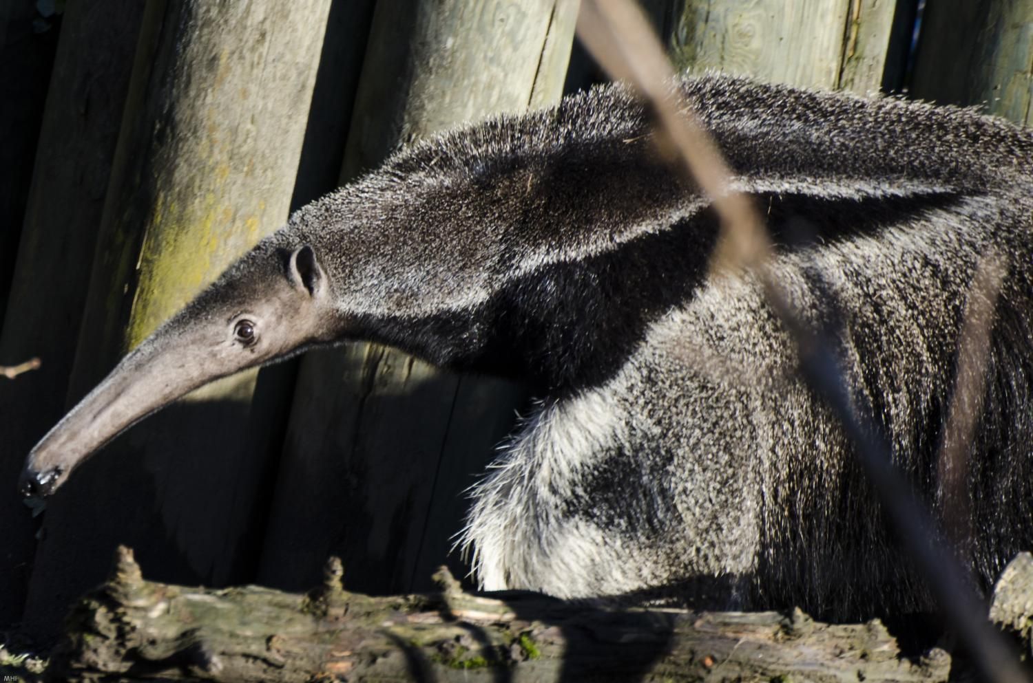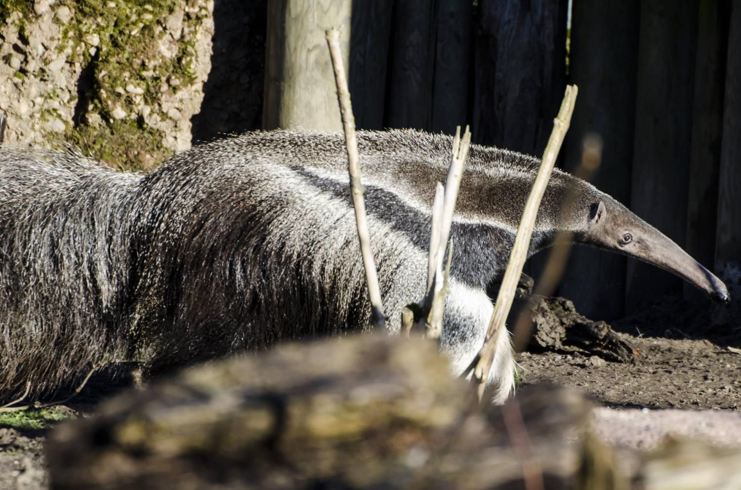 Der Grosse Ameisenbär ist im Unterschied zum Zwergameisenbär ein ausgesprochener Bodenbewohner, der hauptsächlich tagsüber auf Nahrungssuche geht. Mit dem schräg nach unten gerichteten, röhrenförmigen Kopf sucht er unablässig den Boden nach Insekten ab. Hat er einen Ameisen- oder Termitenhügel entdeckt, reisst er ihn mit den kräftigen Sichelkrallen der Vorderfüsse auf und fischt mit der bis zu 55 cm langen und feuchten Zunge die Beute heraus (pro Tag verzehrt er bis zu 35 000 Ameisen oder Termiten). Mit den kräftigen Vorderpfoten wehrt er sich auch erfolgreich gegen Feinde wie Jaguar oder Puma.
