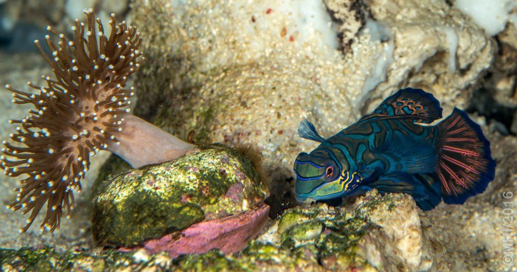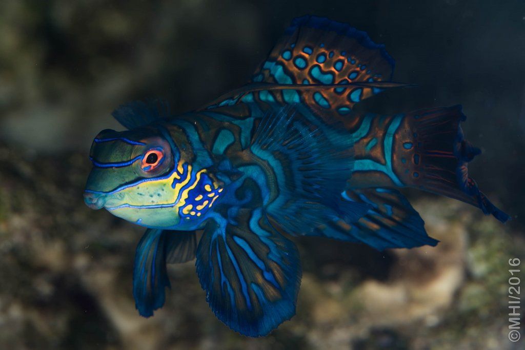 Auffällig sind die vorstehenden Augen der Mandarinfische.