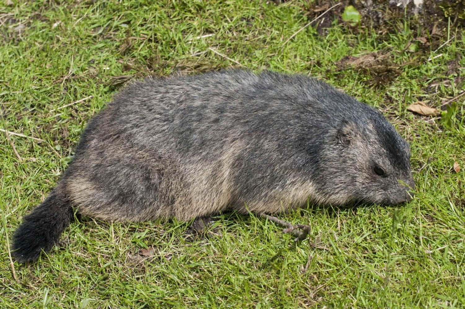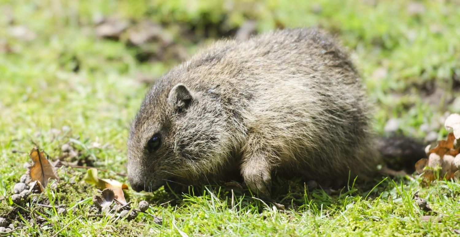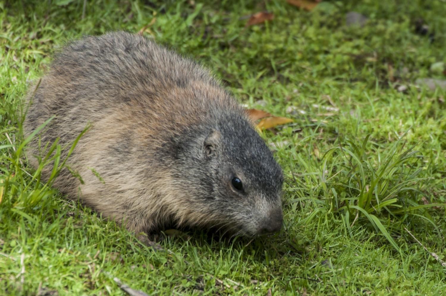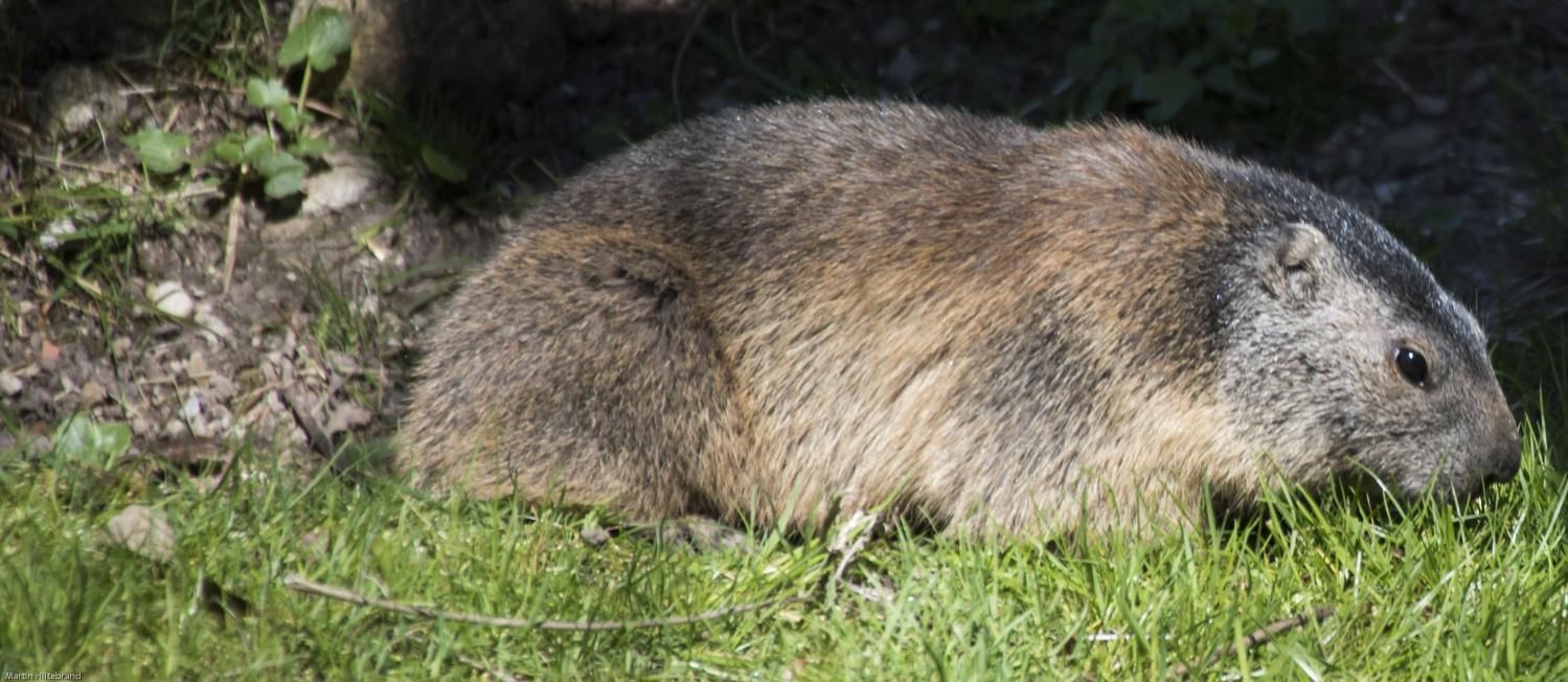 Das Alpenmurmeltier, ein entfernter Verwandter des Eichhörnchens, ist über die gesamte Alpenregion verbreitet. Es ernährt sich ausschliesslich von verschiedenen Pflanzenarten und ist je nach Jahreszeit zwischen vier und acht Kilogramm schwer. Im Sommer und Herbst müssen die Alpenmurmeltiere Fettreserven anfressen, die sie während des Winterschlafs und der anschliessenden Paarungszeit auf-brauchen. Alpenmurmeltiere sind Winterschläfer, d.h. ihre Körpertemperatur fällt während des Winters bis auf ca. 5 Grad Celsius ab und das Herz schlägt nur noch 1-3 Mal pro Minute (normal 100 Herzschläge pro Minute). Sie erwachen in dieser Zeit im Rhythmus von drei bis vier Wochen, jedoch nur um zu koten und zu urinieren, bevor sie erneut in den Tiefschlaf fallen. Der Winterschlaf dauert ungefähr sechs Monate, so dass sie während der Schneeschmelze im Frühling aufwachen. Nach dieser Zeit haben sie 30–50% ihres Körpergewichtes verloren. Alpenmurmeltiere leben in selbst gegrabenen Höhlensystemen in Familienverbänden von bis zu 15 Mitgliedern. Halten sie sich ausserhalb von diesen auf, steht immer ein Familienmitglied Wache, um die Familie notfalls mittels schrillen Pfiffen vor dem Angriff eines Greifvogels oder Fuchses zu warnen. Die Jungen werden nach fünf Wochen Tragzeit in der Höhle noch unbehaart, blind und zahnlos geboren. Ein Wurf besteht aus 2-7 Jungtieren, die etwa 30g wiegen. Bis zum ersten Winter müssen die Jungen viel zunehmen und wachsen, denn um diesen zu überstehen, sollten die Jungtiere mindestens 1500g wiegen. Im Tierpark Goldau hat sich unsere Alpenmurmeltierfamilie ein eigenes, weit verzweigtes Höhlenlabyrinth gegraben. Wie der regelmässige Nachwuchs zeigt, scheint sie sich sehr wohl zu fühlen. Besuchen Sie das Murmeltier in der Nähe des Eingangs!