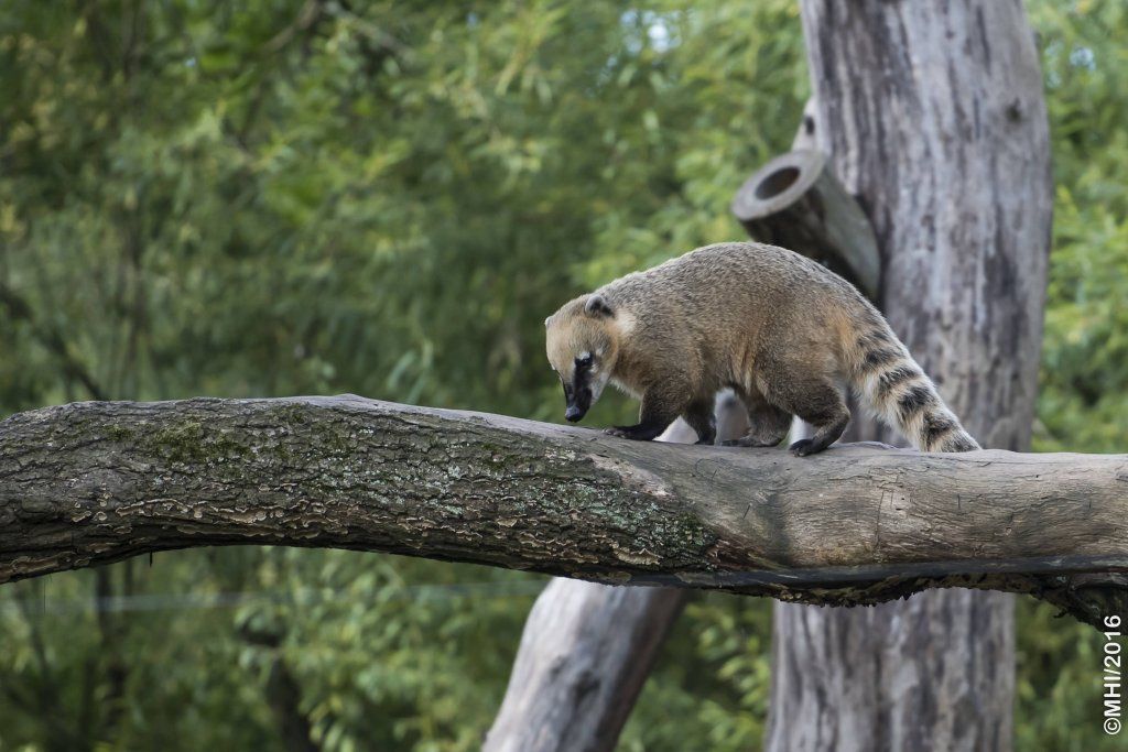 Nasenbären sind im Gegensatz zu anderen Kleinbären äusserst gesellige Tiere, die mit anderen Mitgliedern ihrer Gruppe fast ständig durch Fiepen und Trillern Kontakt halten. Auf der Suche nach Nahrung durchstöbern die Allesfresser mit ihrer langen, rüsselartigen und sehr beweglichen Nase den Boden. Dabei halten sie ihre Schwänze hoch erhoben, wodurch die Ringelzeichnung weithin sichtbar als Signal wirkt. Beim Klettern und Springen dient der lange Schwanz als Balancierhilfe. Nasenbären leben im Zoo im gleichen Gehege wie die Brillenbären; in Gefangenschaft können sie recht zahm werden.