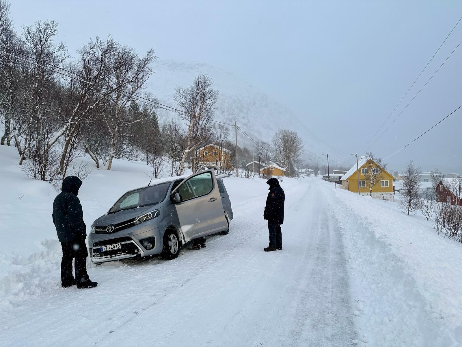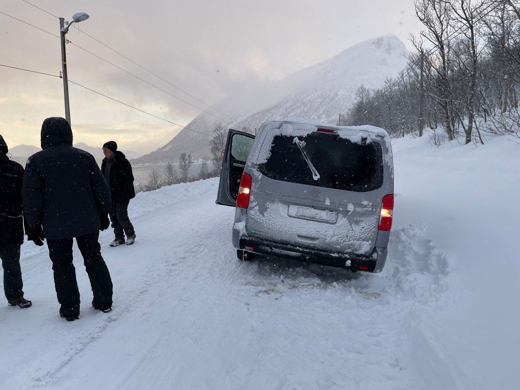 Heute ist der ereignisreichste Tag der ganzen Fotoreise. Nicht nur wegen der Nordlichter. Bei der Wegfahrt vom Hotel ist unser Auto in den Graben gerutscht. Mit Hilfe von anwesenden Schneeräumern die uns mit ihrem Bagger zu Hilfe geeilt sind konnten wir dieses Problem relativ schnell lösen. Später hat uns dann ein Räumungsfahrzeug zu einem Ausweichmanöver gezwungen und wir sind ein zweites mal im Graben gelandet. Beim zweiten mal wurde es dann etwas schwieriger mit dem aus dem Graben kommen. Der verursachende Schneepflug hat es nicht interessiert und ist einfach weitergefahren. Auch Bewohner an der Strasse hatten überhaupt kein Interesse uns zu helfen. Ich weiss nicht ob das die norwegische Gastfreundschaft ist. Schlussendlich sind wir dann von einem chinesischen Touristen aus dem Graben gezogen worden.