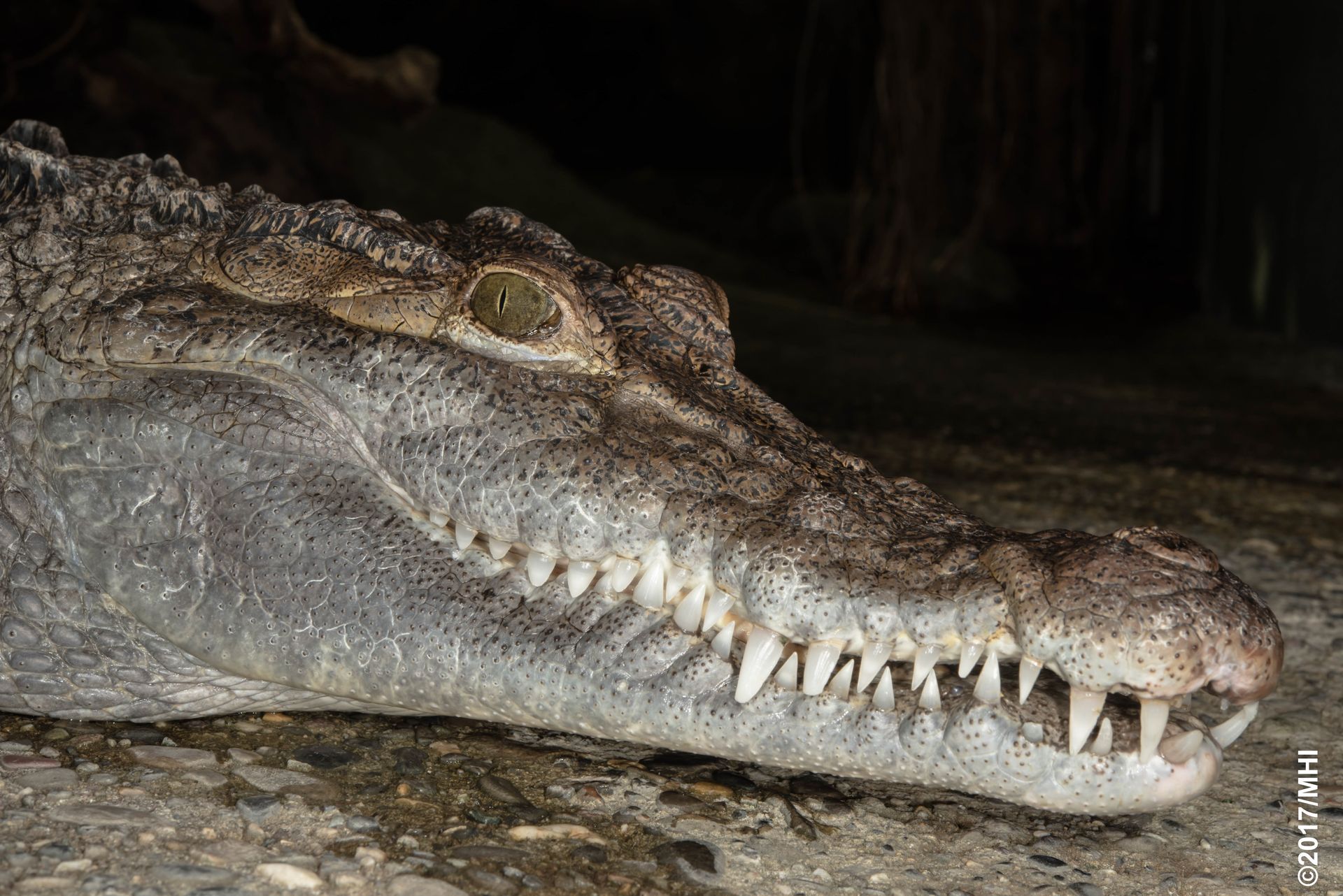 Im Vergleich zu allen anderen Krokodilen im pazifischen Raum zeichnet sich das Philippinen-Krokodil durch eine sehr breite Schnauze, die mit bis zu 68 Zähnen bewehrt ist, und große Panzerschuppen im Nacken- und Rückenbereich aus.