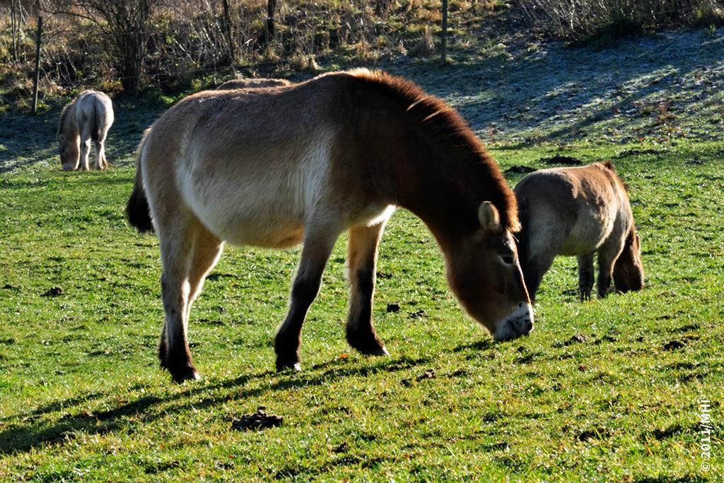 Das Przewalskipferd (Takhi) stammt aus den Steppen Asiens. In unseren Gegenden war der Trapan das heimische Waldwildpferd. Die Trapane wurden jedoch im vorletzten Jahrhundert ausgerottet. |