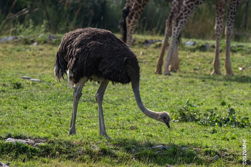 Fast jeder kennt die Redewendung "wie der Strauss den Kopf in den Sand stecken". Doch ist das ein Mythos. Das Männchen gräbt mit dem Schnabel eine Mulde, um darin das Nest anzulegen. Aus etwas Entfernung betrachtet, wirkt dies, als würde er seinen Kopf in den Sand stecken. Droht Gefahr, verteidigen sich die grossen Laufvögel mit kräftigen Fusstritten, die einen Angreifer sogar töten können. Dabei sind sie eigentlich in der Lage, während rund dreissig Minuten lang bis zu 70 km/h laufen zu können. Das ist Weltrekord unter den Vögeln!