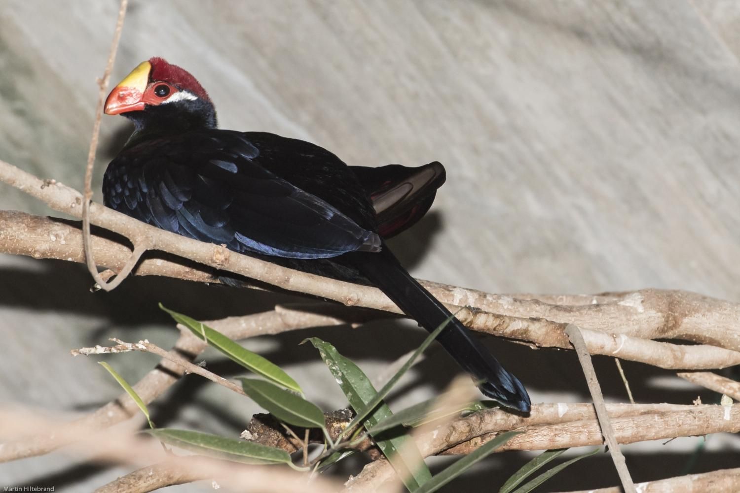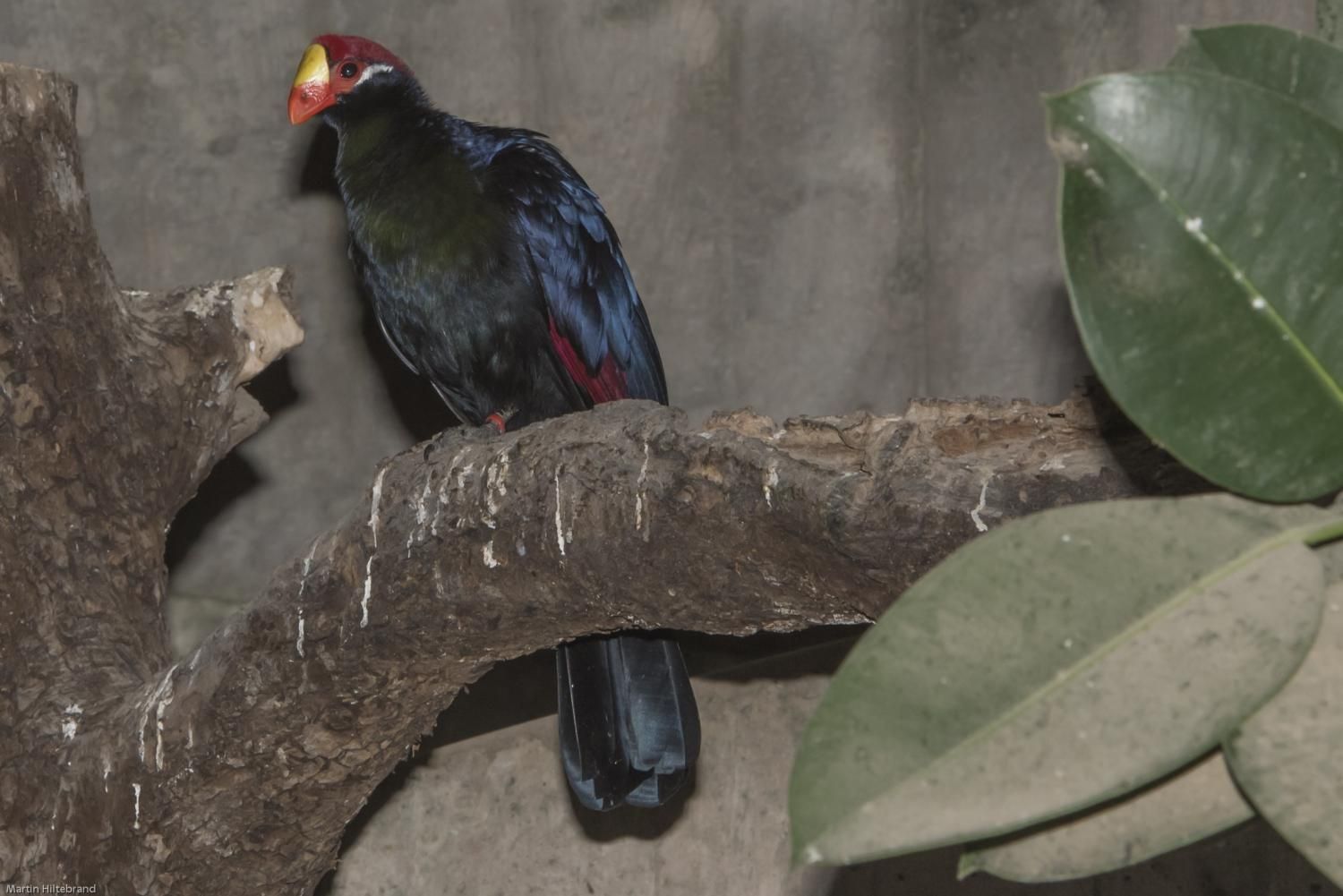 Die Schildturakos (Musophaga), auch Pisangfresser genannt, bilden eine Gattung in der Familie der Turakos (Musophagidae). Von der früher aus vier Arten bestehenden Gattung werden nur noch zwei Arten dieser Gattung zugeordnet, wobei der Ross-Turako (Mu. rossae) früher als Unterart des Schildturakos (Mu. violacea) gesehen wurde. Wie die meisten Vertreter aus der Familie der Turakos fallen beide Arten durch ihr farbenprächtiges Federkleid auf. Der Schildturako besitzt ein metallisch blau glänzendes und violett schimmerndes Gefieder; beim Ross-Turako sind die violetten Schimmer stärker ausgeprägt. Bei beiden Arten leuchten die Handschwingen mit blauen Säumen und Spitzen karminrot. Der verantwortliche rote kupferhaltige Farbstoff Turacin, der einzigartig in der Vogelwelt nur innerhalb der Familie der Turakos vorkommt, wird bei Regenwetter oder beim Baden im leichtalkalischen Wasser in geringen Mengen ausgewaschen. Damit sich mit der Zeit der rote Farbstoff nicht verliert, entstehen durch die Mauser neue Federn, die über den Körper Turacin aufnehmen. Voll entwickelte Federn können dem Körper keinen Farbstoff entziehen. Bei beiden Arten sind die Stirn und der Scheitel karminrot. Der über dem unteren Augenlid verlaufende weiße Streif beim Schildturako ist beim Ross-Turako nicht vorhanden. An der Schnabelwurzel ist der Schnabel verhältnismäßig wulstig, zur Schnabelspitze hin stark abgerundet und geht an der Stirn in eine schildartige rundliche Platte über. Die nicht von Federn bedeckten Nasenlöcher befinden sich länglich horizontal in der Mitte des Schnabels zur Schnabelspitze hin. Verlängernde haarartige Federn bilden beim Ross-Turako auf dem Scheitel eine Haube, was ihm auch die Bezeichnung Hauben-Schildturako einbrachte.