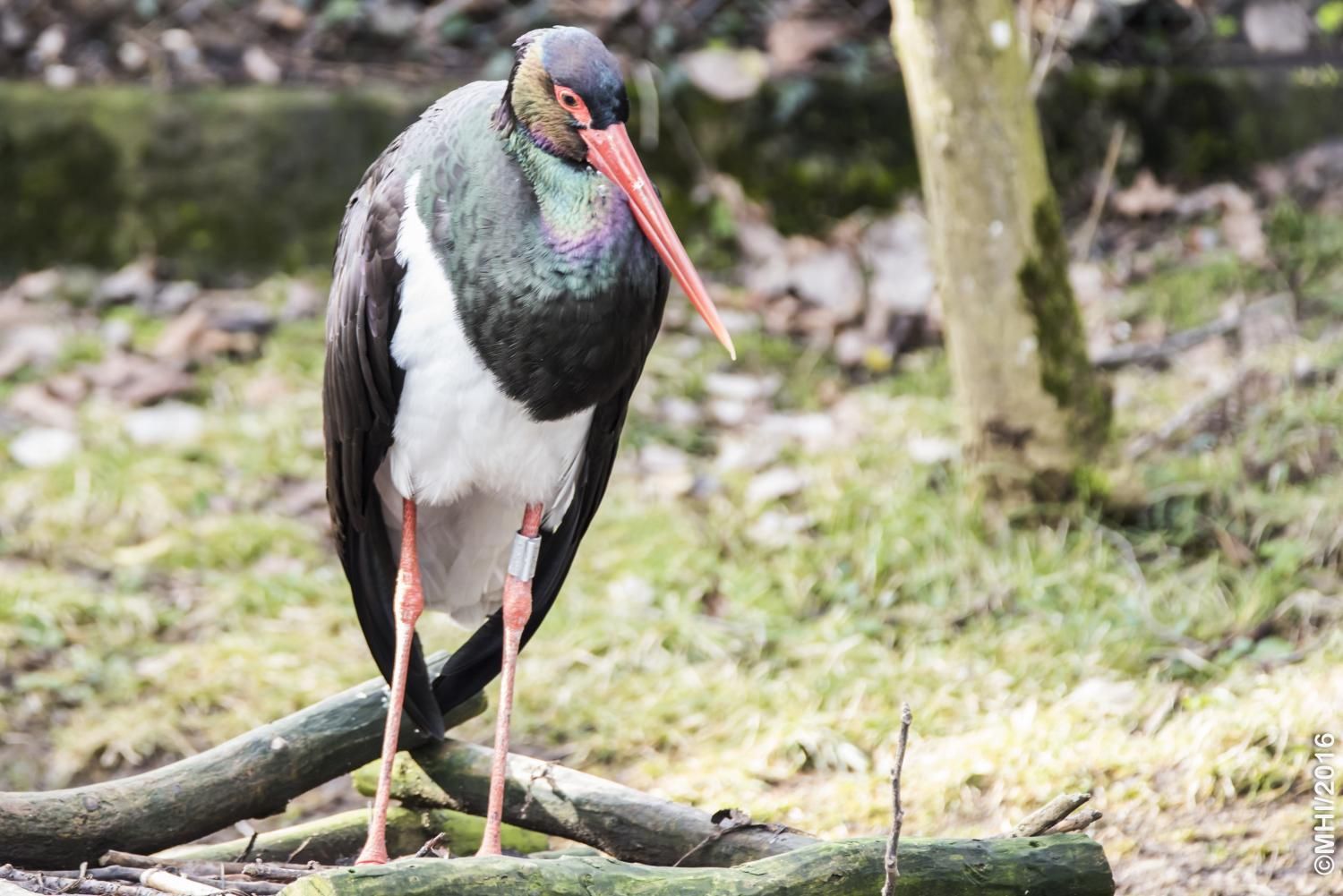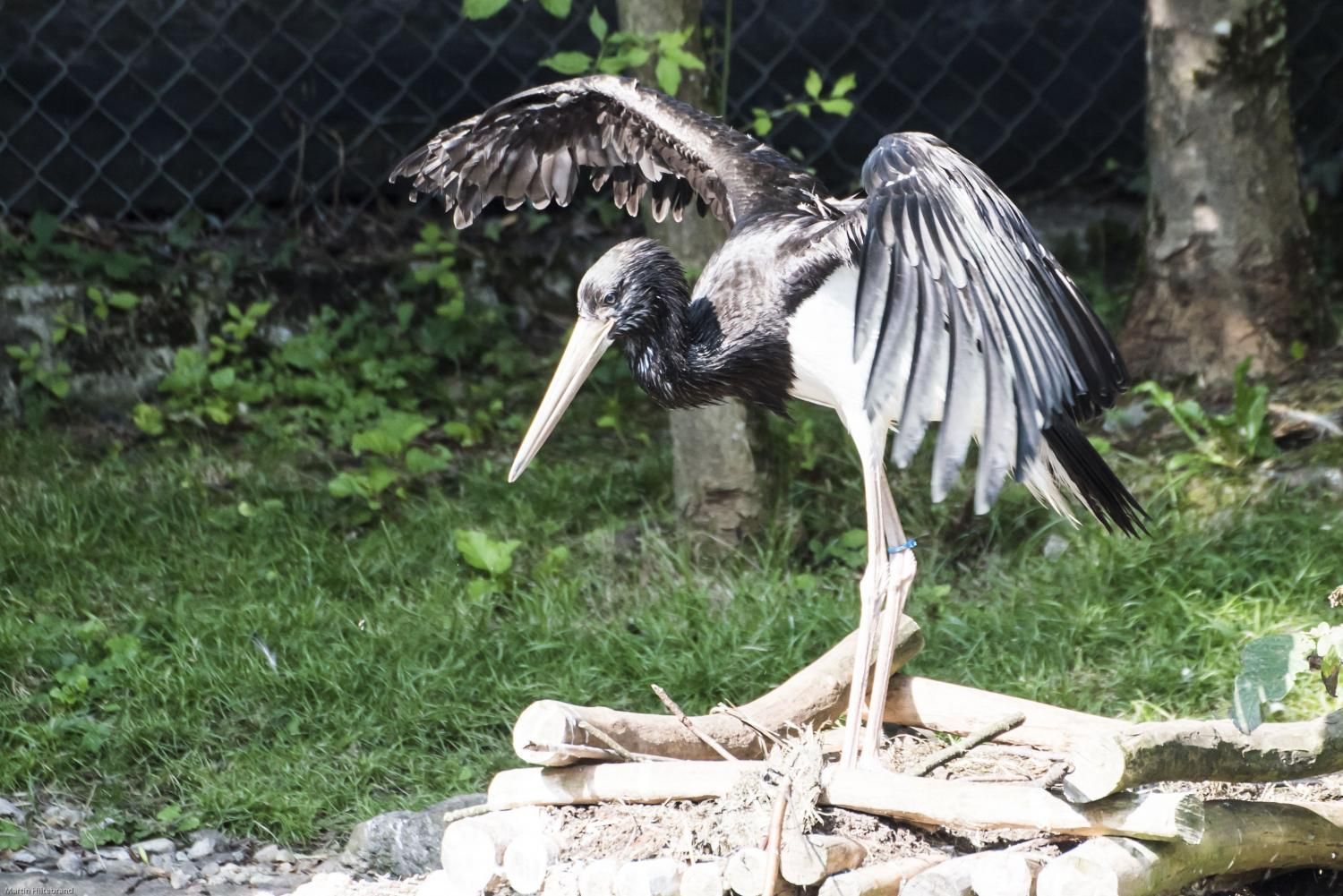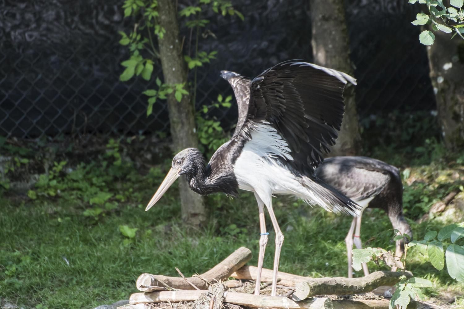 Der Schwarzstorch hat wie der Weissstorch, der mit ihm nahe verwandt ist, einen langen roten Schnabel und lange rote Beine. Im Gegensatz zu seinem Verwandten hat er sich aber nicht an uns Menschen angepasst. Er ist ziemlich scheu und lebt eher zurückgezogen, weit entfernt von Siedlungen. Am liebsten brütet er in unberührten, alten Wäldern, die aber mit der immer dichter werdenden Besiedlung zurückgegangen sind. Wichtig sind für ihn ausserdem Feuchtgebiete wie Bäche, Seen, Weiher, Sümpfe und Feuchtwiesen, wo er auch seine Nahrung findet. Sein tierischer Speiseplan ist vielfältig: von Fischen, Amphibien, Insekten bis hin zu Schnecken und Regenwürmern. In der Nähe solcher Feuchtgebiete baut er weit oben in einer Baumkrone sein Nest aus Ästen. Im Gegensatz zum Weissstorch klappert der Schwarzstorch selten. Die Jungvögel geben verschiedenartige und oft laute Töne von sich. Durch den Verlust ihrer Lebensräume sind die Schwarzstörche aus West- und Mitteleuropa, auch aus der Schweiz, anfangs des 20. Jahrhunderts weitgehend verschwunden. Allerdings haben sie sich dank verschiedenen Schutzprojekten in einigen west- und mitteleuropäischen Ländern wie Frankreich, Deutschland und Belgien wieder langsam zurückgemeldet. Am häufigsten brüten sie in Osteuropa, wobei sie – wie auch ihre weissen Vettern – weit nach Süden ziehen, um dort in kleineren Gruppen, im Familienverband, zu überwintern. Nur von wenigen Störchen in Spanien und Bulgarien weiss man, dass sie nicht ziehen, sondern im Brutgebiet verbleiben. Im Tierpark Goldau haben die Schwarzstörche im Frühling 2000 zum ersten Mal gebrütet. Seither haben wir fast jeden Frühling erfolgreiche Bruten. Zu finden sind diese eleganten Tiere in einem Gehege auf dem Rundgang um den Blauweiher.