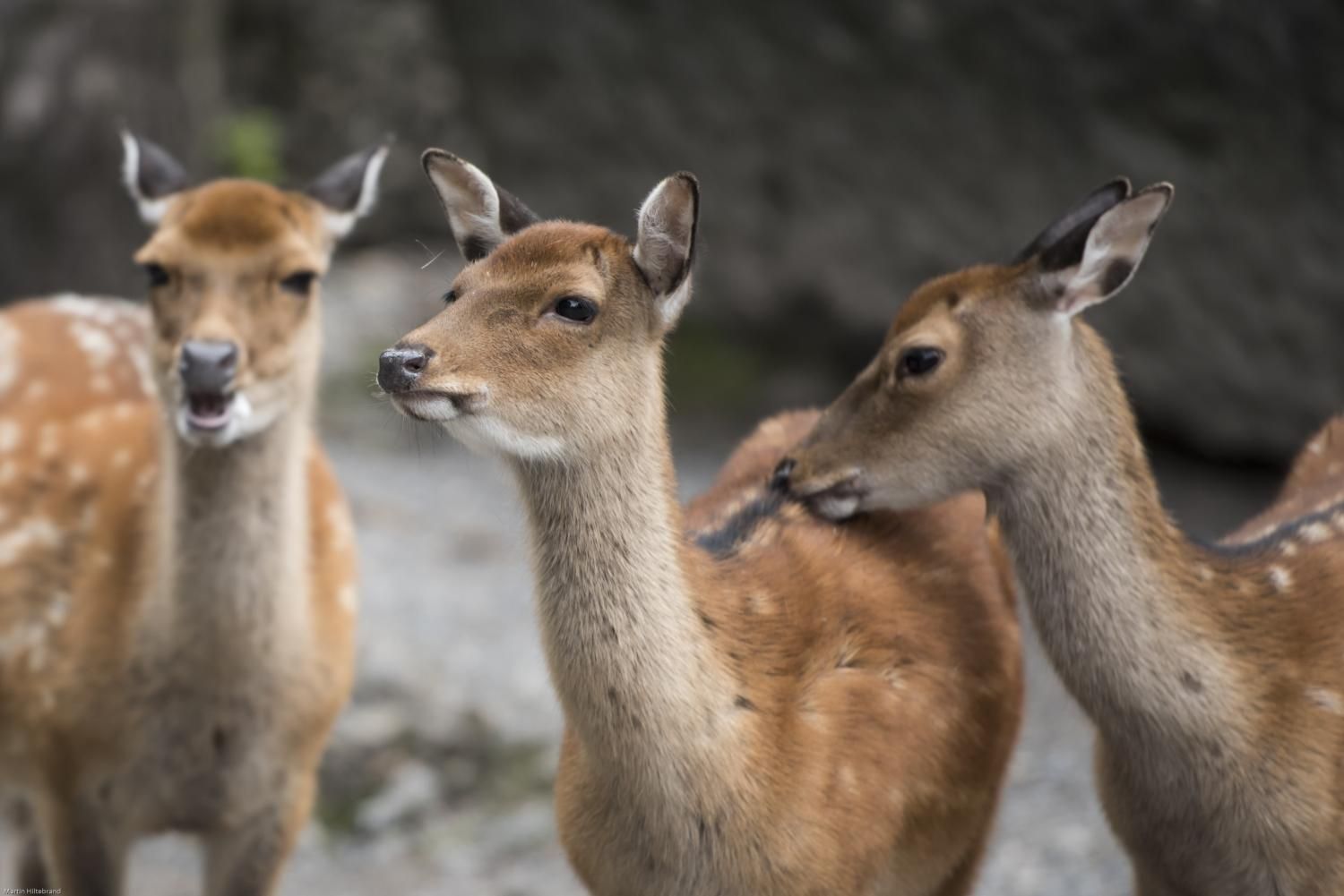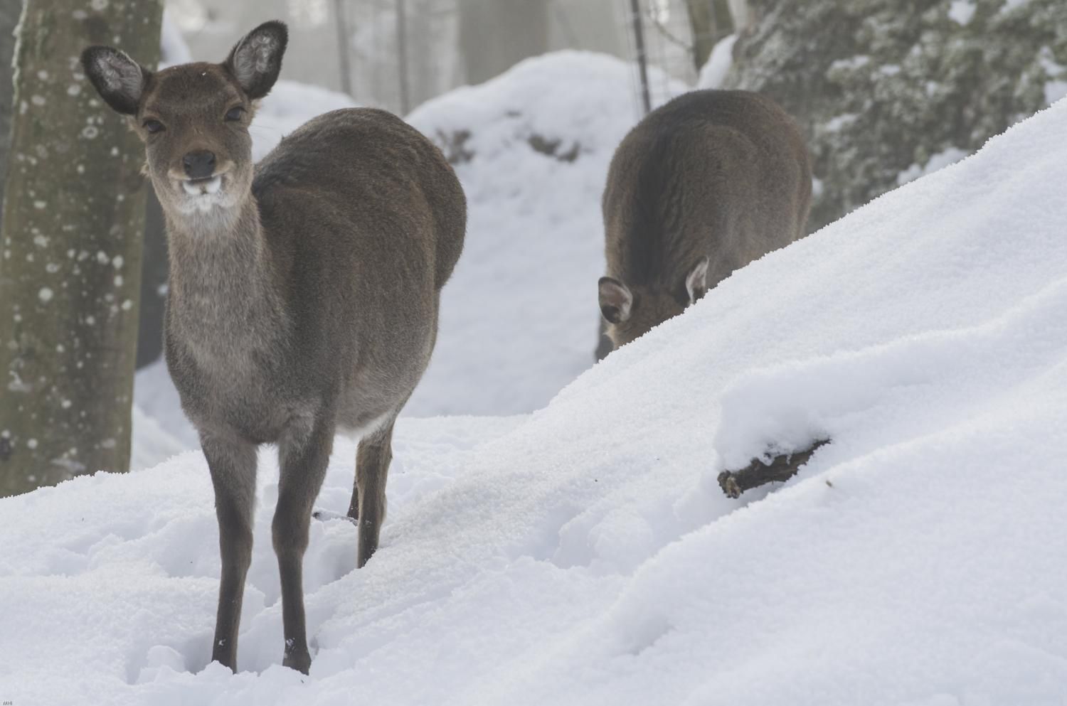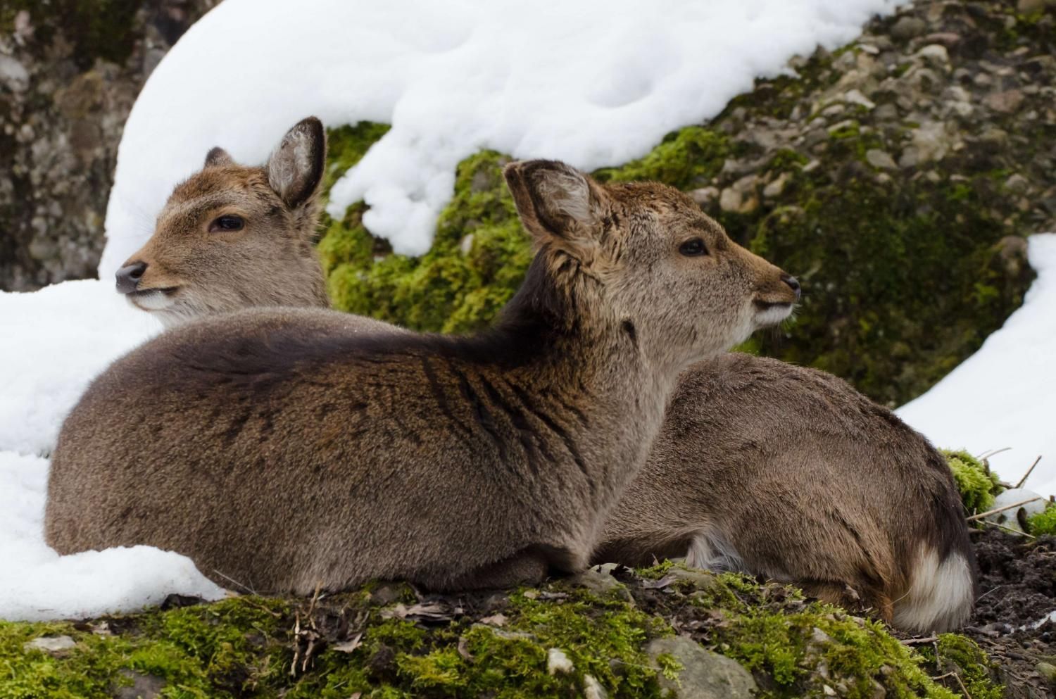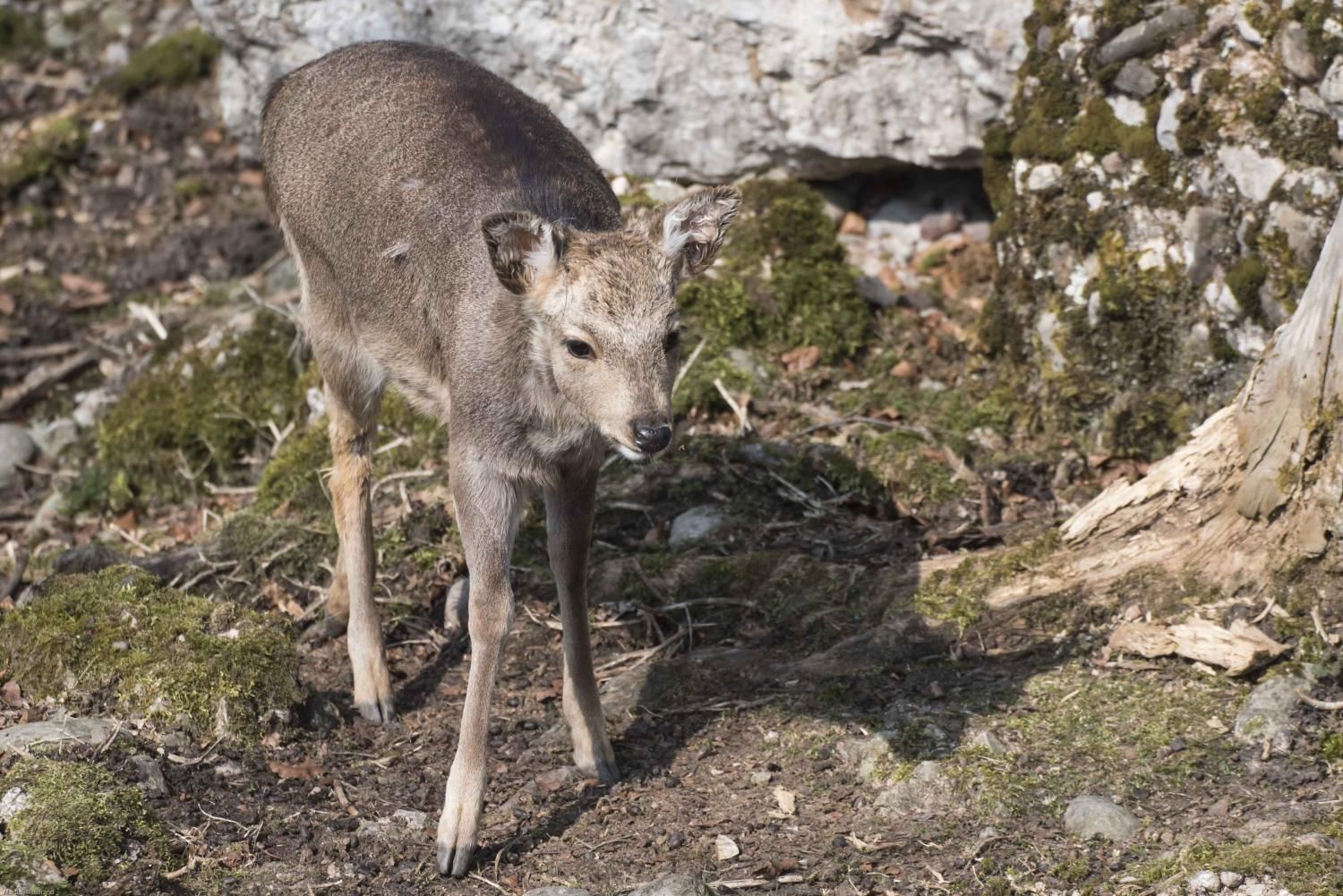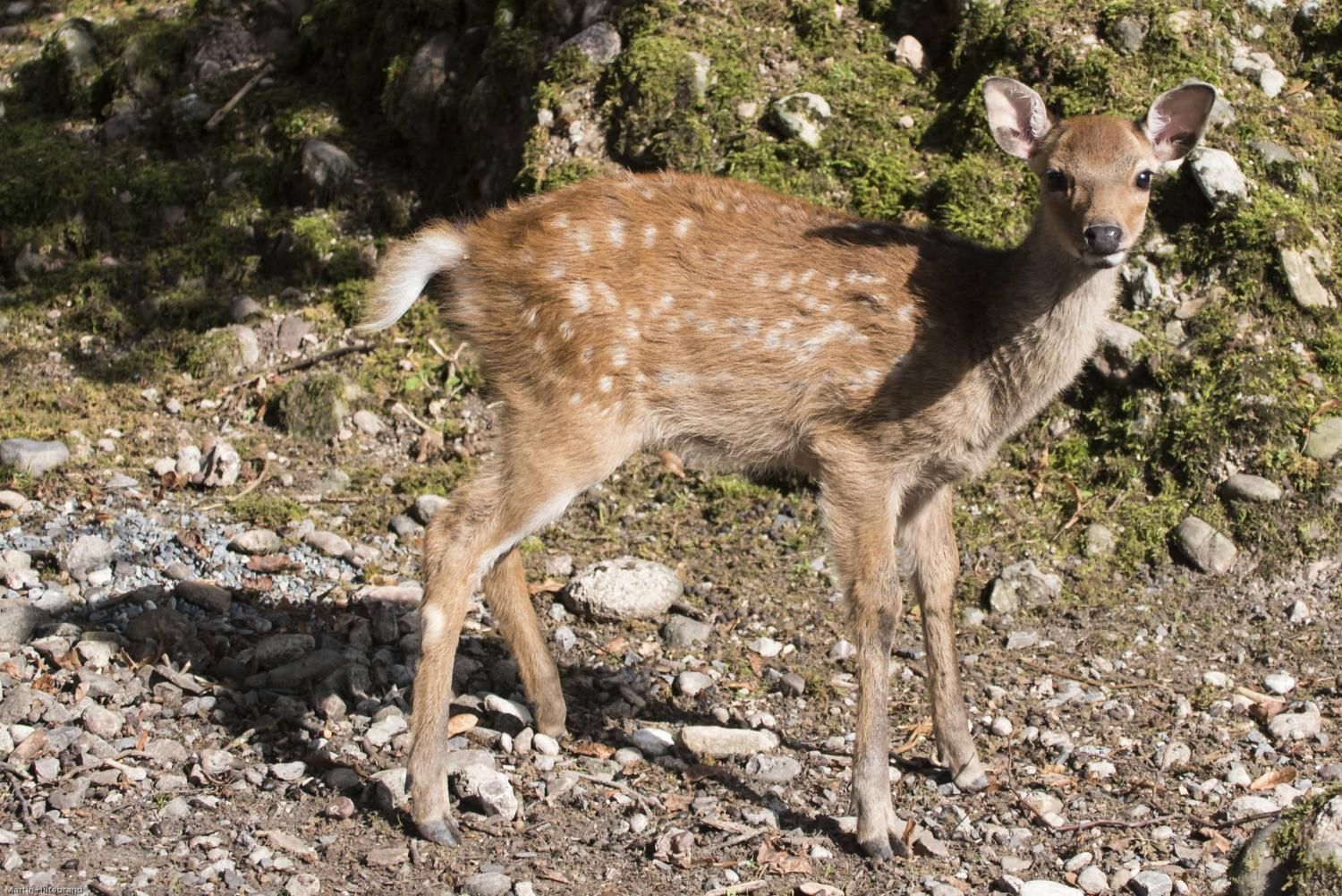 Der Sikahirsch ist ursprünglich in Südostasien und Japan beheimatet, von wo er nach Europa eingeführt und fast weltweit verbreitet wurde. In West- und Mitteleuropa ist er in freier Wildbahn wie auch in Wildgehegen anzutreffen. 1941 drangen erstmals Tiere von Deutschland her in die Schweizer Wälder vor. Sikahirsche sind mittelgrosse Hirsche, die eine Schulterhöhe von knapp 100cm und ein Gewicht von 20-60kg erreichen können. Im Sommer hat der Sikahirsch ein kastanienbraunes Fell mit weissen Flecken und einem dunklen Rückenstreifen bis zur Körpermitte. Der Schwanz (Wedel) ist weiss – anders als beim Damhirsch, der in der Mitte des Wedels einen deutlichen schwarzen Streifen besitzt. Die Winterfärbung des Fells ist dunkler und die Flecken sind schwächer. Den Sommer verbringt der Sikahirsch meist in nach Geschlechtern getrennten Rudeln. Ihm behagen Mischwälder im Flach- und Hügelland, wo er reichlich Nahrung findet. Gelegentlich richtet er Forstschäden durch Rindenschälung an Bäumen an. Das Stangengeweih wird im März/April abgeworfen, kurz danach fängt bis zur nächsten Brunft ein neues an zu wachsen. In der Fachsprache sagt man: Das Geweih wird „gefegt“. Die Brunft der Sikahirsche setzt in der zweiten Oktoberhälfte ein und verläuft weniger kämpferisch als beim Rothirsch. Der Brunftruf ist ein durchdringendes, zischendes Pfeifen. Nach 7-8 Monaten wird im Mai in der Regel ein Kitz (Jungtier) geboren, welches, ähnlich wie das bekannte Rehkitz, getupft ist. Im Tierpark Goldau können die Sikahirsche in der Freilaufzone beobachtet werden. Von dem ebenfalls dort anzutreffenden Damhirsch können die Sikahirsche durch ihre zierlichere Gestalt und dem weissen Wedel unterschieden werden.
