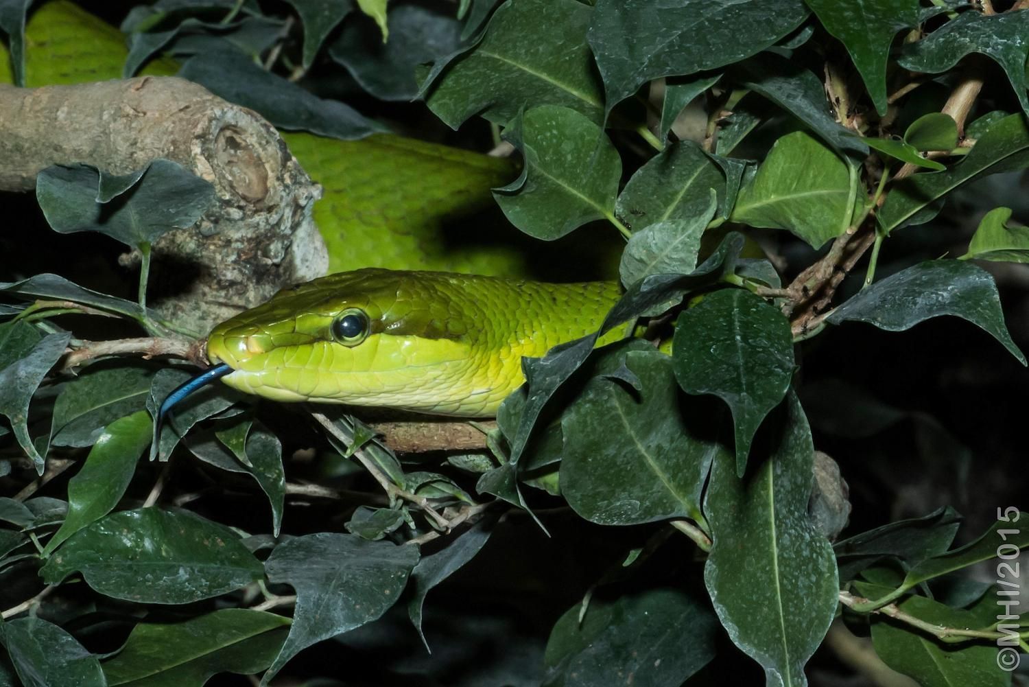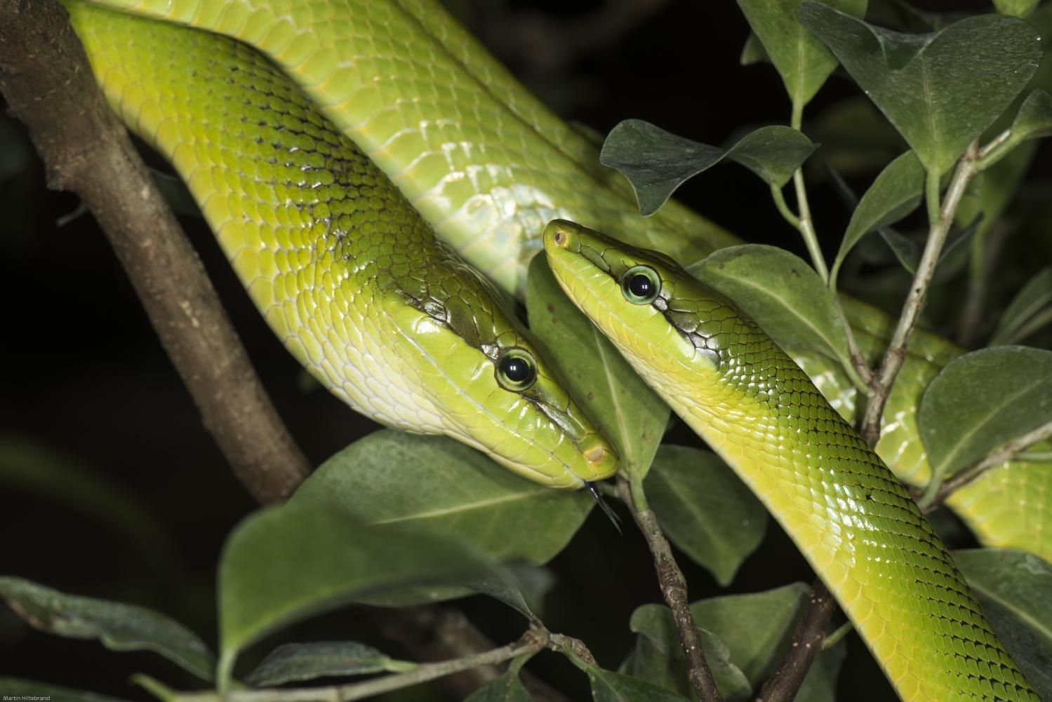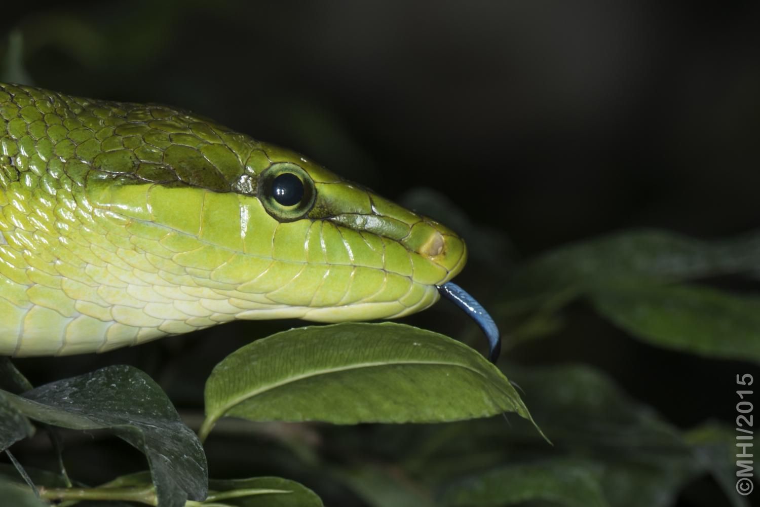 Nattern sind die artenreichste Familie der Schlangen und kommen auf der ganzen Welt vor. Die ungiftige Spitzkopfnatter ist dank ihrer grünen Körperfarbe hervorragend an das Leben in den Blätterregionen der Bäume angepasst. Diese Form der Anpassung an die Umgebung, mit dem Ziel sich unsichtbar zu machen, nennt man in der Fachsprache Mimese. Kommt sie dennoch einmal in eine gefährliche Situation, hat sie eine wirksame Verhaltensweise entwickelt: Sie verharrt erst ruhig mit ausgestrecktem Vorderkörper, bläht dann den Hals auf und beginnt als weiteres Zeichen der Erregung mit dem Schwanz zu zittern. Wie alle Schlangen kann auch die Spitzkopfnatter teils monatelang ohne Nahrung auskommen.