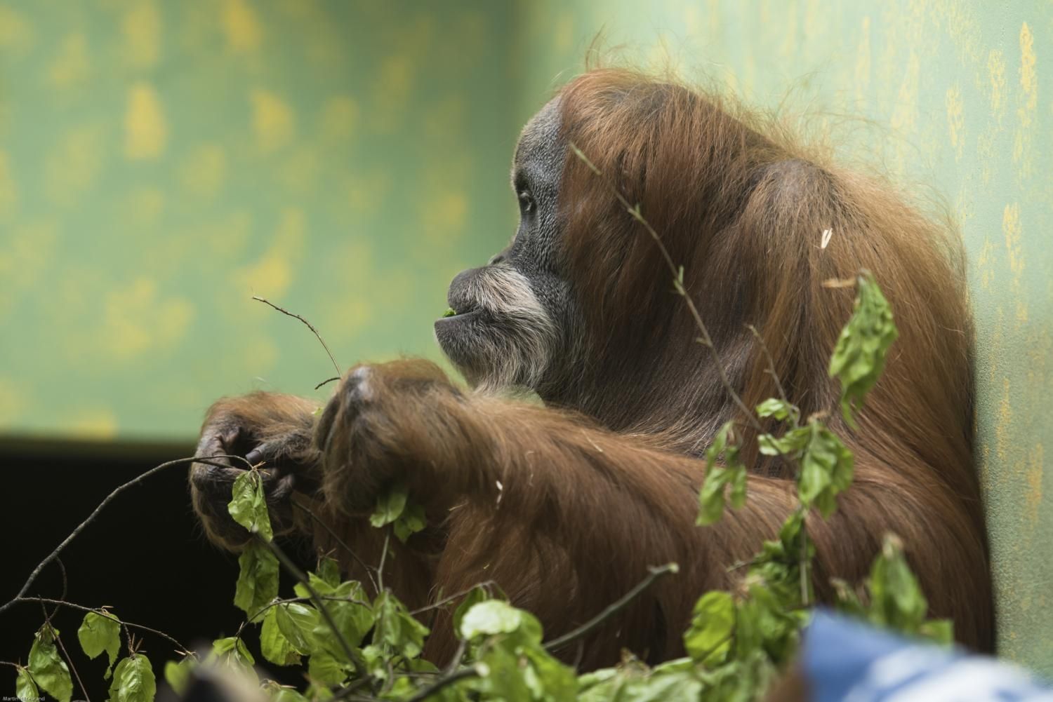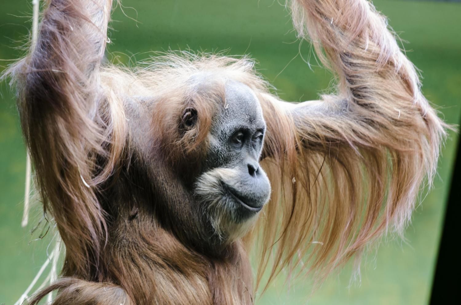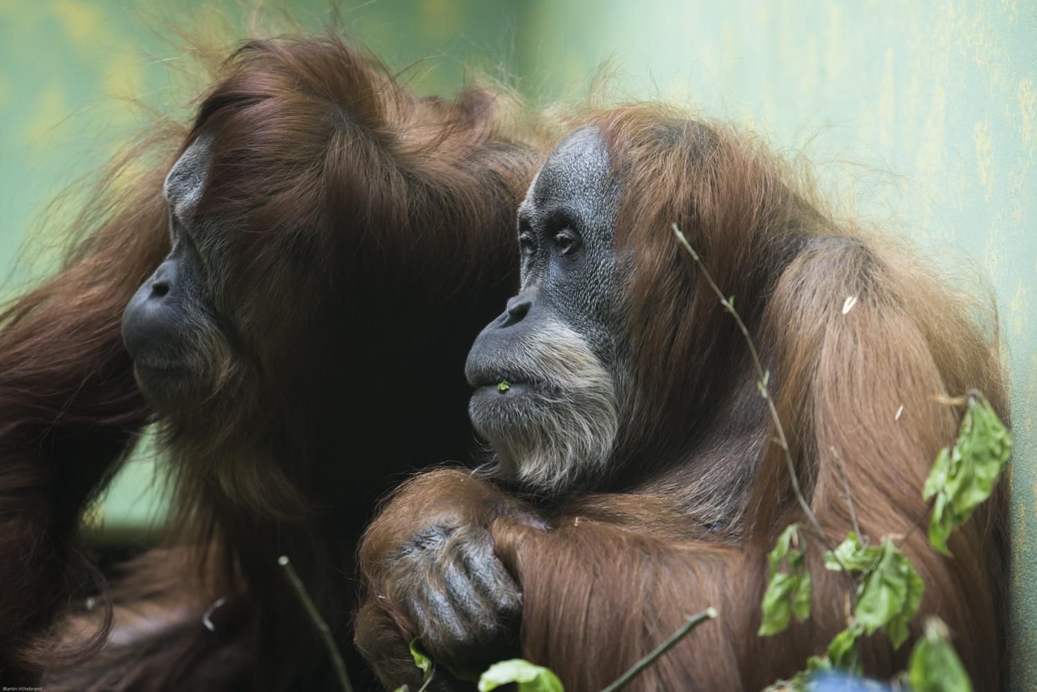 Der Orang-Utan (indonesisch für «Waldmensch») ist der einzige Baumbewohner unter den Menschenaffen und das grösste Säugetier, das auf Bäumen lebt. Er hält sich am liebsten in den mittleren und unteren Baumstockwerken auf und kommt vorwärts, indem er von Ast zu Ast hangelt. Diese Fortbewegungsart erfordert bei seinem hohen Körpergewicht einen grossen Kraftaufwand, darum legt der Orang-Utan am Tag nur kurze Strecken zurück. Das Haarkleid der Männchen kann 150 cm lang werden, es ist - nebst den Backenwulsten und dem Kehlsack - ein gutes Unterscheidungsmerkmal zum Weibchen. Der Orang-Utan lebt ungesellig und leise, darum sieht man ihn im Freiland kaum.