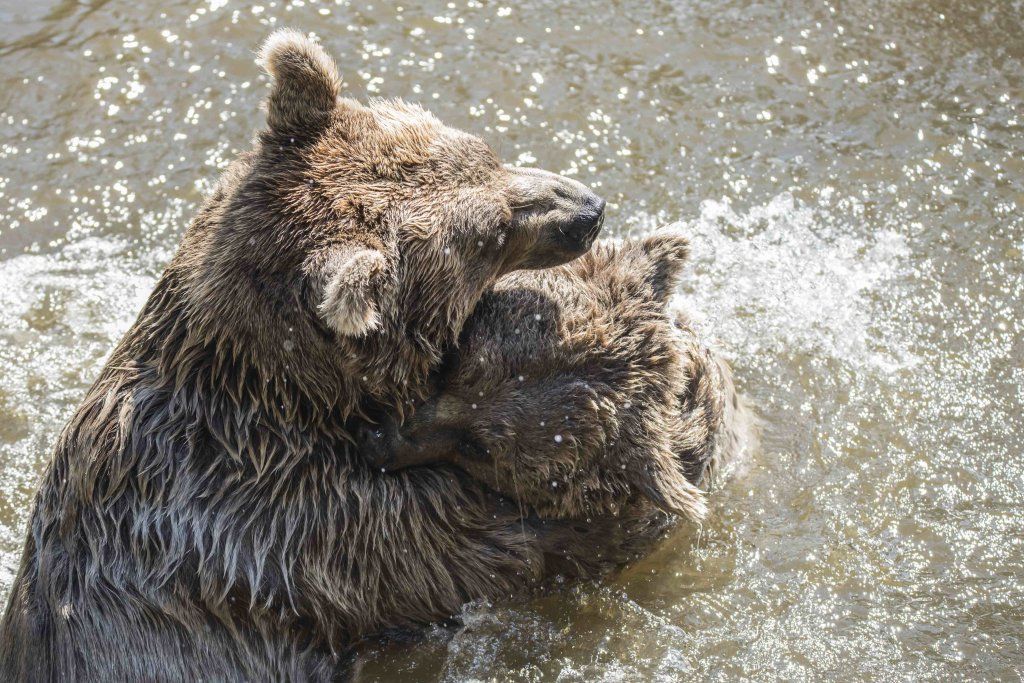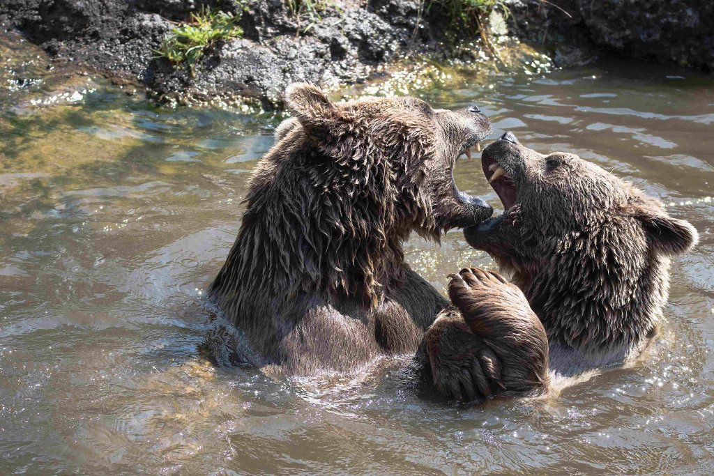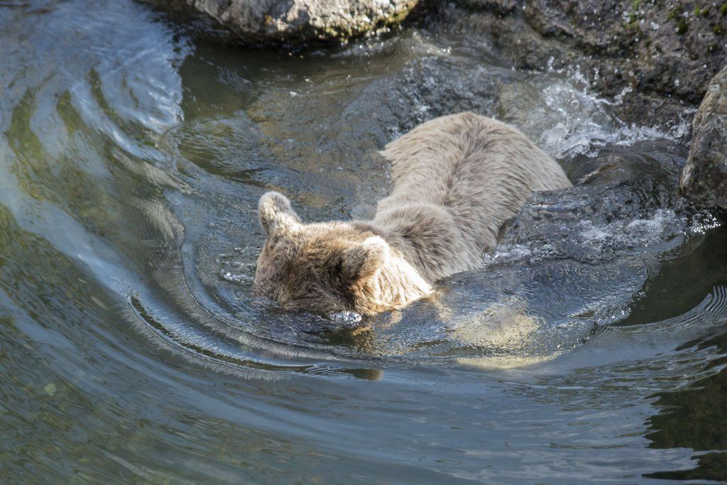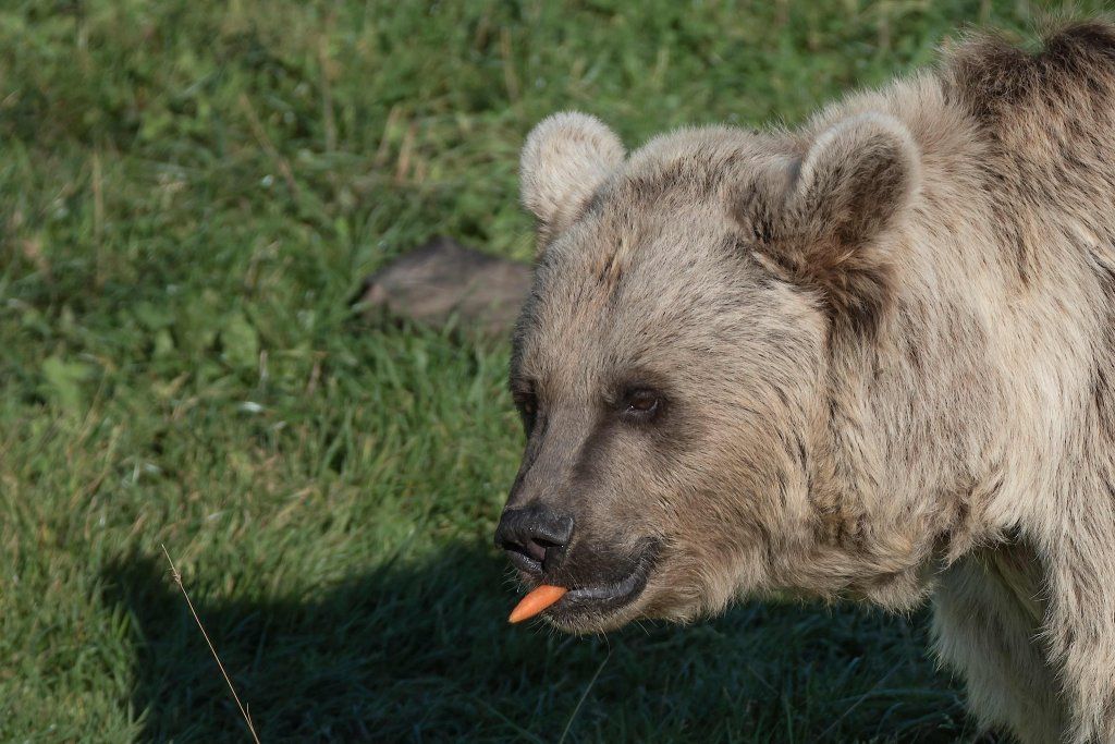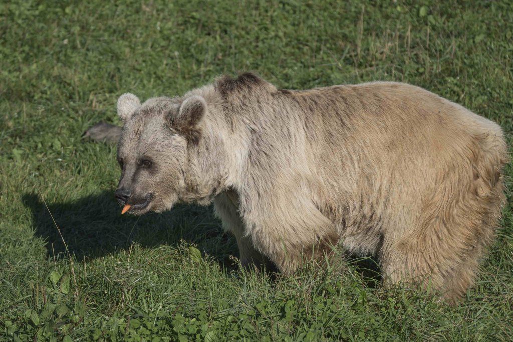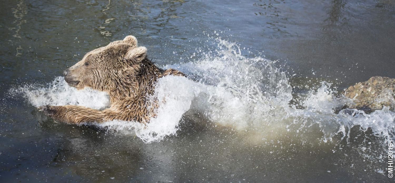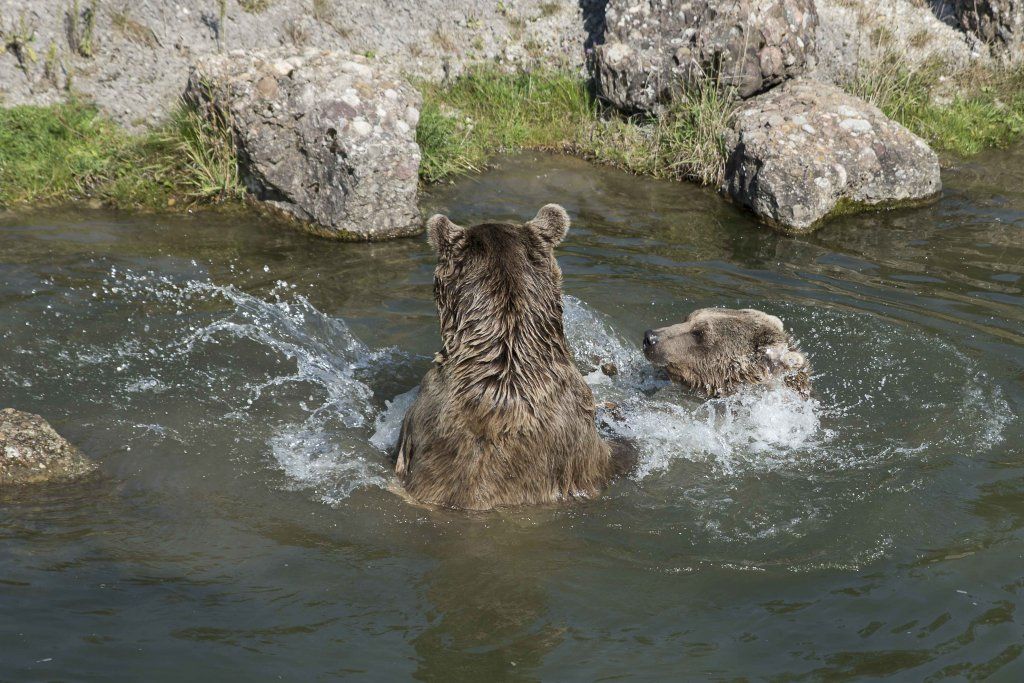 Der Braunbär gilt (nebst dem Eisbär) als das grösste lebende Landraubtier. Braunbären sind jedoch typische Allesfresser mit einem hohen pflanzlichen Anteil: Von Gräsern über Früchte, Honig bis hin zu Nüssen und Aas verschmähen sie kaum etwas. Lebende Tiere hingegen erbeutet „Meister Petz“ nicht so oft, da er eher ein ungeschickter Jäger ist. Je nach Region steht auch Fisch auf seinem Speiseplan. Der Natur- und Tierpark Goldau hält Syrische Braunbären. Es handelt sich dabei um eine Unterart der Braunbären, nahe verwandt mit der ursprünglich in der Schweiz heimischen Braunbären-Unterart „Europäischer Braunbär“. Syrische Braunbären leben ursprünglich im Nahen Osten und sind in freier Natur stark vor dem Aussterben bedroht. Sie sind in der Regel etwas kleiner und heller als der europäische Braunbär. Braunbären sind in Europa selten! Grössere Bestände von Braunbären finden wir heute nur noch in Skandinavien und in Südosteuropa. Zudem stagnieren die meisten Bestände oder nehmen gar ab. Die der Schweiz am nächsten gelegenen Bärenpopulationen befinden sich in Österreich und im nahen italienischen Trentino. Das letztere Gebiet gehört zu einem der wenigen Orte, wo die Bären dank einem Wiederansiedlungsprojekt wieder zunehmen. Dies hat direkte Auswirkung auf die Schweiz: der damals letzte Braunbär wurde 1904 in Graubünden geschossen. Über 100 Jahre blieb die Schweiz bärenfrei, bis im Sommer 2005 ein wanderfreudiges Jungtier vom Trentino über die Grenze ins Engadin kam und kurzfristig für Aufsehen sorgte und wieder abwanderte. 2007 fanden wieder zwei junge Bärenmännchen den Weg von Italien in die Schweiz und es ist nur eine Frage der Zeit, bis die nächsten Bären zu Besuch kommen. Ein zukünftiges Zusammenleben von Menschen und Bären in den Gebieten der Schweiz ist möglich – sofern wir Menschen Toleranz für dieses eindrückliche Wildtier aufbringen und über ein korrektes Verhalten gegenüber den Bären aufgeklärt sind. Eine Möglichkeit sich zu informieren finden Sie in der Ausstellung rund um die Gemeinschaftsanlage für Bär und Wolf im Natur- und Tierpark Goldau.