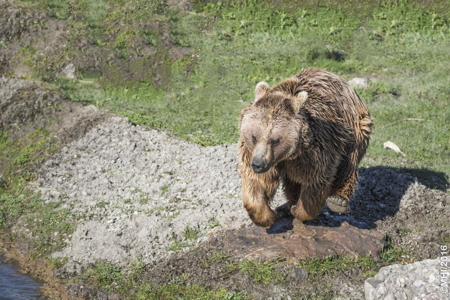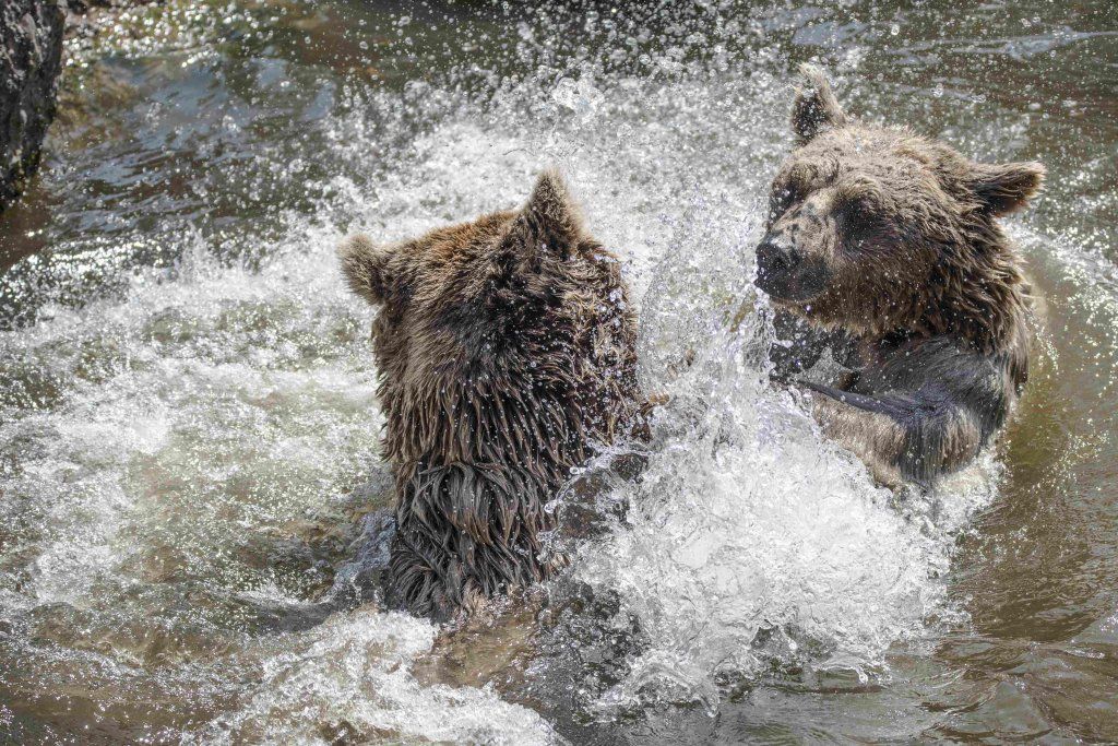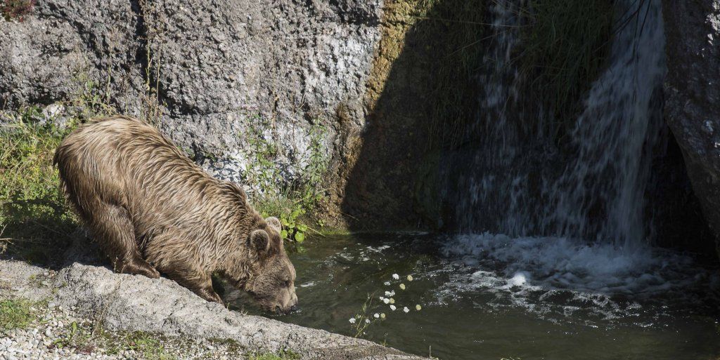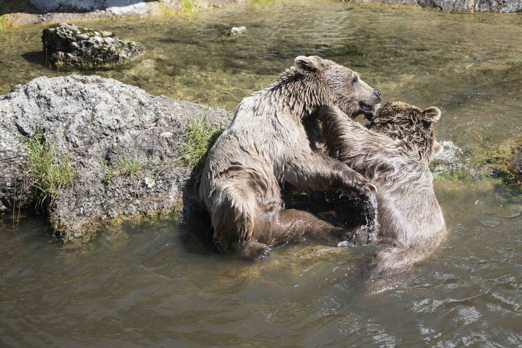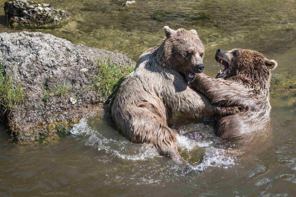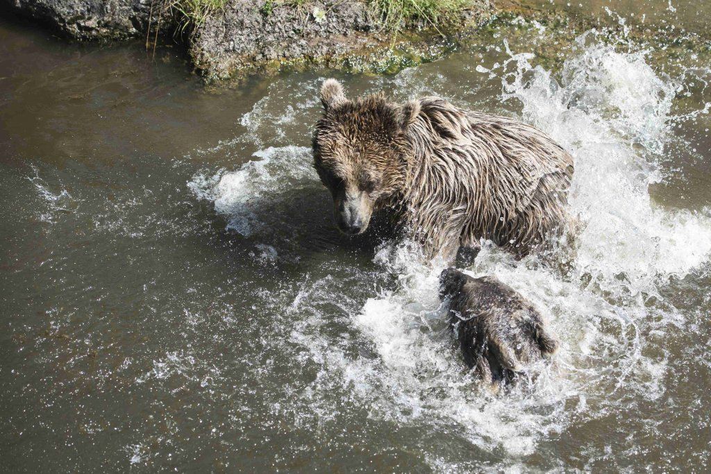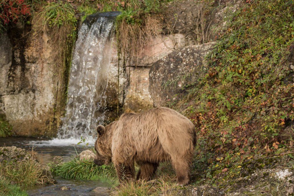 Der Braunbär gilt (nebst dem Eisbär) als das grösste lebende Landraubtier. Braunbären sind jedoch typische Allesfresser mit einem hohen pflanzlichen Anteil: Von Gräsern über Früchte, Honig bis hin zu Nüssen und Aas verschmähen sie kaum etwas. Lebende Tiere hingegen erbeutet „Meister Petz“ nicht so oft, da er eher ein ungeschickter Jäger ist. Je nach Region steht auch Fisch auf seinem Speiseplan. Der Natur- und Tierpark Goldau hält Syrische Braunbären. Es handelt sich dabei um eine Unterart der Braunbären, nahe verwandt mit der ursprünglich in der Schweiz heimischen Braunbären-Unterart „Europäischer Braunbär“. Syrische Braunbären leben ursprünglich im Nahen Osten und sind in freier Natur stark vor dem Aussterben bedroht. Sie sind in der Regel etwas kleiner und heller als der europäische Braunbär. Braunbären sind in Europa selten! Grössere Bestände von Braunbären finden wir heute nur noch in Skandinavien und in Südosteuropa. Zudem stagnieren die meisten Bestände oder nehmen gar ab. Die der Schweiz am nächsten gelegenen Bärenpopulationen befinden sich in Österreich und im nahen italienischen Trentino. Das letztere Gebiet gehört zu einem der wenigen Orte, wo die Bären dank einem Wiederansiedlungsprojekt wieder zunehmen. Dies hat direkte Auswirkung auf die Schweiz: der damals letzte Braunbär wurde 1904 in Graubünden geschossen. Über 100 Jahre blieb die Schweiz bärenfrei, bis im Sommer 2005 ein wanderfreudiges Jungtier vom Trentino über die Grenze ins Engadin kam und kurzfristig für Aufsehen sorgte und wieder abwanderte. 2007 fanden wieder zwei junge Bärenmännchen den Weg von Italien in die Schweiz und es ist nur eine Frage der Zeit, bis die nächsten Bären zu Besuch kommen. Ein zukünftiges Zusammenleben von Menschen und Bären in den Gebieten der Schweiz ist möglich – sofern wir Menschen Toleranz für dieses eindrückliche Wildtier aufbringen und über ein korrektes Verhalten gegenüber den Bären aufgeklärt sind. Eine Möglichkeit sich zu informieren finden Sie in der Ausstellung rund um die Gemeinschaftsanlage für Bär und Wolf im Natur- und Tierpark Goldau.
