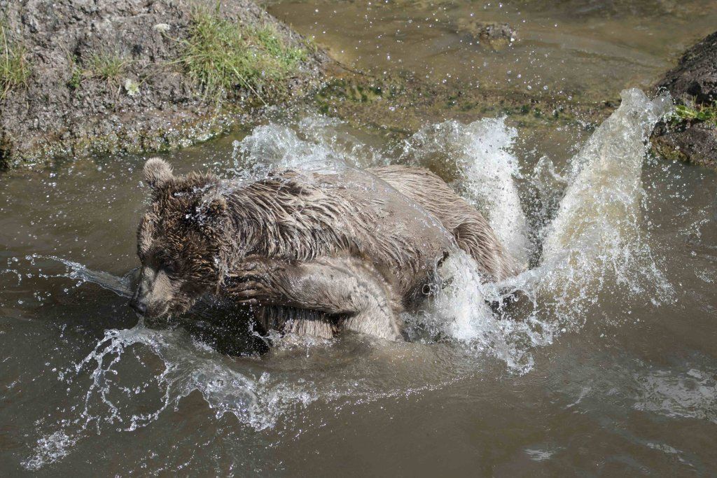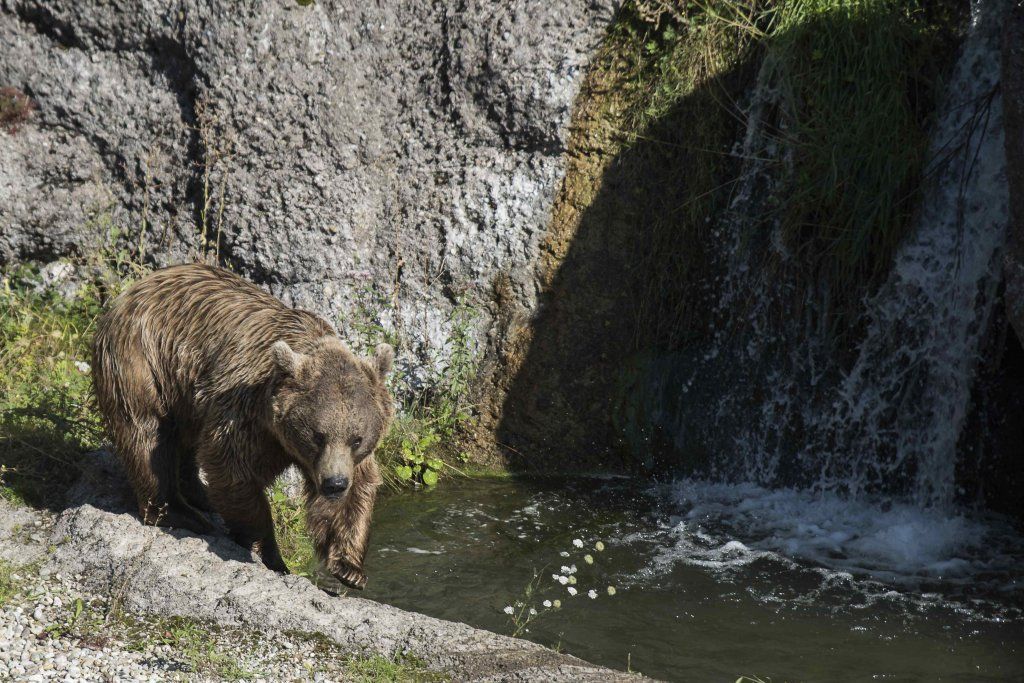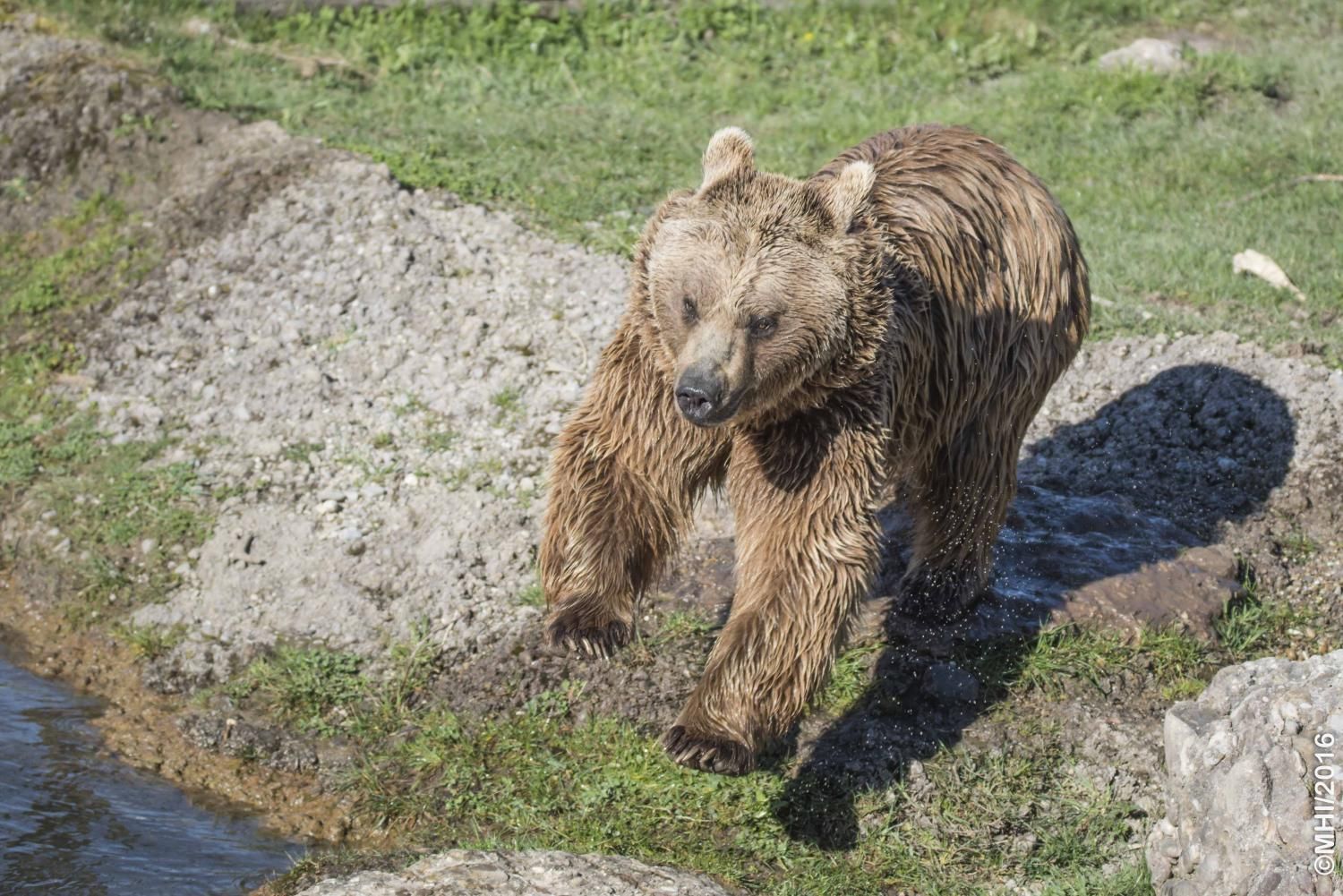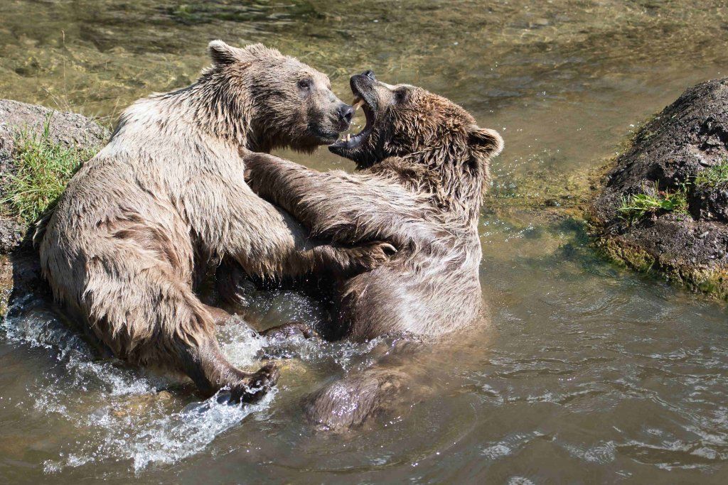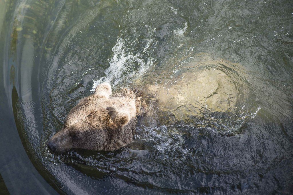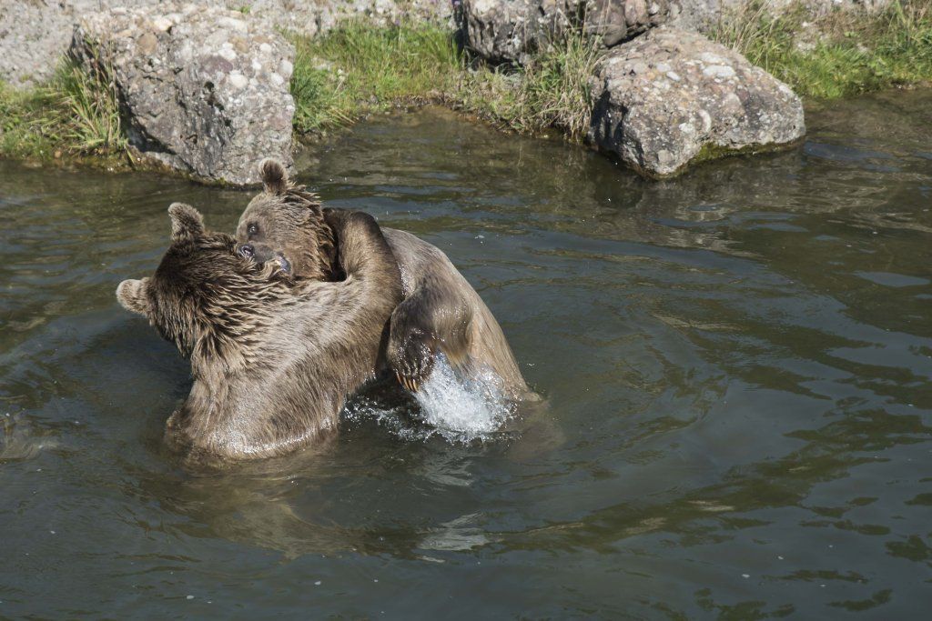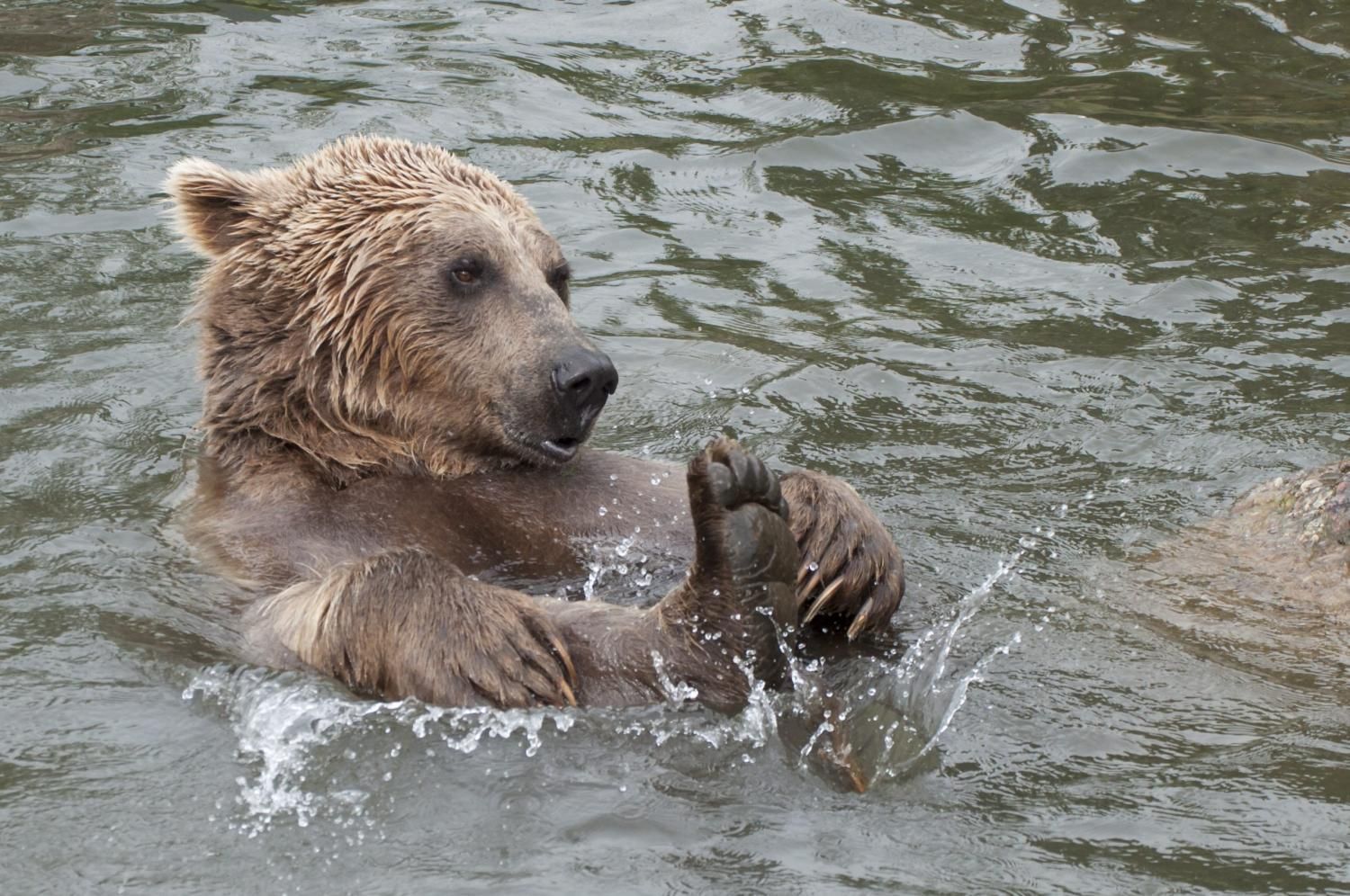 Der Braunbär gilt (nebst dem Eisbär) als das grösste lebende Landraubtier. Braunbären sind jedoch typische Allesfresser mit einem hohen pflanzlichen Anteil: Von Gräsern über Früchte, Honig bis hin zu Nüssen und Aas verschmähen sie kaum etwas. Lebende Tiere hingegen erbeutet „Meister Petz“ nicht so oft, da er eher ein ungeschickter Jäger ist. Je nach Region steht auch Fisch auf seinem Speiseplan. Der Natur- und Tierpark Goldau hält Syrische Braunbären. Es handelt sich dabei um eine Unterart der Braunbären, nahe verwandt mit der ursprünglich in der Schweiz heimischen Braunbären-Unterart „Europäischer Braunbär“. Syrische Braunbären leben ursprünglich im Nahen Osten und sind in freier Natur stark vor dem Aussterben bedroht. Sie sind in der Regel etwas kleiner und heller als der europäische Braunbär. Braunbären sind in Europa selten! Grössere Bestände von Braunbären finden wir heute nur noch in Skandinavien und in Südosteuropa. Zudem stagnieren die meisten Bestände oder nehmen gar ab. Die der Schweiz am nächsten gelegenen Bärenpopulationen befinden sich in Österreich und im nahen italienischen Trentino. Das letztere Gebiet gehört zu einem der wenigen Orte, wo die Bären dank einem Wiederansiedlungsprojekt wieder zunehmen. Dies hat direkte Auswirkung auf die Schweiz: der damals letzte Braunbär wurde 1904 in Graubünden geschossen. Über 100 Jahre blieb die Schweiz bärenfrei, bis im Sommer 2005 ein wanderfreudiges Jungtier vom Trentino über die Grenze ins Engadin kam und kurzfristig für Aufsehen sorgte und wieder abwanderte. 2007 fanden wieder zwei junge Bärenmännchen den Weg von Italien in die Schweiz und es ist nur eine Frage der Zeit, bis die nächsten Bären zu Besuch kommen. Ein zukünftiges Zusammenleben von Menschen und Bären in den Gebieten der Schweiz ist möglich – sofern wir Menschen Toleranz für dieses eindrückliche Wildtier aufbringen und über ein korrektes Verhalten gegenüber den Bären aufgeklärt sind. Eine Möglichkeit sich zu informieren finden Sie in der Ausstellung rund um die Gemeinschaftsanlage für Bär und Wolf im Natur- und Tierpark Goldau.
