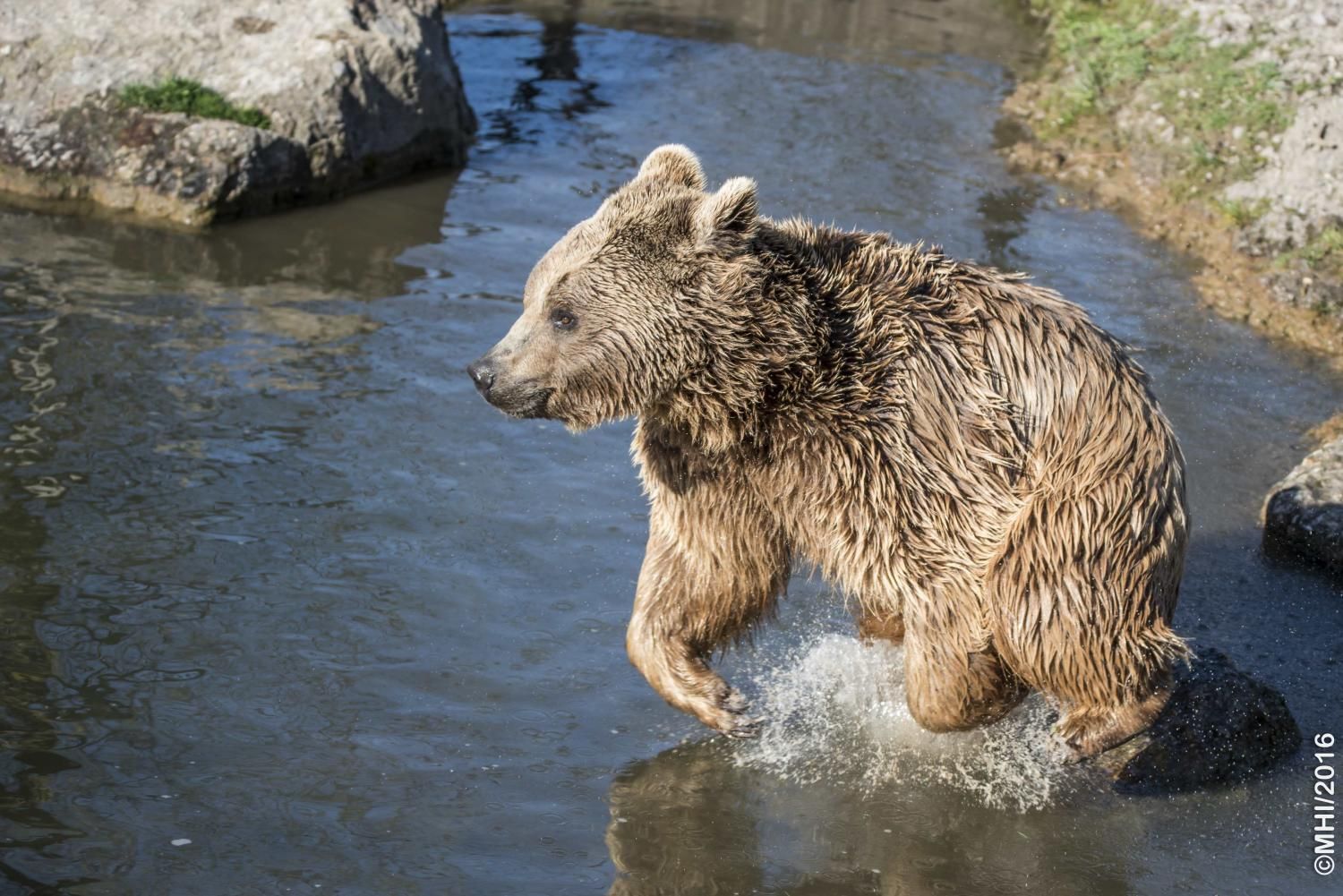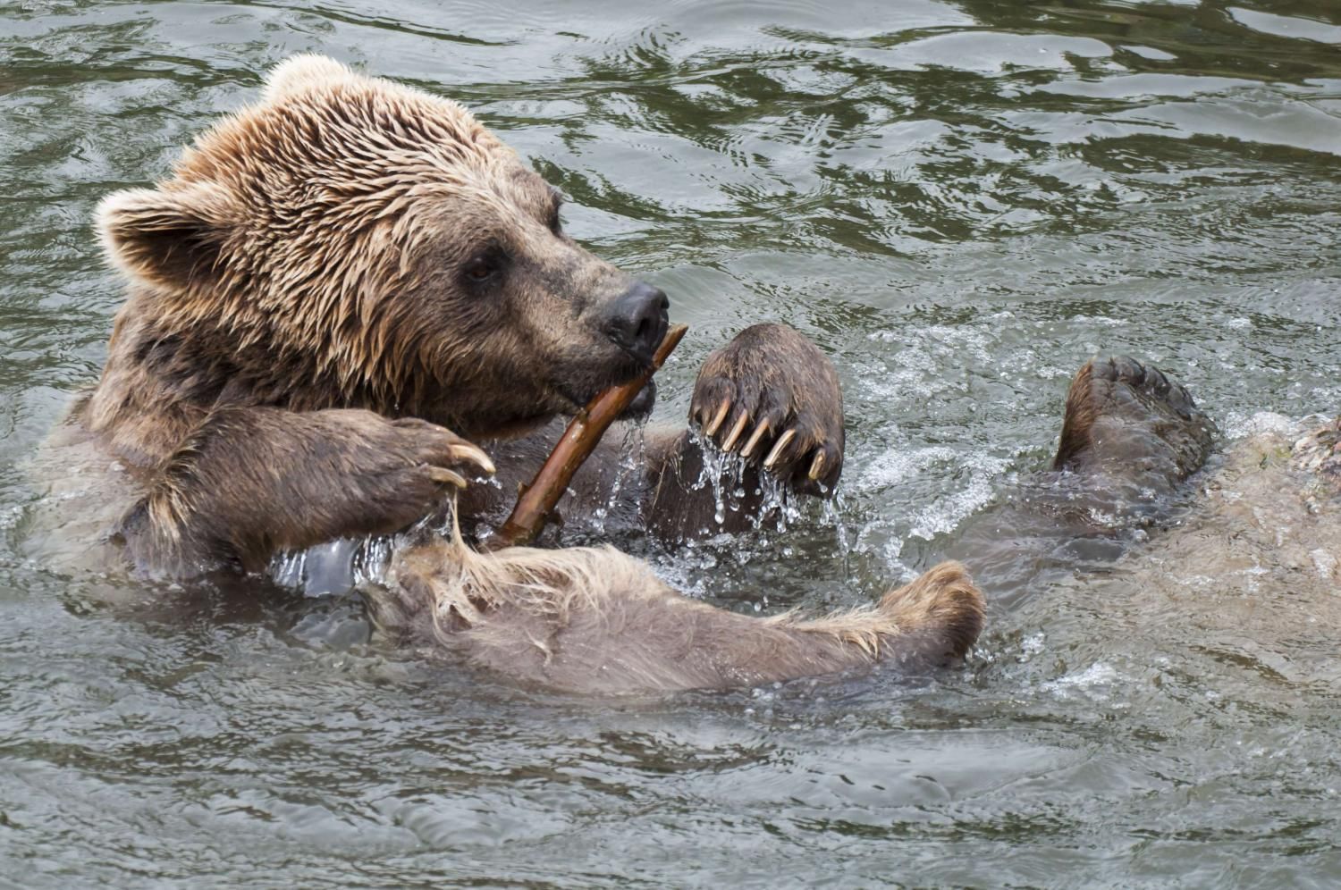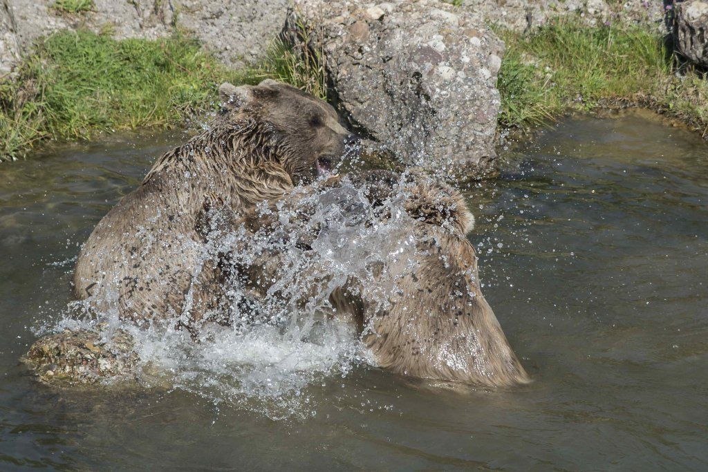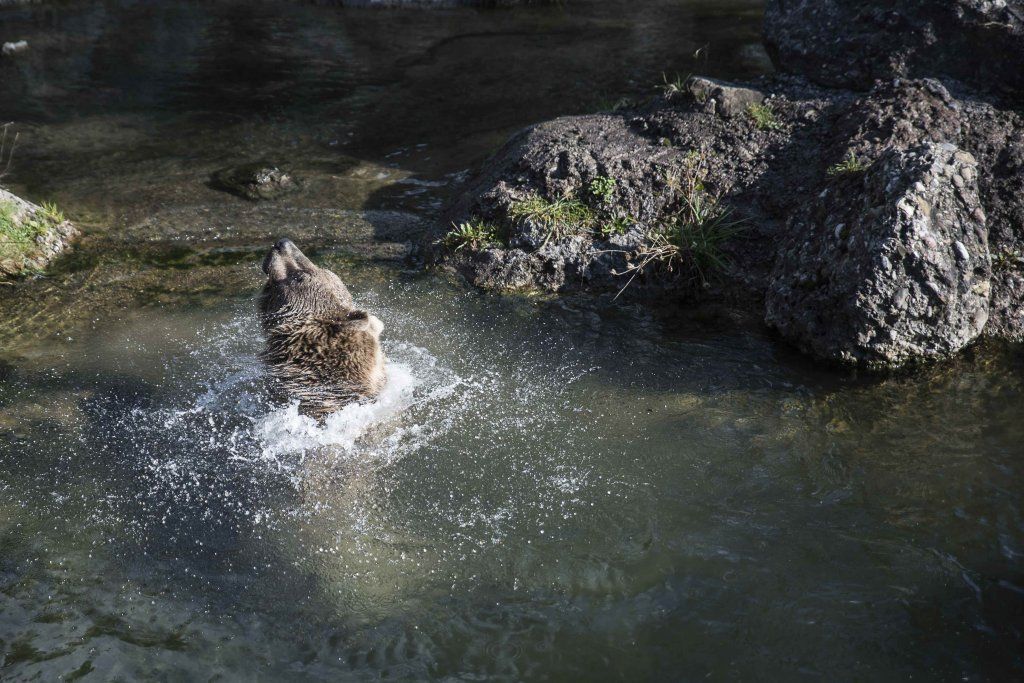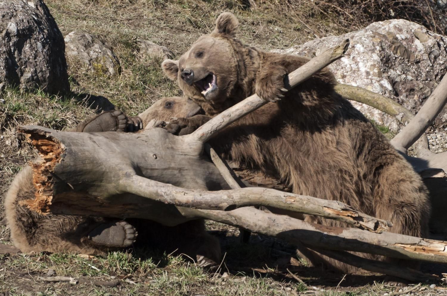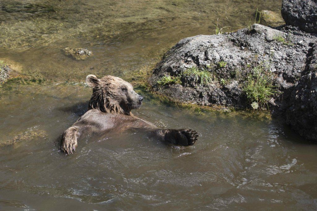 Der Braunbär gilt (nebst dem Eisbär) als das grösste lebende Landraubtier. Braunbären sind jedoch typische Allesfresser mit einem hohen pflanzlichen Anteil: Von Gräsern über Früchte, Honig bis hin zu Nüssen und Aas verschmähen sie kaum etwas. Lebende Tiere hingegen erbeutet „Meister Petz“ nicht so oft, da er eher ein ungeschickter Jäger ist. Je nach Region steht auch Fisch auf seinem Speiseplan. Der Natur- und Tierpark Goldau hält Syrische Braunbären. Es handelt sich dabei um eine Unterart der Braunbären, nahe verwandt mit der ursprünglich in der Schweiz heimischen Braunbären-Unterart „Europäischer Braunbär“. Syrische Braunbären leben ursprünglich im Nahen Osten und sind in freier Natur stark vor dem Aussterben bedroht. Sie sind in der Regel etwas kleiner und heller als der europäische Braunbär. Braunbären sind in Europa selten! Grössere Bestände von Braunbären finden wir heute nur noch in Skandinavien und in Südosteuropa. Zudem stagnieren die meisten Bestände oder nehmen gar ab. Die der Schweiz am nächsten gelegenen Bärenpopulationen befinden sich in Österreich und im nahen italienischen Trentino. Das letztere Gebiet gehört zu einem der wenigen Orte, wo die Bären dank einem Wiederansiedlungsprojekt wieder zunehmen. Dies hat direkte Auswirkung auf die Schweiz: der damals letzte Braunbär wurde 1904 in Graubünden geschossen. Über 100 Jahre blieb die Schweiz bärenfrei, bis im Sommer 2005 ein wanderfreudiges Jungtier vom Trentino über die Grenze ins Engadin kam und kurzfristig für Aufsehen sorgte und wieder abwanderte. 2007 fanden wieder zwei junge Bärenmännchen den Weg von Italien in die Schweiz und es ist nur eine Frage der Zeit, bis die nächsten Bären zu Besuch kommen. Ein zukünftiges Zusammenleben von Menschen und Bären in den Gebieten der Schweiz ist möglich – sofern wir Menschen Toleranz für dieses eindrückliche Wildtier aufbringen und über ein korrektes Verhalten gegenüber den Bären aufgeklärt sind. Eine Möglichkeit sich zu informieren finden Sie in der Ausstellung rund um die Gemeinschaftsanlage für Bär und Wolf im Natur- und Tierpark Goldau.