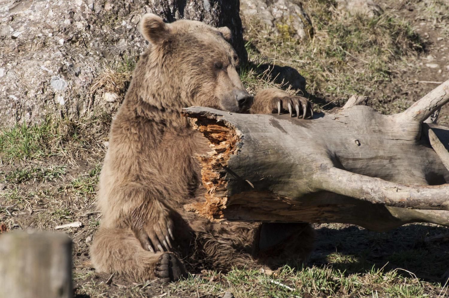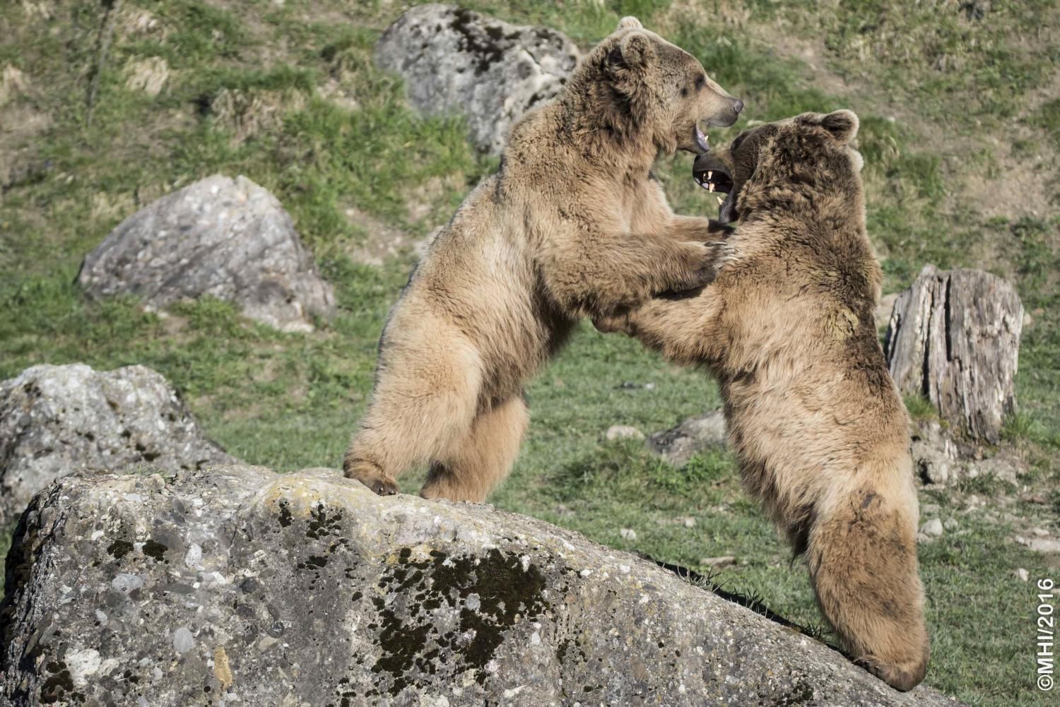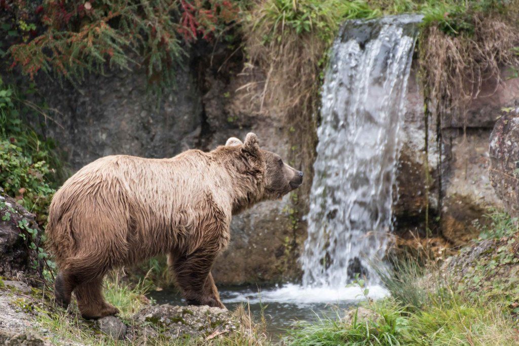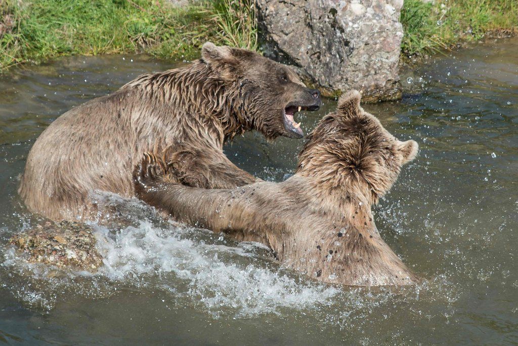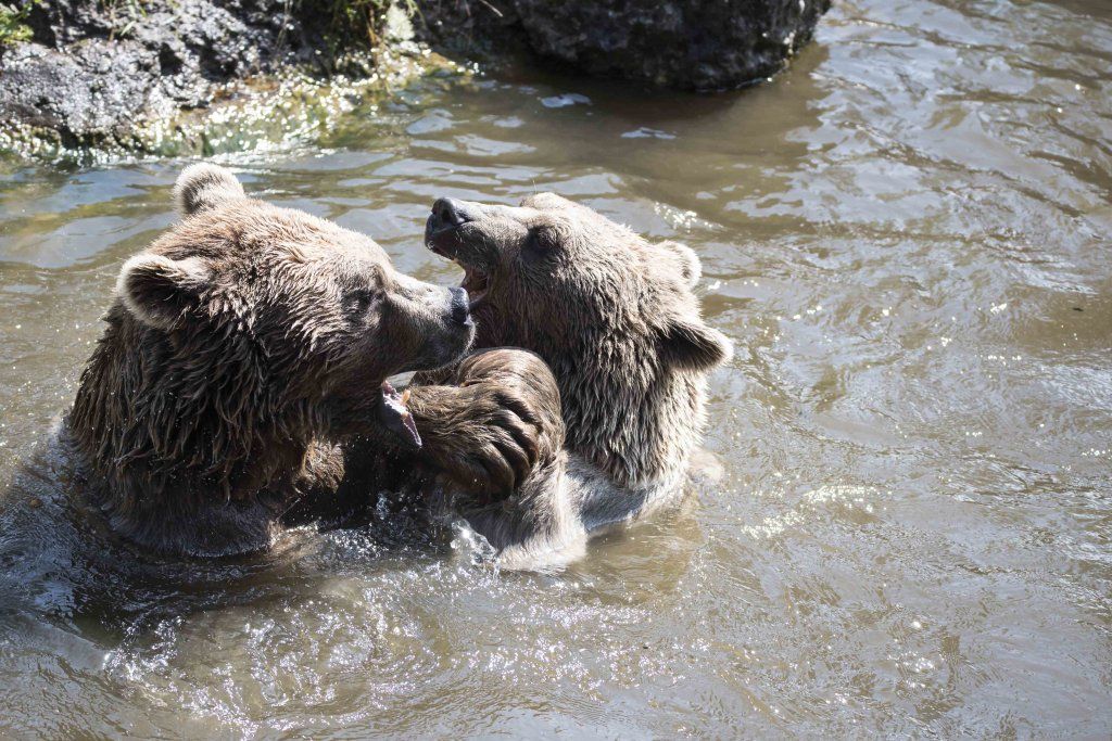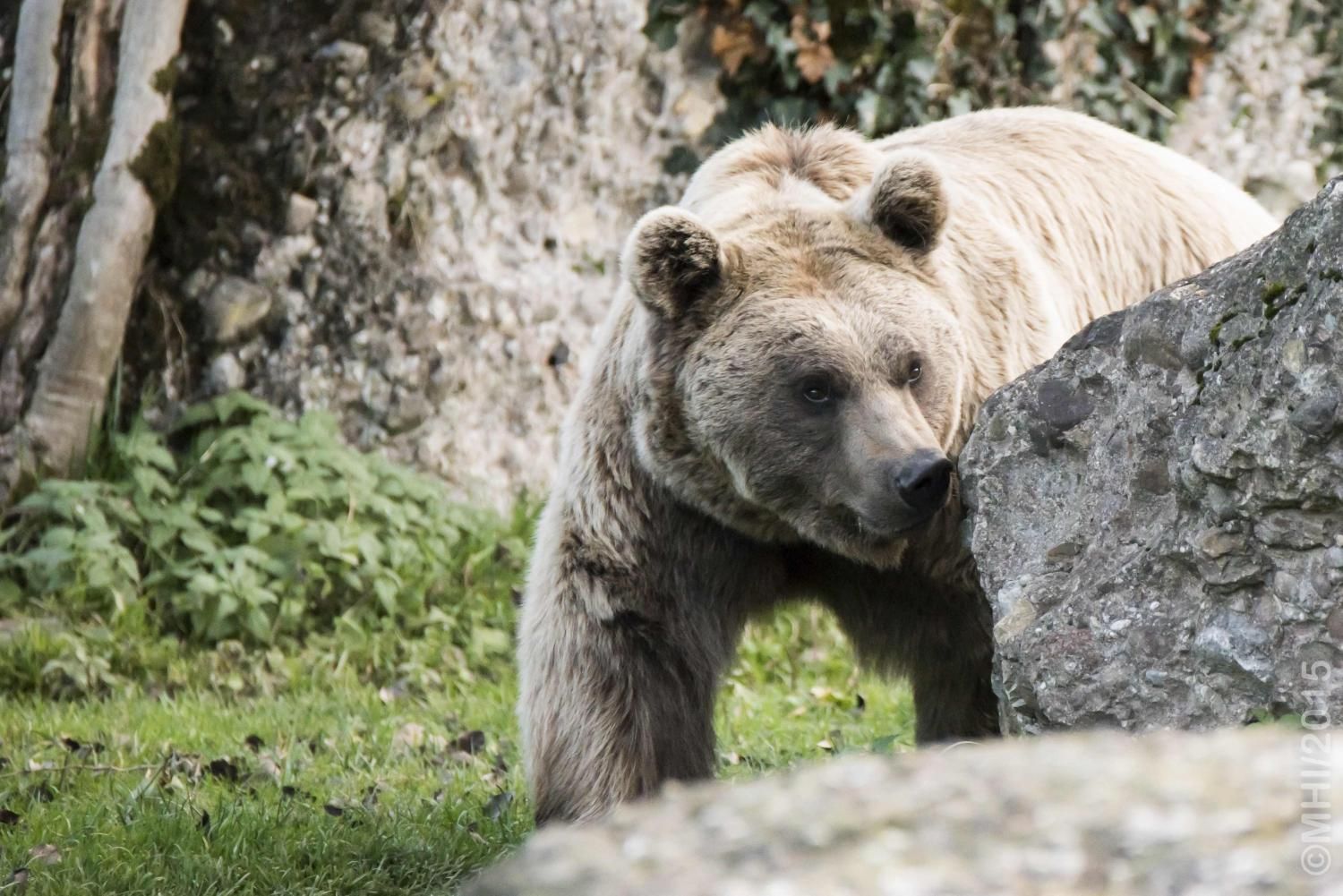 Der Braunbär gilt (nebst dem Eisbär) als das grösste lebende Landraubtier. Braunbären sind jedoch typische Allesfresser mit einem hohen pflanzlichen Anteil: Von Gräsern über Früchte, Honig bis hin zu Nüssen und Aas verschmähen sie kaum etwas. Lebende Tiere hingegen erbeutet „Meister Petz“ nicht so oft, da er eher ein ungeschickter Jäger ist. Je nach Region steht auch Fisch auf seinem Speiseplan. Der Natur- und Tierpark Goldau hält Syrische Braunbären. Es handelt sich dabei um eine Unterart der Braunbären, nahe verwandt mit der ursprünglich in der Schweiz heimischen Braunbären-Unterart „Europäischer Braunbär“. Syrische Braunbären leben ursprünglich im Nahen Osten und sind in freier Natur stark vor dem Aussterben bedroht. Sie sind in der Regel etwas kleiner und heller als der europäische Braunbär. Braunbären sind in Europa selten! Grössere Bestände von Braunbären finden wir heute nur noch in Skandinavien und in Südosteuropa. Zudem stagnieren die meisten Bestände oder nehmen gar ab. Die der Schweiz am nächsten gelegenen Bärenpopulationen befinden sich in Österreich und im nahen italienischen Trentino. Das letztere Gebiet gehört zu einem der wenigen Orte, wo die Bären dank einem Wiederansiedlungsprojekt wieder zunehmen. Dies hat direkte Auswirkung auf die Schweiz: der damals letzte Braunbär wurde 1904 in Graubünden geschossen. Über 100 Jahre blieb die Schweiz bärenfrei, bis im Sommer 2005 ein wanderfreudiges Jungtier vom Trentino über die Grenze ins Engadin kam und kurzfristig für Aufsehen sorgte und wieder abwanderte. 2007 fanden wieder zwei junge Bärenmännchen den Weg von Italien in die Schweiz und es ist nur eine Frage der Zeit, bis die nächsten Bären zu Besuch kommen. Ein zukünftiges Zusammenleben von Menschen und Bären in den Gebieten der Schweiz ist möglich – sofern wir Menschen Toleranz für dieses eindrückliche Wildtier aufbringen und über ein korrektes Verhalten gegenüber den Bären aufgeklärt sind. Eine Möglichkeit sich zu informieren finden Sie in der Ausstellung rund um die Gemeinschaftsanlage für Bär und Wolf im Natur- und Tierpark Goldau.