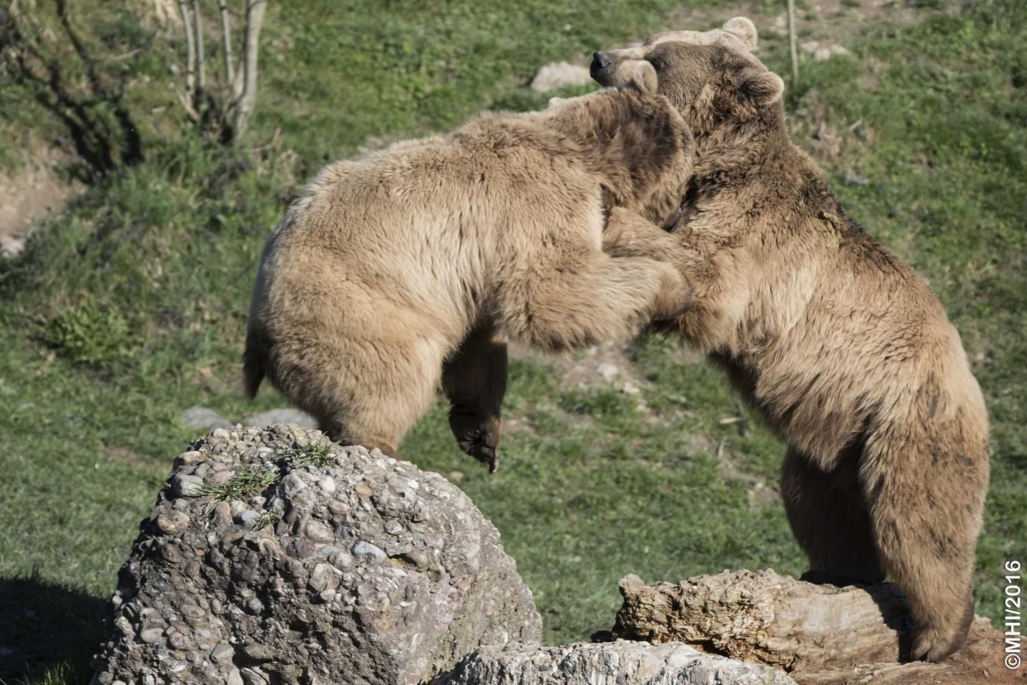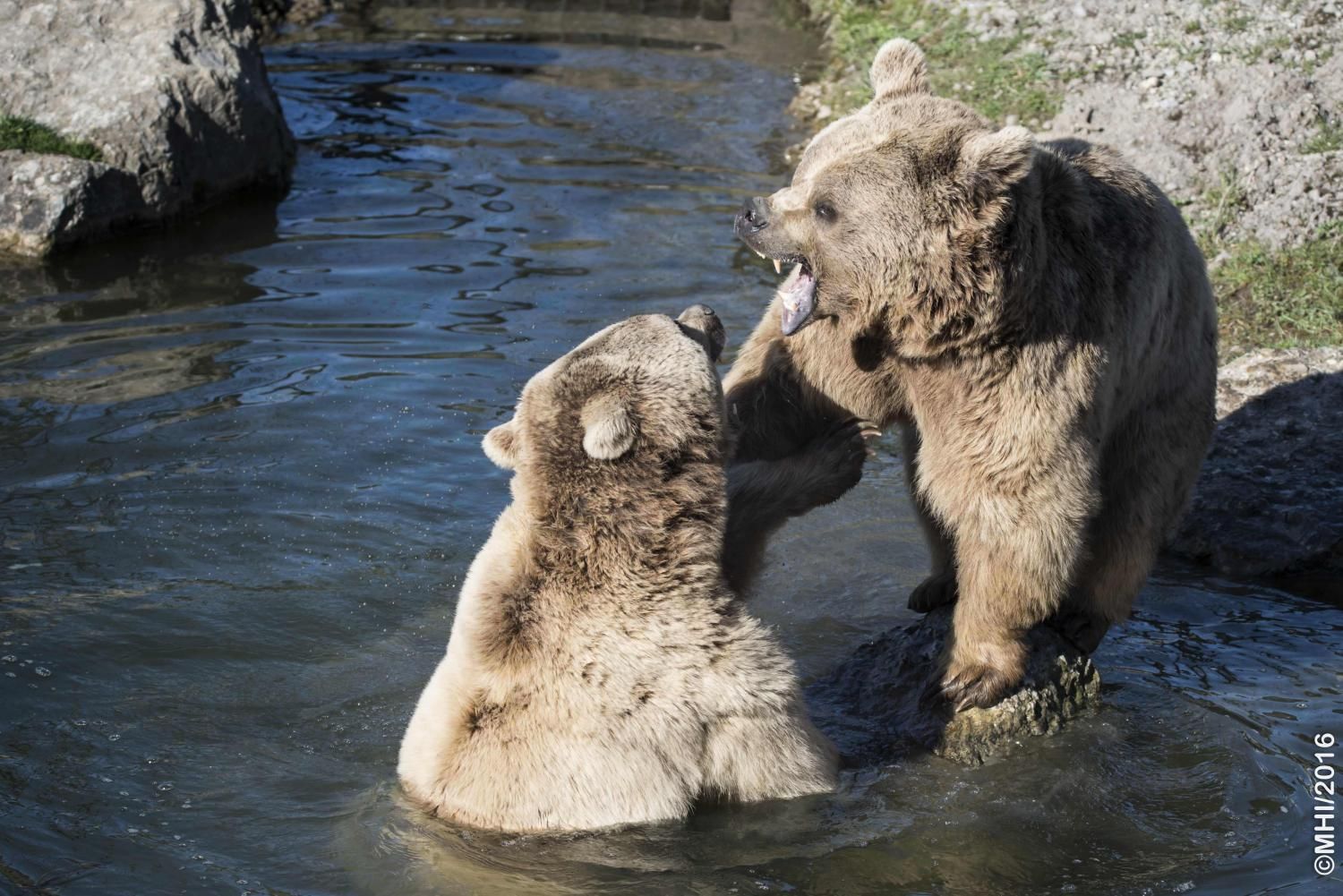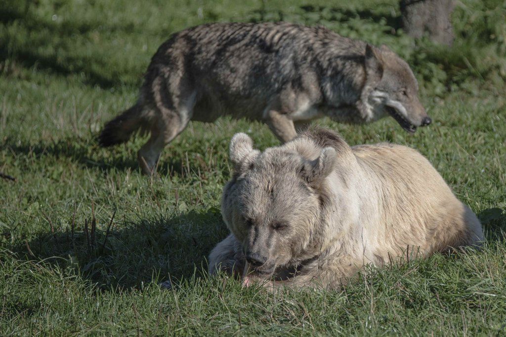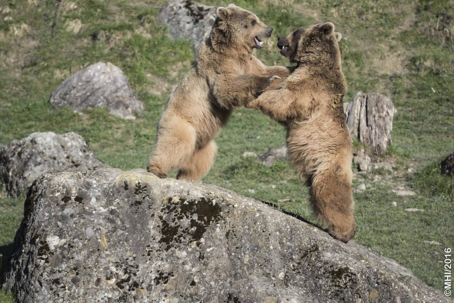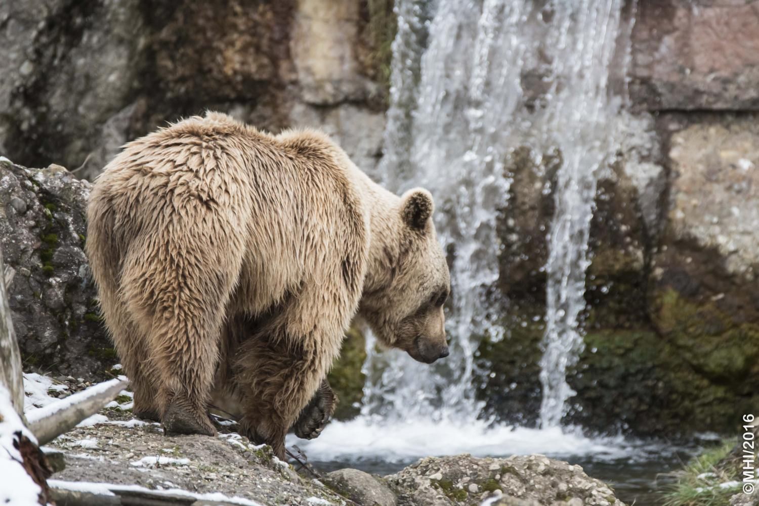 Der Braunbär gilt (nebst dem Eisbär) als das grösste lebende Landraubtier. Braunbären sind jedoch typische Allesfresser mit einem hohen pflanzlichen Anteil: Von Gräsern über Früchte, Honig bis hin zu Nüssen und Aas verschmähen sie kaum etwas. Lebende Tiere hingegen erbeutet „Meister Petz“ nicht so oft, da er eher ein ungeschickter Jäger ist. Je nach Region steht auch Fisch auf seinem Speiseplan. Der Natur- und Tierpark Goldau hält Syrische Braunbären. Es handelt sich dabei um eine Unterart der Braunbären, nahe verwandt mit der ursprünglich in der Schweiz heimischen Braunbären-Unterart „Europäischer Braunbär“. Syrische Braunbären leben ursprünglich im Nahen Osten und sind in freier Natur stark vor dem Aussterben bedroht. Sie sind in der Regel etwas kleiner und heller als der europäische Braunbär. Braunbären sind in Europa selten! Grössere Bestände von Braunbären finden wir heute nur noch in Skandinavien und in Südosteuropa. Zudem stagnieren die meisten Bestände oder nehmen gar ab. Die der Schweiz am nächsten gelegenen Bärenpopulationen befinden sich in Österreich und im nahen italienischen Trentino. Das letztere Gebiet gehört zu einem der wenigen Orte, wo die Bären dank einem Wiederansiedlungsprojekt wieder zunehmen. Dies hat direkte Auswirkung auf die Schweiz: der damals letzte Braunbär wurde 1904 in Graubünden geschossen. Über 100 Jahre blieb die Schweiz bärenfrei, bis im Sommer 2005 ein wanderfreudiges Jungtier vom Trentino über die Grenze ins Engadin kam und kurzfristig für Aufsehen sorgte und wieder abwanderte. 2007 fanden wieder zwei junge Bärenmännchen den Weg von Italien in die Schweiz und es ist nur eine Frage der Zeit, bis die nächsten Bären zu Besuch kommen. Ein zukünftiges Zusammenleben von Menschen und Bären in den Gebieten der Schweiz ist möglich – sofern wir Menschen Toleranz für dieses eindrückliche Wildtier aufbringen und über ein korrektes Verhalten gegenüber den Bären aufgeklärt sind. Eine Möglichkeit sich zu informieren finden Sie in der Ausstellung rund um die Gemeinschaftsanlage für Bär und Wolf im Natur- und Tierpark Goldau.