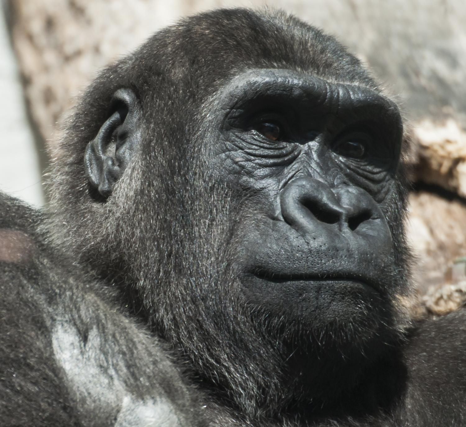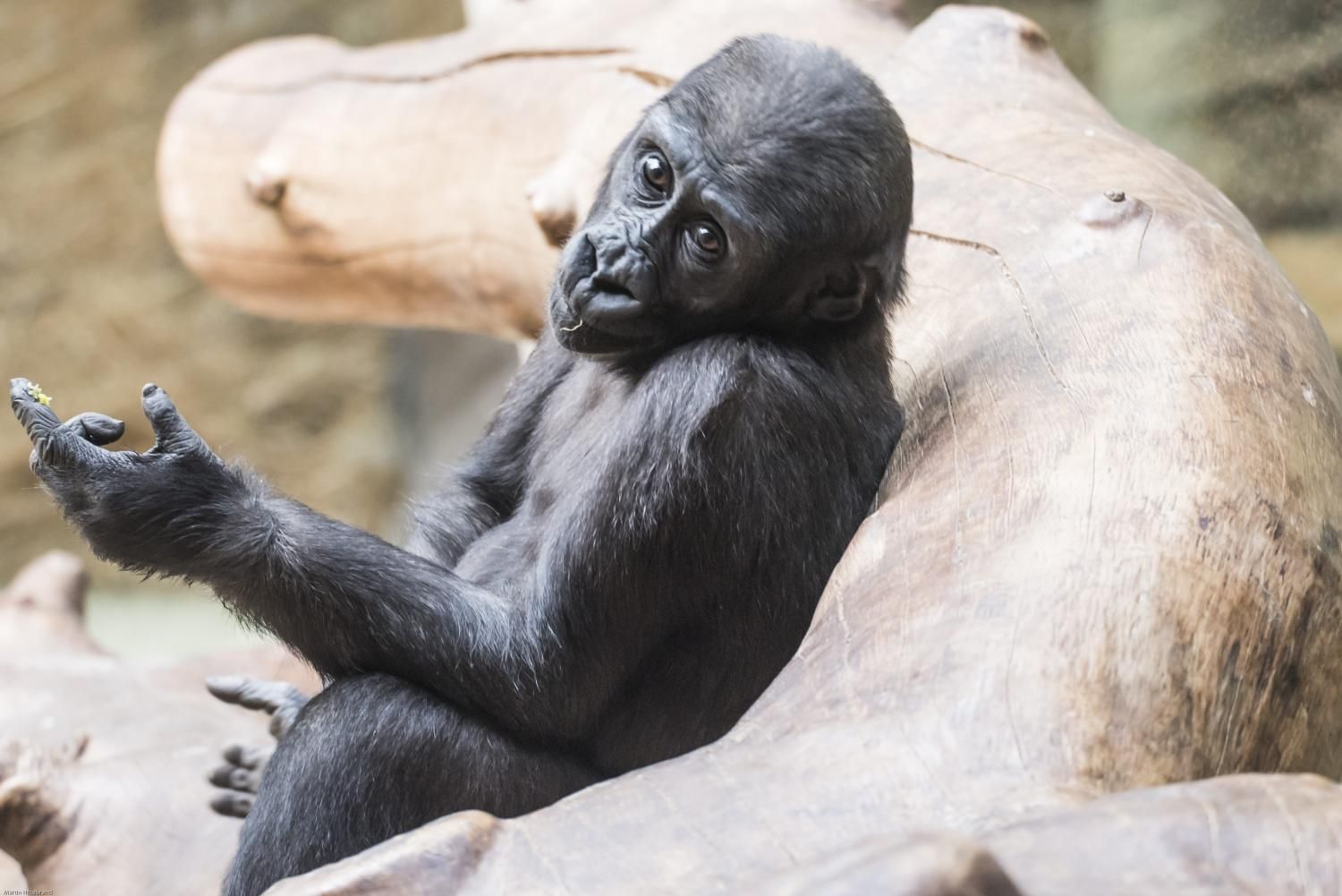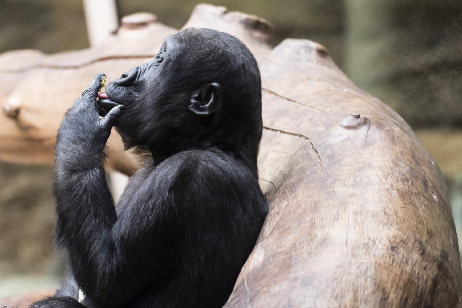 Gorillas sind ausgesprochene Bodenbewohner, die sich auf allen Vieren fortbewegen. Sie leben in Gruppen mit vier bis fünf Weibchen und Jungtieren, die von einem dominanten Silberrückenmann angeführt werden. Er verteidigt sein Revier durch Imponierverhalten, ist aber sonst genauso friedfertig wie alle anderen Gorillas und sogar ausgesprochen liebevoll und geduldig im Umgang mit den verspielten Jungen. Zwischen den einzelnen Gruppenmitgliedern besteht keine enge Bindung. Die bei Schimpansen häufige gegenseitige Haarpflege ist bei Gorillas selten.