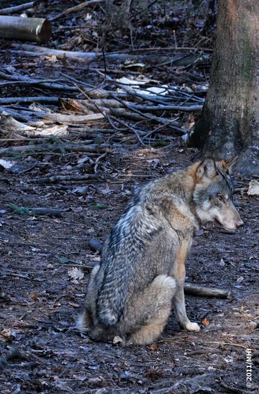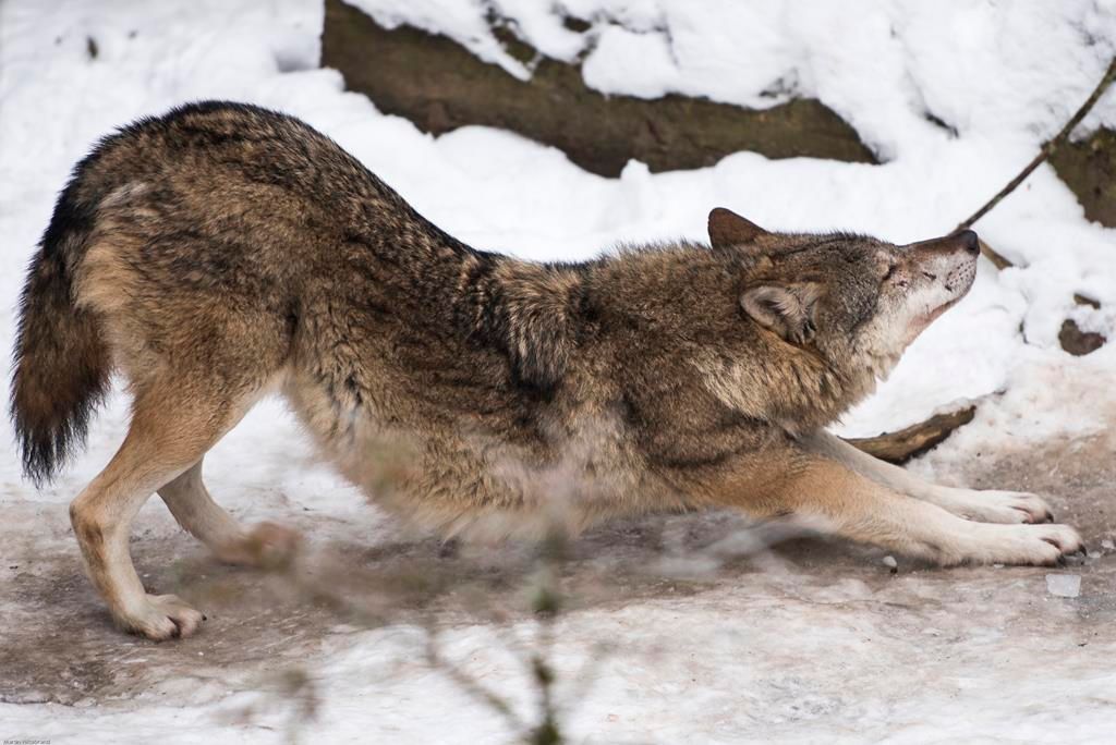 Ein Wolfsrudel besteht in der Regel aus einem Elternpaar und den dies- und letztjärigen Nachkommen, es handelt sich also um eine Familie. In der Familie übernehmen die Elterntiere natürlicherweise die Rolle von Leittieren (in Gefangenschaft auchAlphatiere genannt), indem sie ihre Jungtiere ins Leben als Wölfe einführen. |