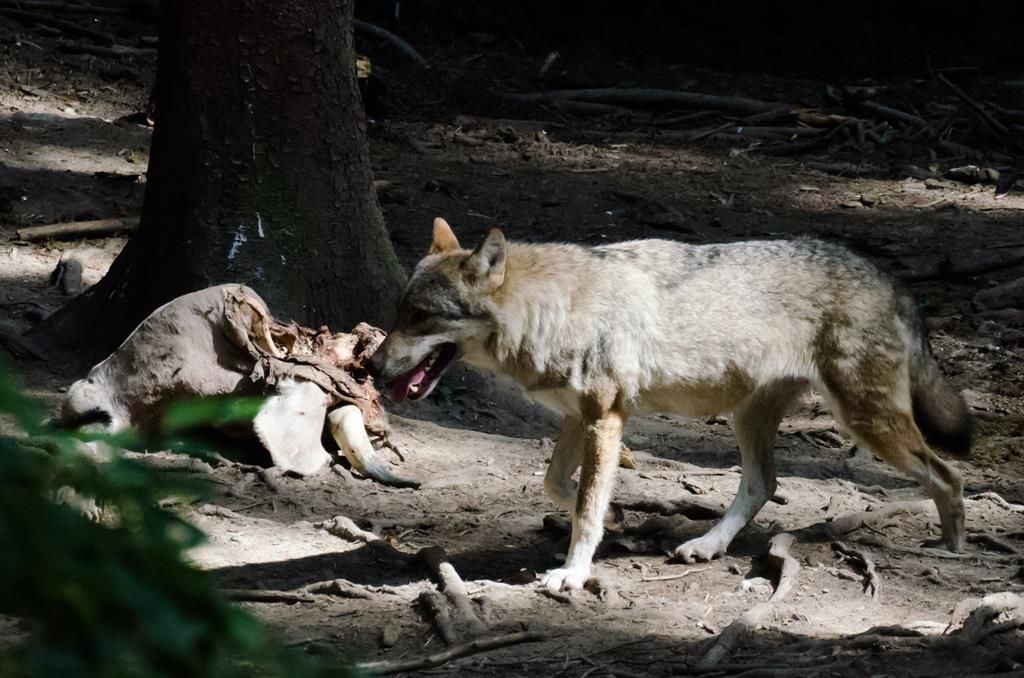 Wölfe sind Fleischfresser, die gelegentlich auch Früchte oder Beeren zu sich nehmen. Vor allem im Rudel sind sie geschickte Jäger, die nach anstrengender Hetzjagt auch grosse Tiere wie Elche erbeuten können. |